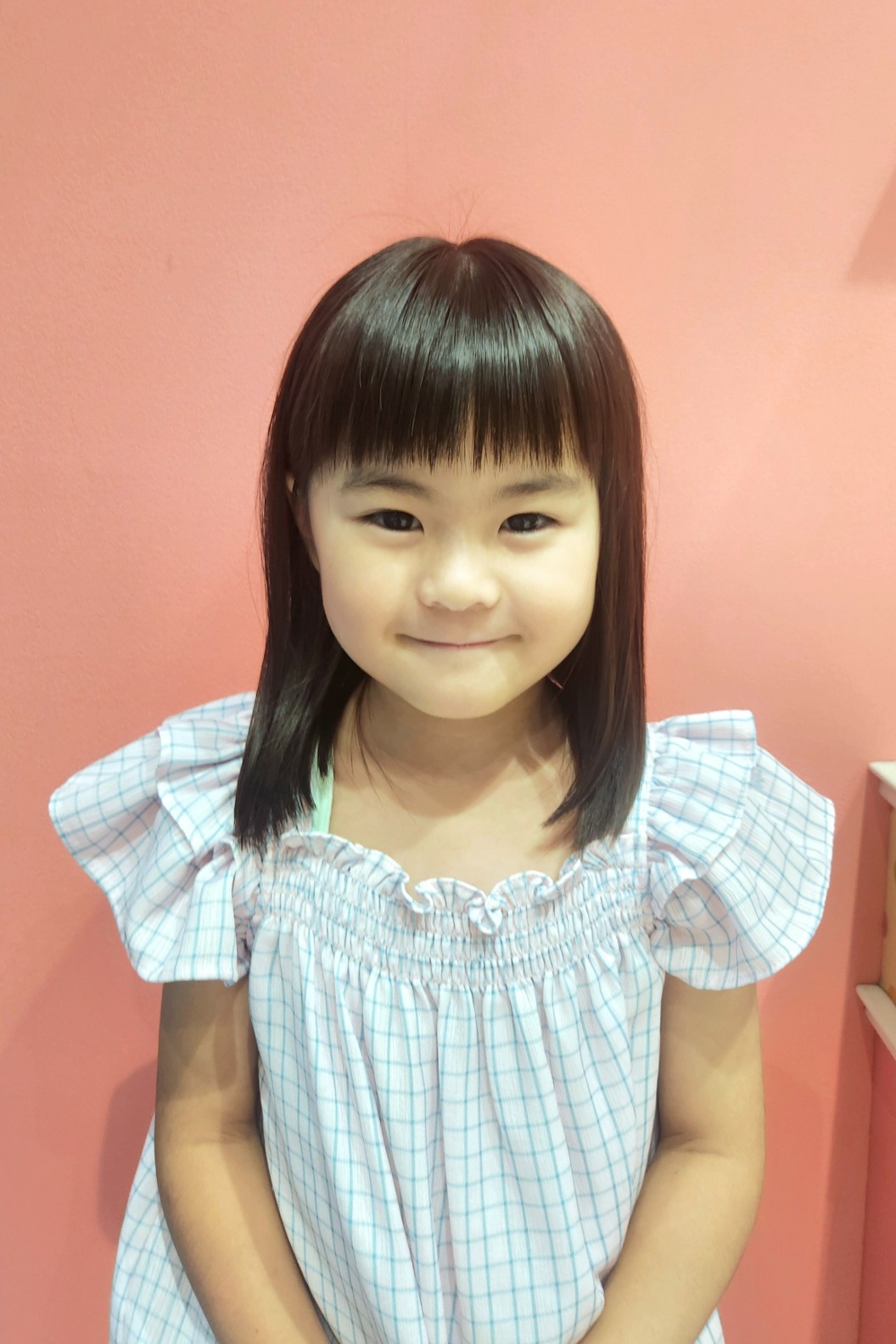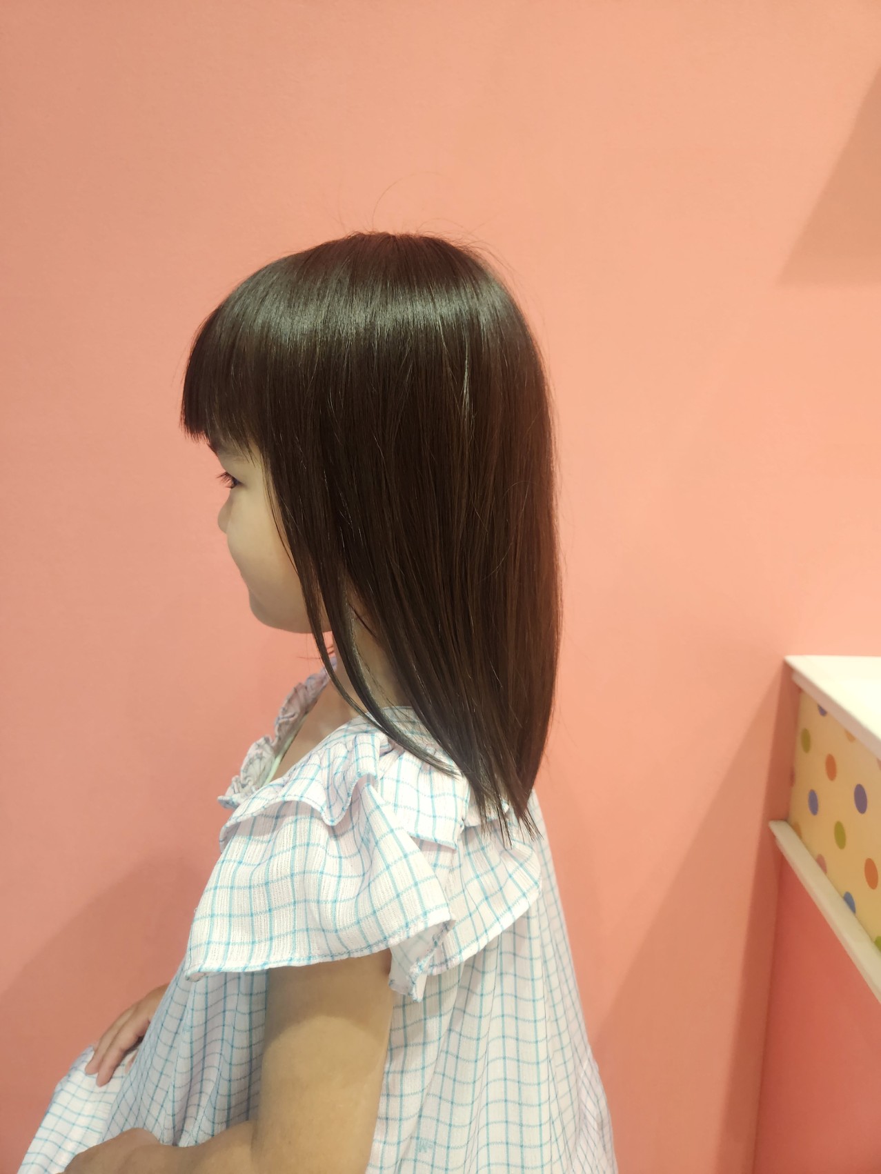 ちあかちゃん 5歳 つや感のあるミディアムスタイルです前髪は軽さを出して、キュートなお顔がさらに可愛くなりました ちあかちゃん、素敵にモデルさんありがとうまた遊びにきてたくさんお話聞かせてね お母様、お写真のご協力ありがとうございましたまたのご利用お待ちしております