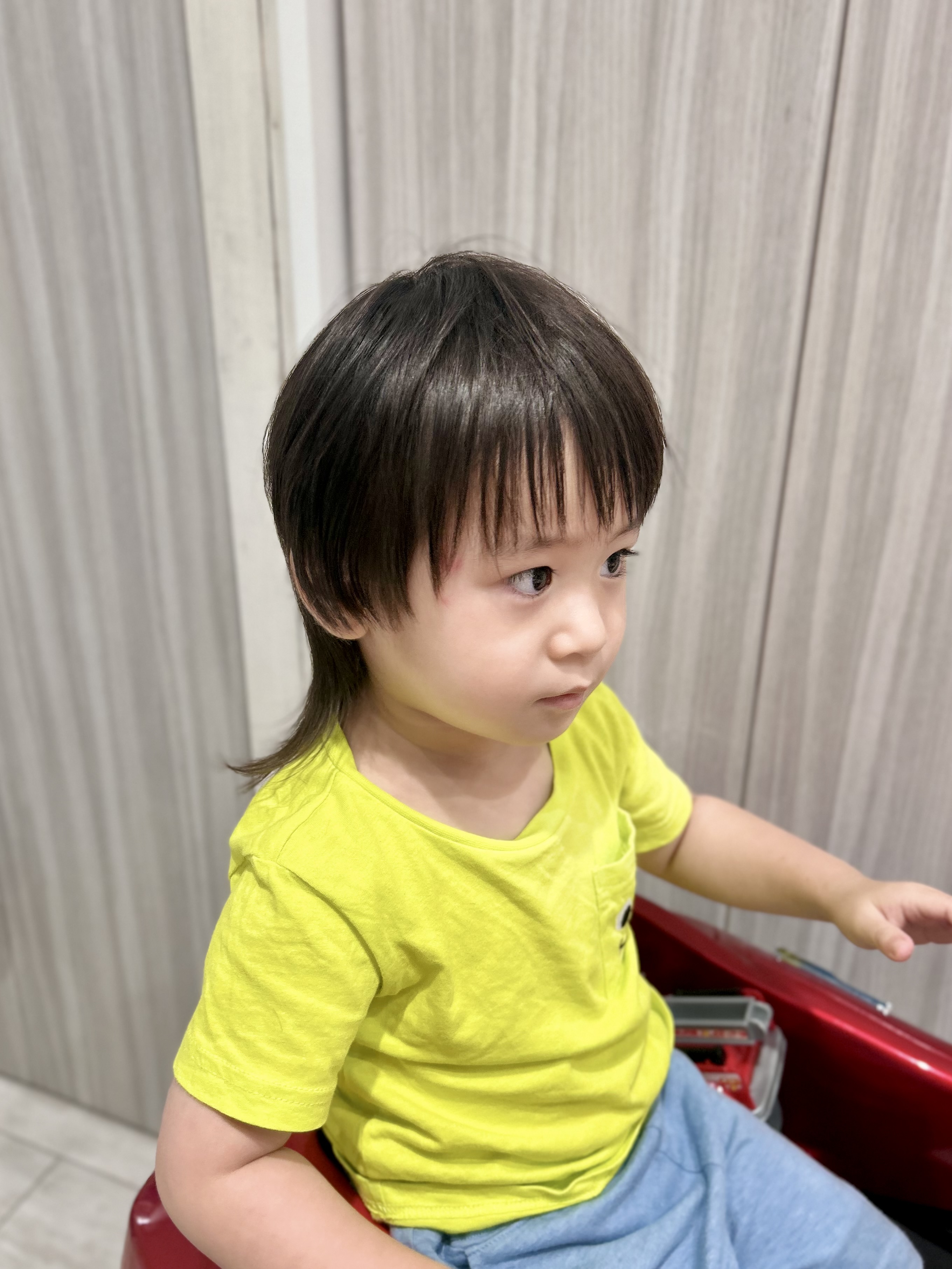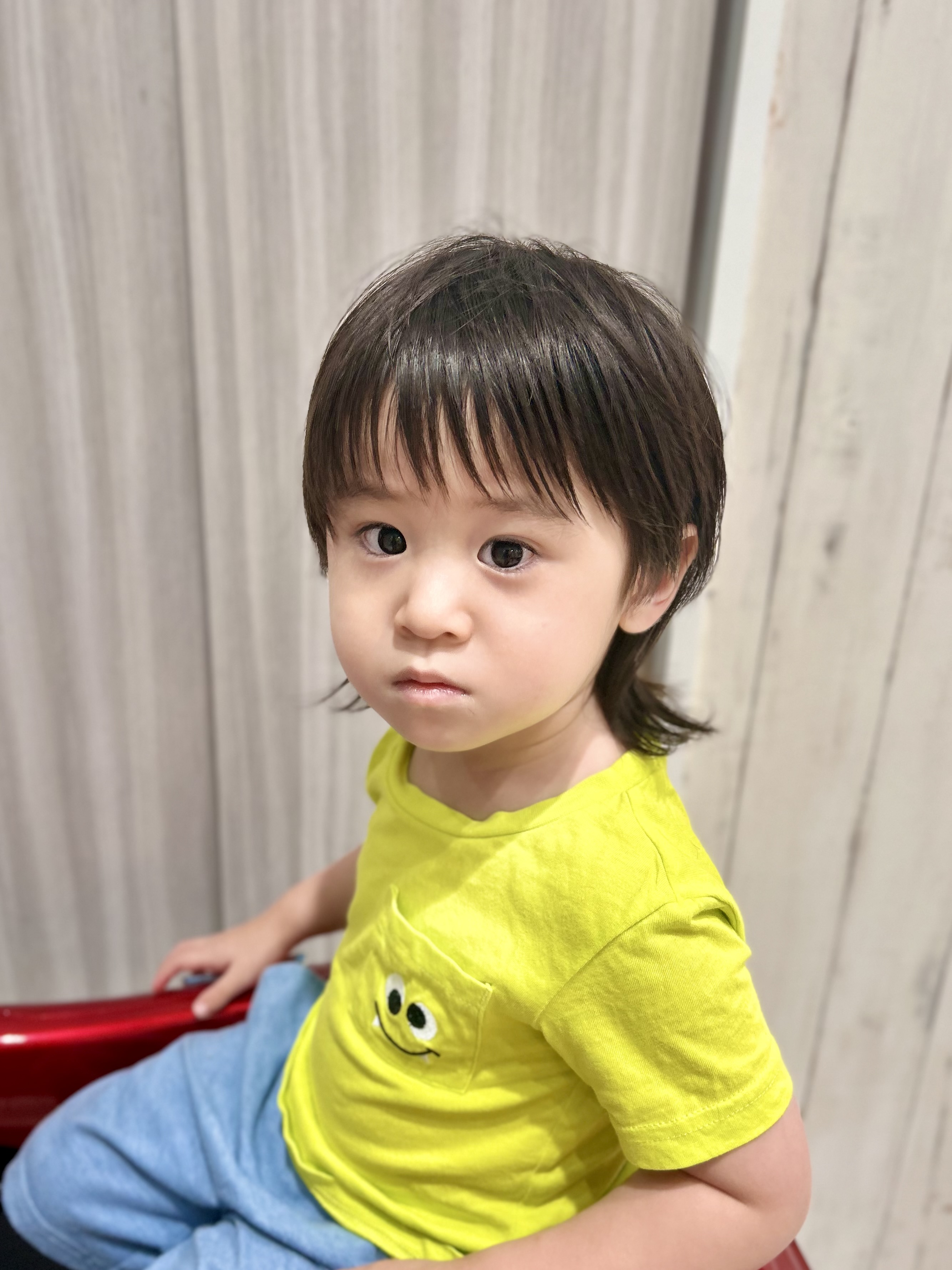 あらんくん 2歳 ウルフカット❣️❣️これからのシーズンにもピッタリな、個性的でオシャレなスタイル😎✨とっても似合ってカッコいい〜!😉 撮影のご協力ありがとうございました🤗