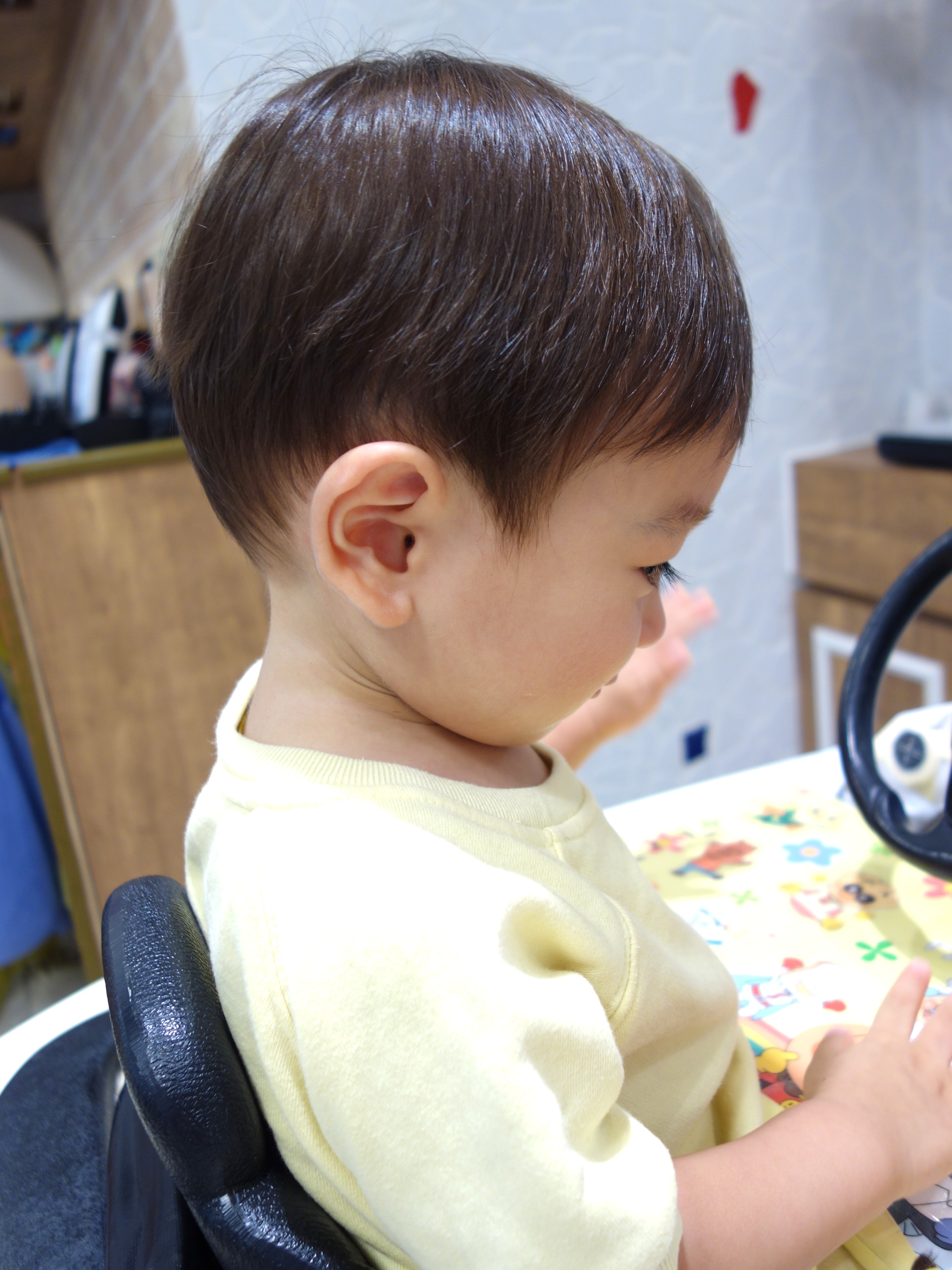 ☆なぎとくん 1歳☆ニコニコなぎとくん初めてのカットとっても上手にできました耳周りと襟足は刈り上げないくらいでスッキリトップはふんわり仕上げで可愛くそんななぎとくんにみんなメロメロでしたご協力いただきましたお母様ありがとうございました。またのご利用をお待ちしております。