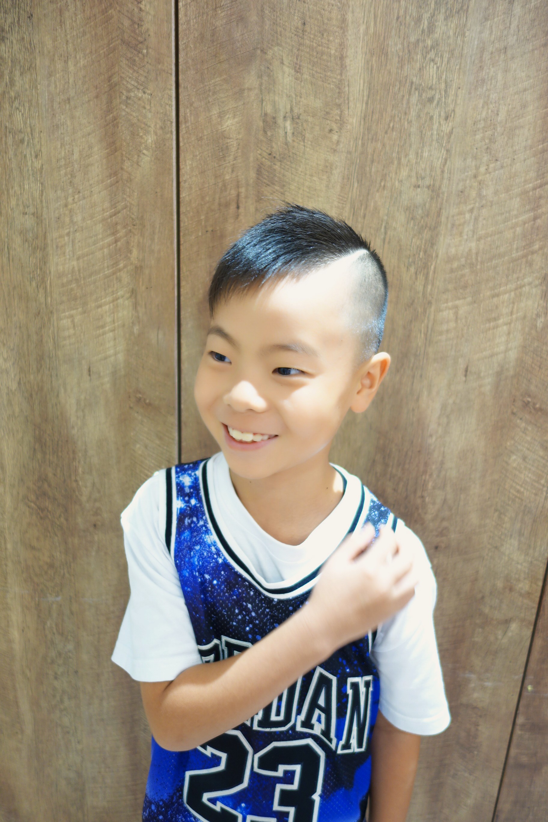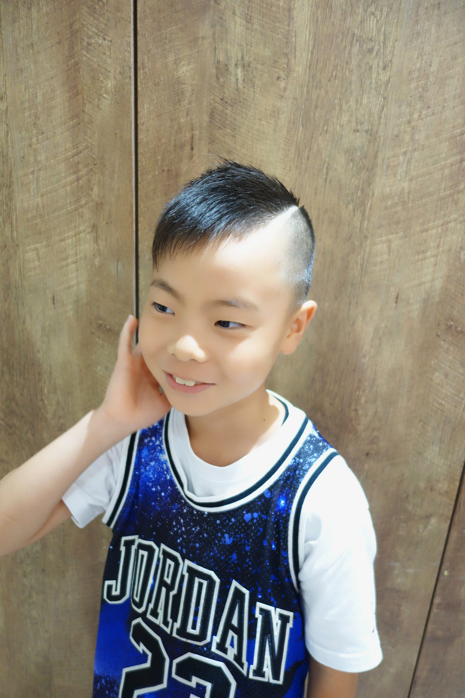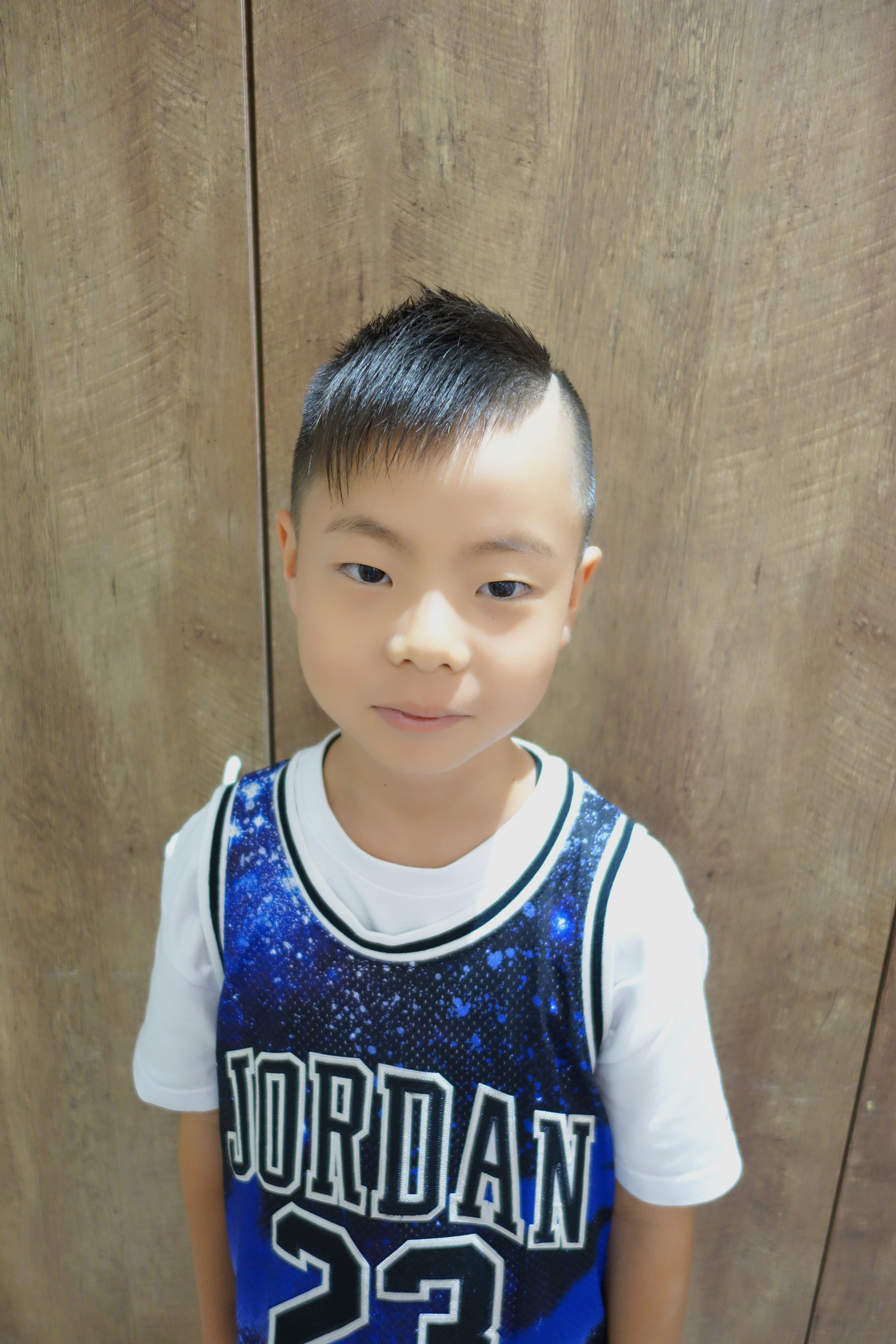 🌟いちとくん 9歳🌟 右→3㎜ローフェード、左→3㎜刈に太めのラインを入れて⚡つむじが2つあり立ちやすいので、おさまるように短めにカット✂️最近はこのスタイルがお気に入りで、最終チェックもしてくれます✨キメ顔もニタ~とした顔もどっちも素敵です🥰いつもありがとう😊チョキ友にご協力してくださりありがとうございます❣️