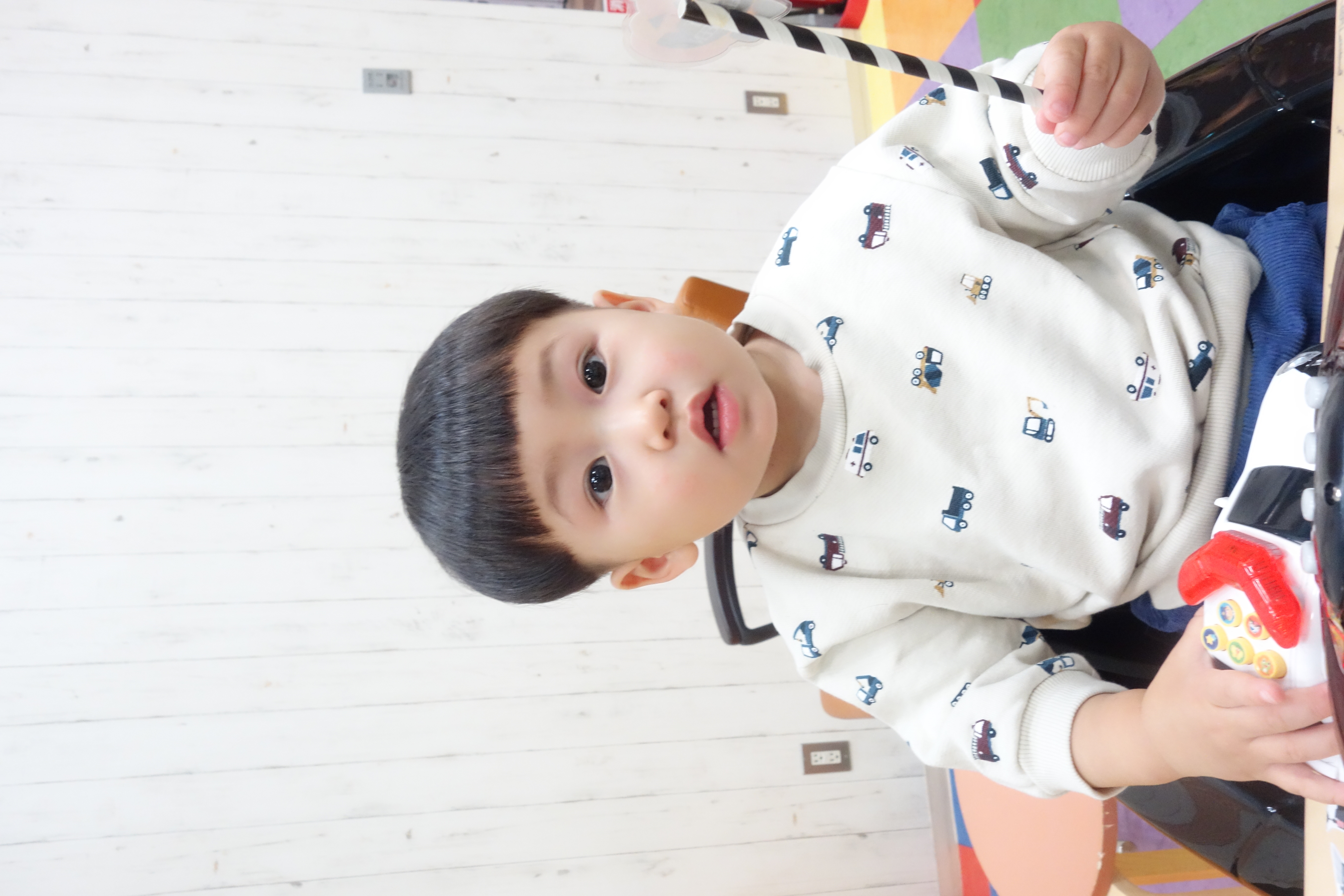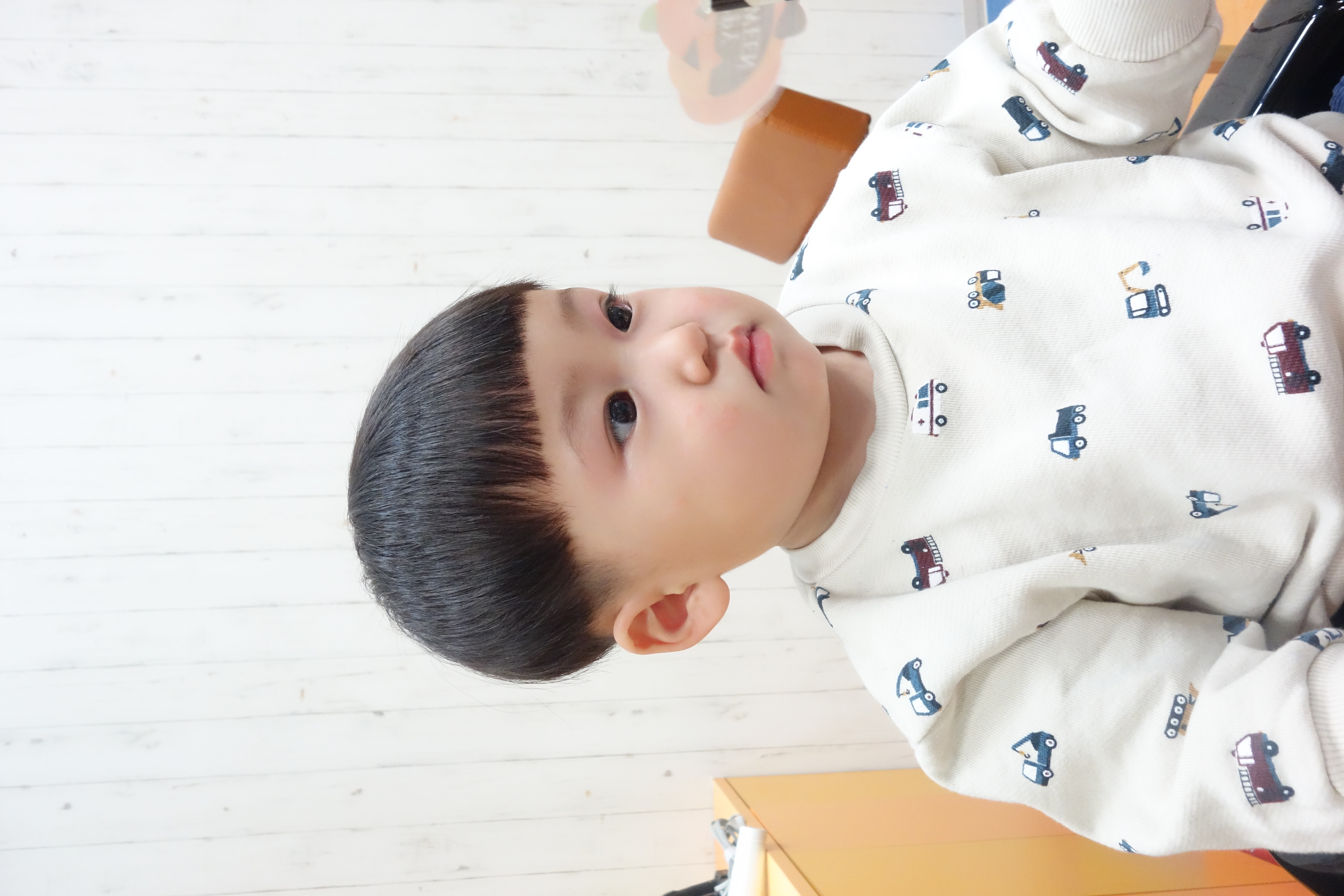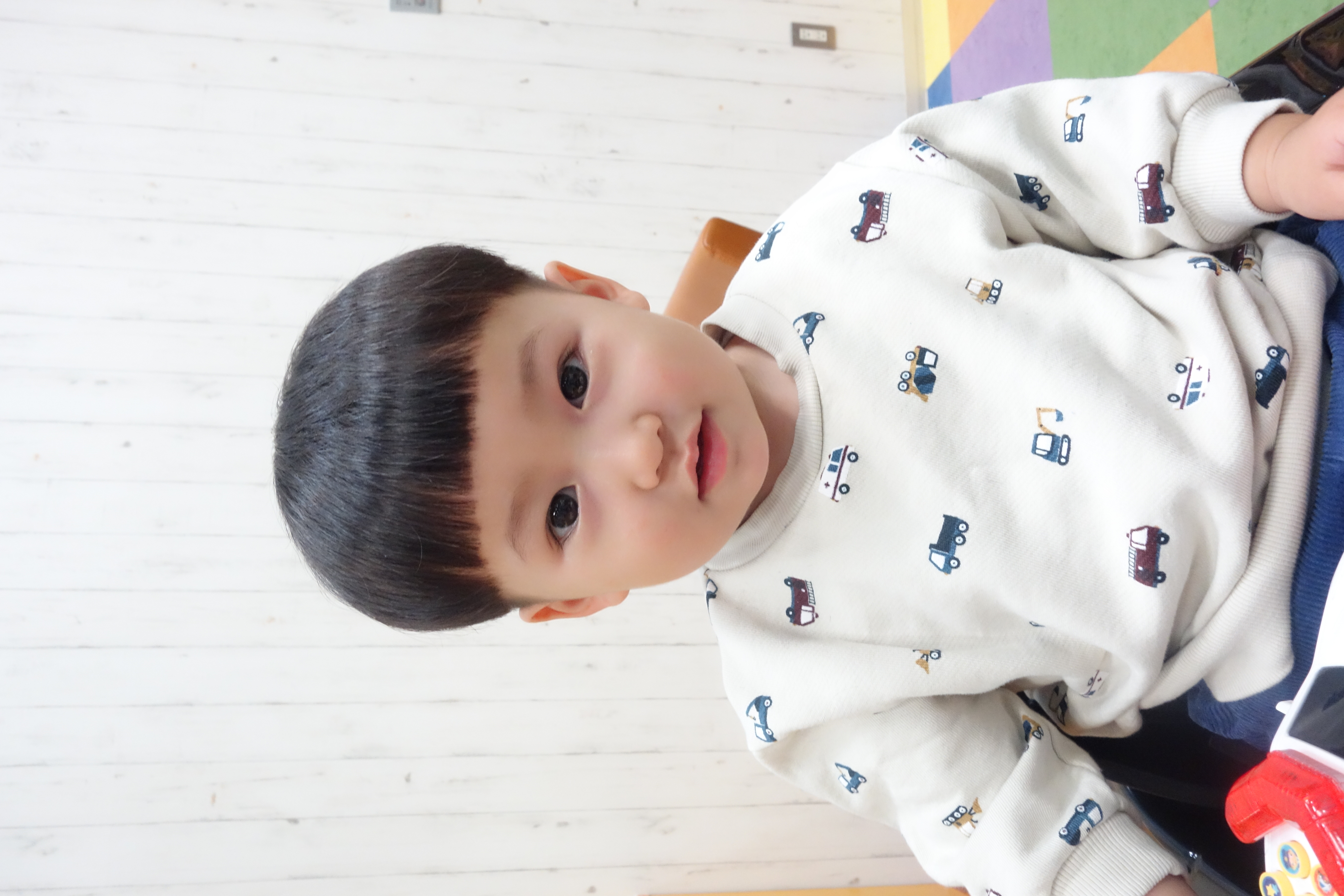 1歳 かなと君 2回目のご来店1歳とは思えない余裕車に夢中でカットされてることに気が付いてないぐらい(笑)音の出る消防車、パトカーに夢中で音が止まると押し続ける初めてのバリカンもへっちゃらご両親が一度はやってみたかったマッシュルームにしました一周6ミリツーブロ お写真のご協力ありがとうございます
