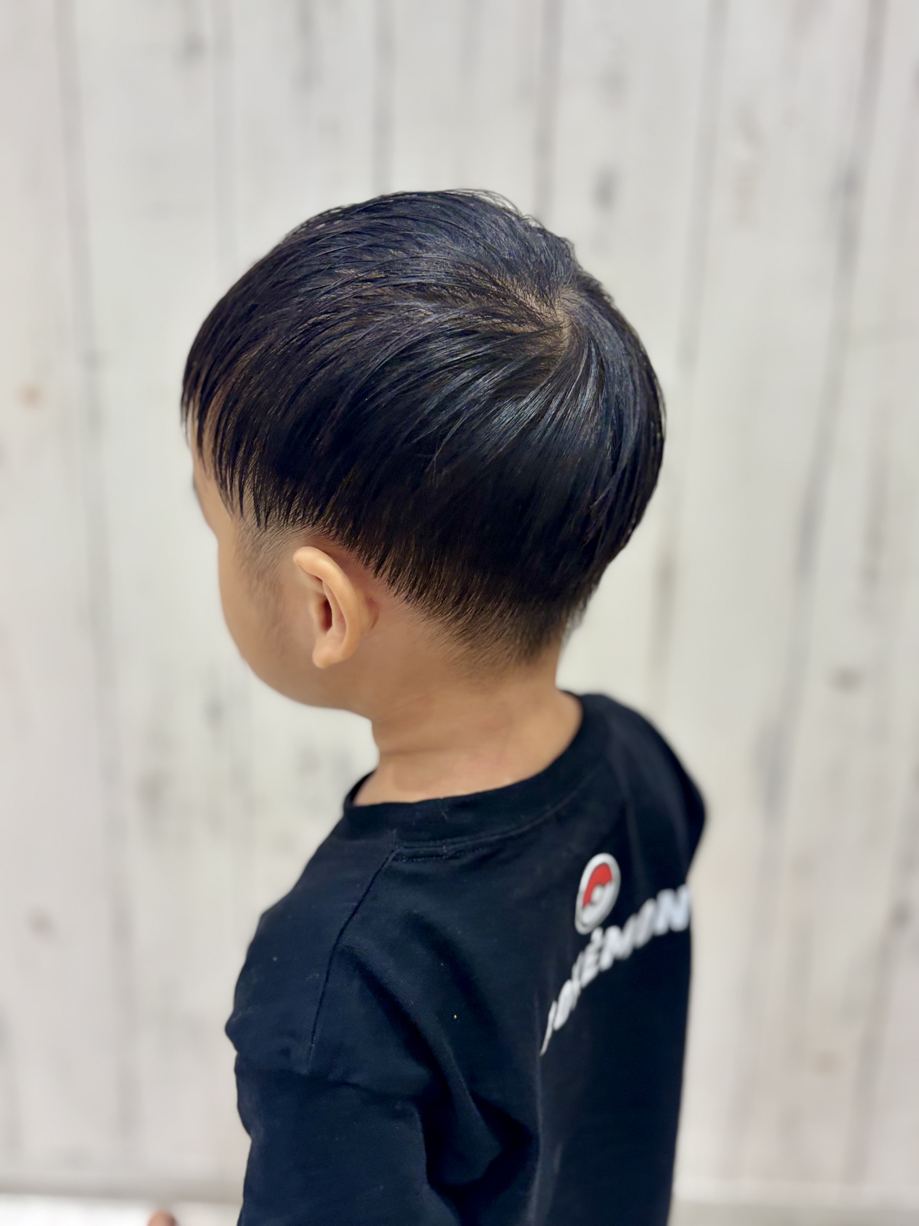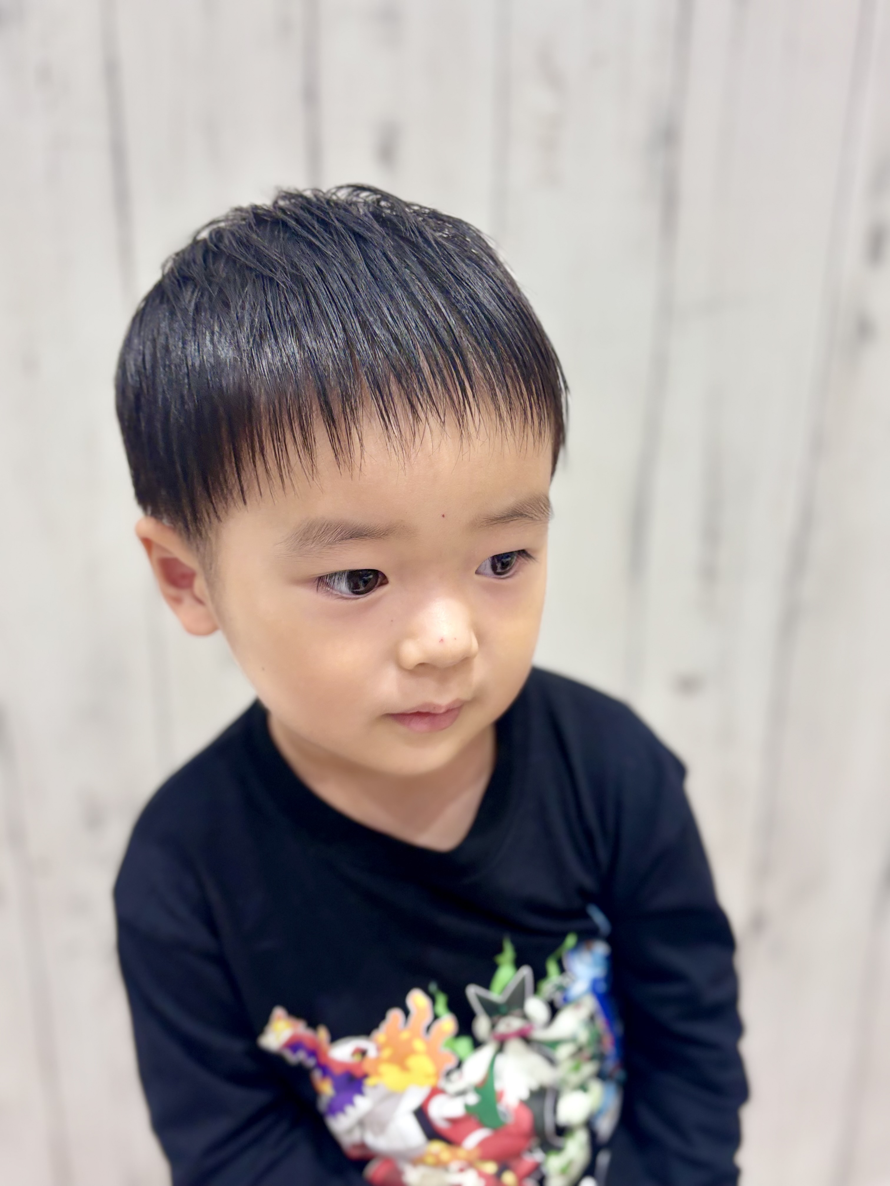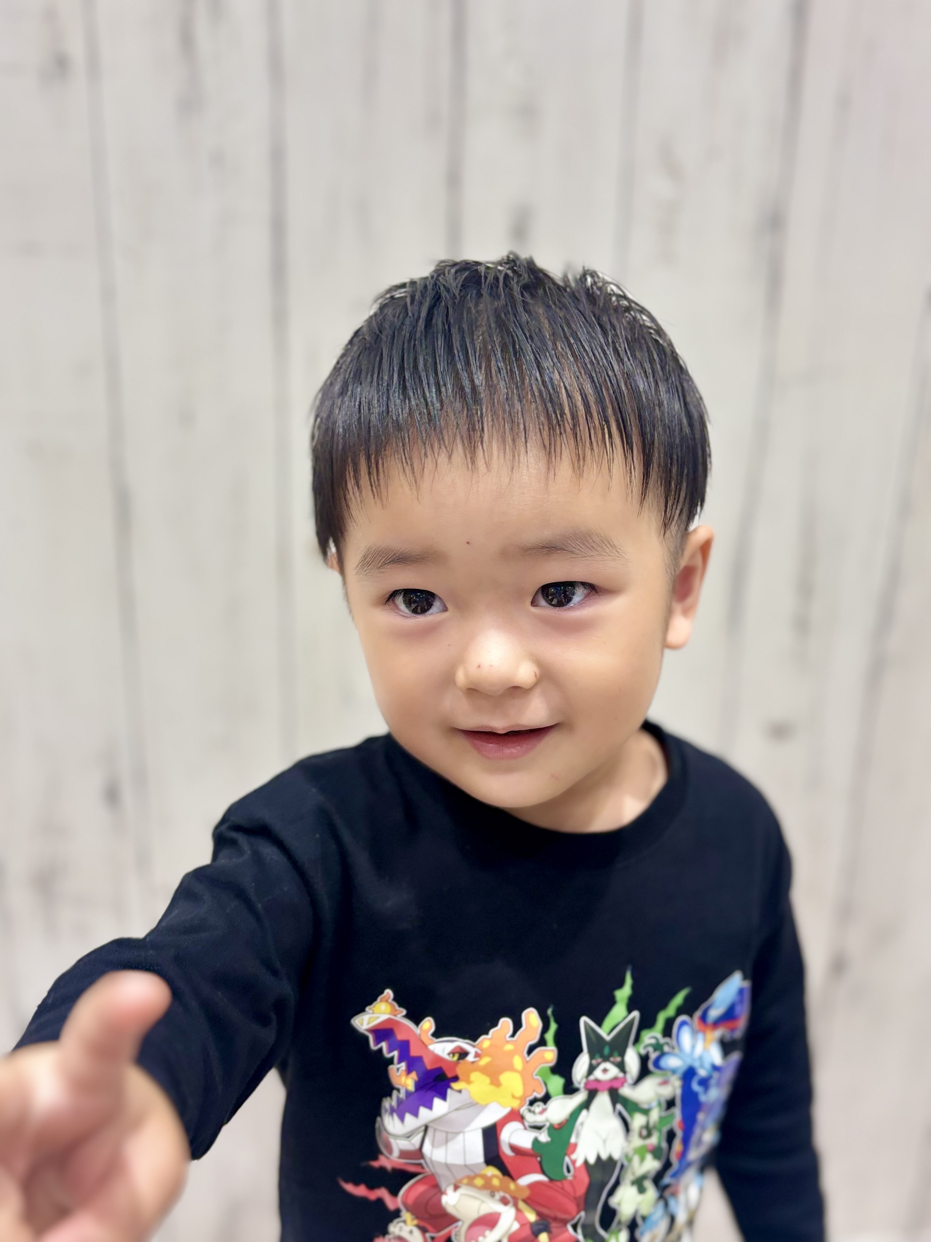 はるとくん 3歳 サイド4mmツーブロックバック12〜6mm浅めのバリカンツーブロックは強調しないように、前髪は緩くラウンド気味に自然でかわいらしさを残したショートです。苦手なバリカンも頑張ってくれてお写真まで撮らせてくれてありがとうございました😊スタッフ一同またのご来店をお待ちしております