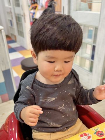 こはるくん1歳☺️初めてのチョッキンズでしたが、とっても上手にカットできました👍まだ1歳さんなのに、カットはもう何回もしていて慣れっこさんでした!緊張していたのかなー?と思いますがいろんなキャラクターやおもちゃに指差して「あった!」をしてくれていてとてもかわいかったですとってもかわいいマッシュスタイルになりました✨ぱっつんすぎないくらいで全体を調整してあります!ブログのご協力ありがとうございました😊