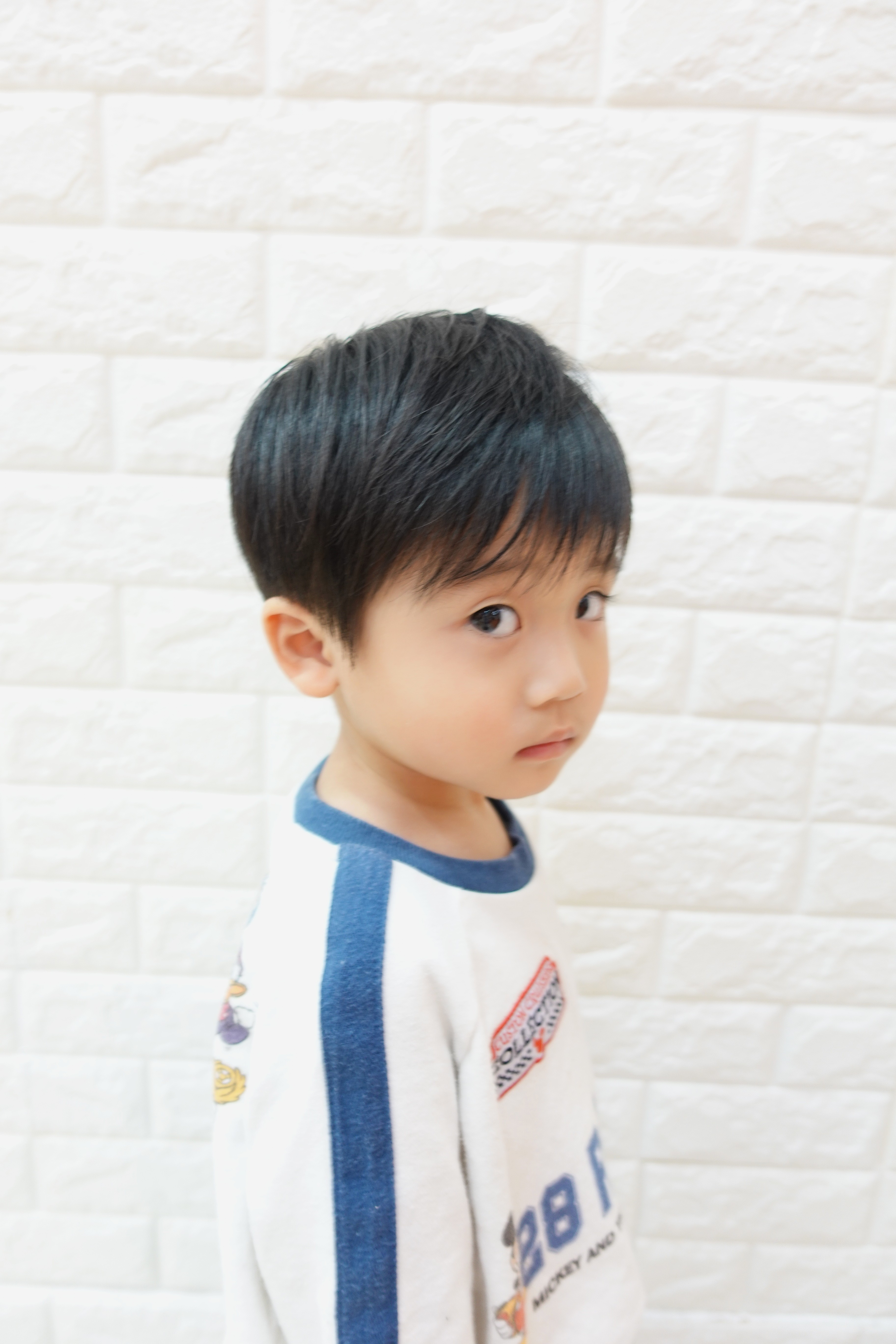 はやとくん 2歳 すっきりお耳を出した爽やかスタイル前髪はナチュラルに、全体に軽さも出して短くしすぎずにスッキリさせたい方にお勧めですカッコいいねお写真のご協力ありがとうございます