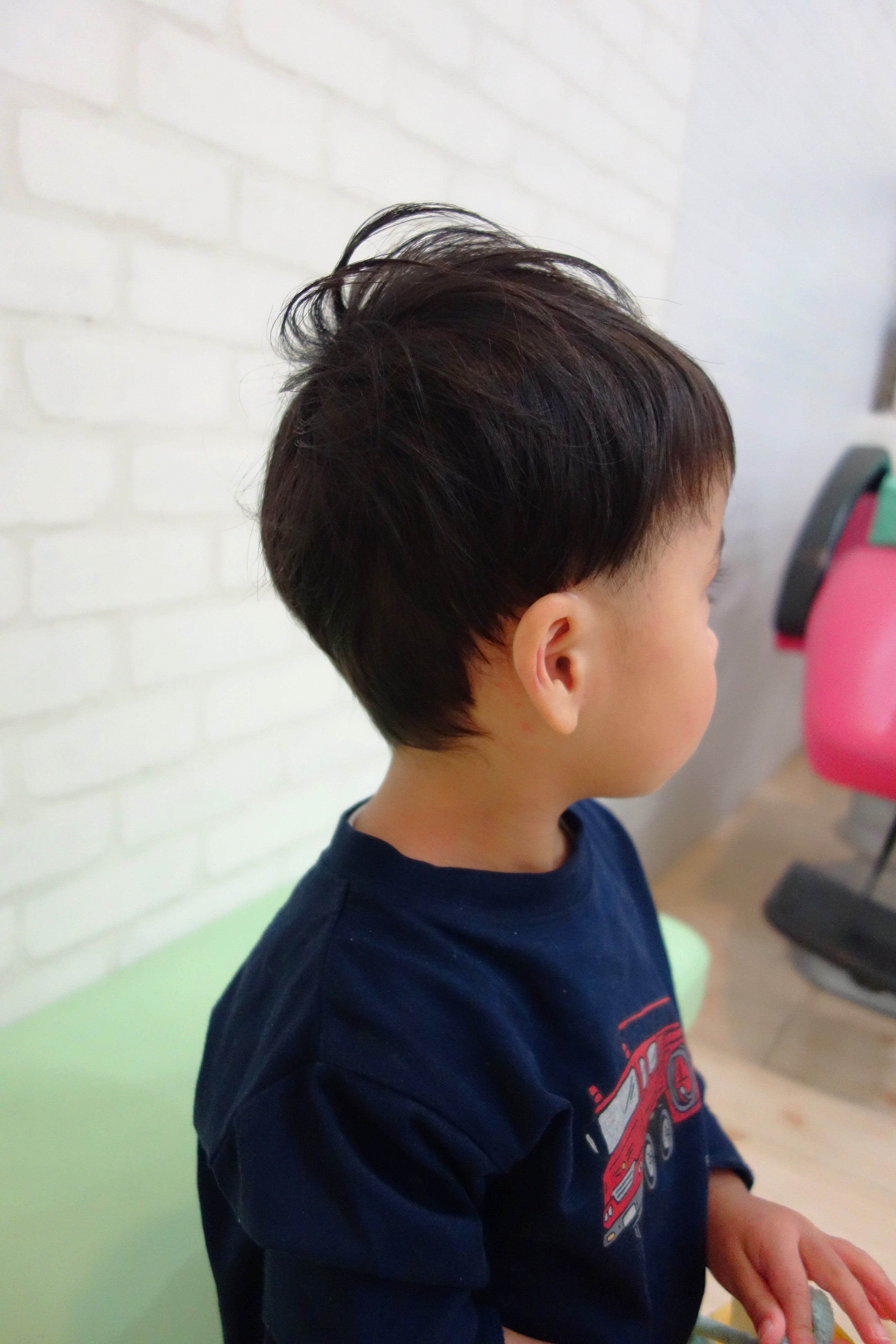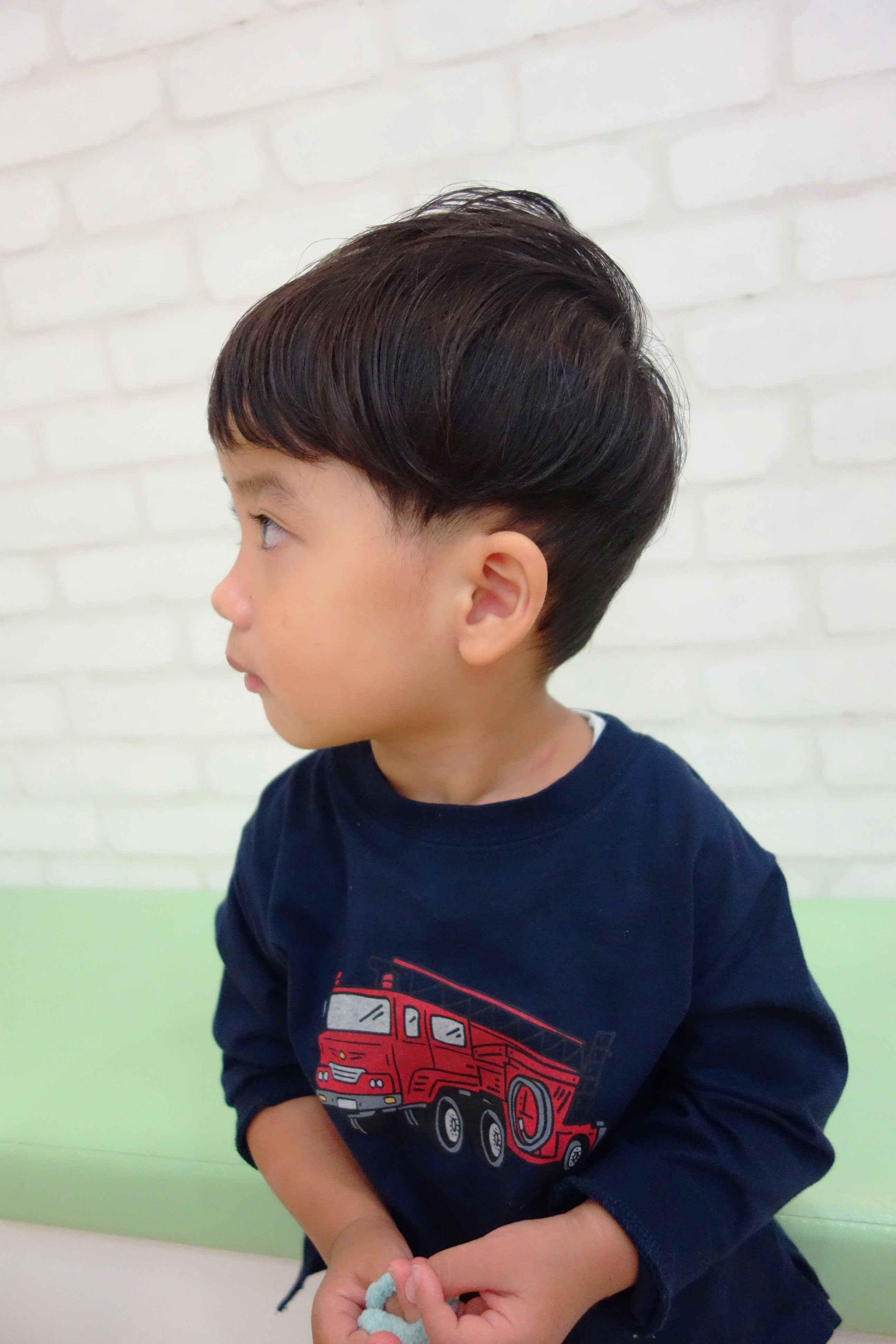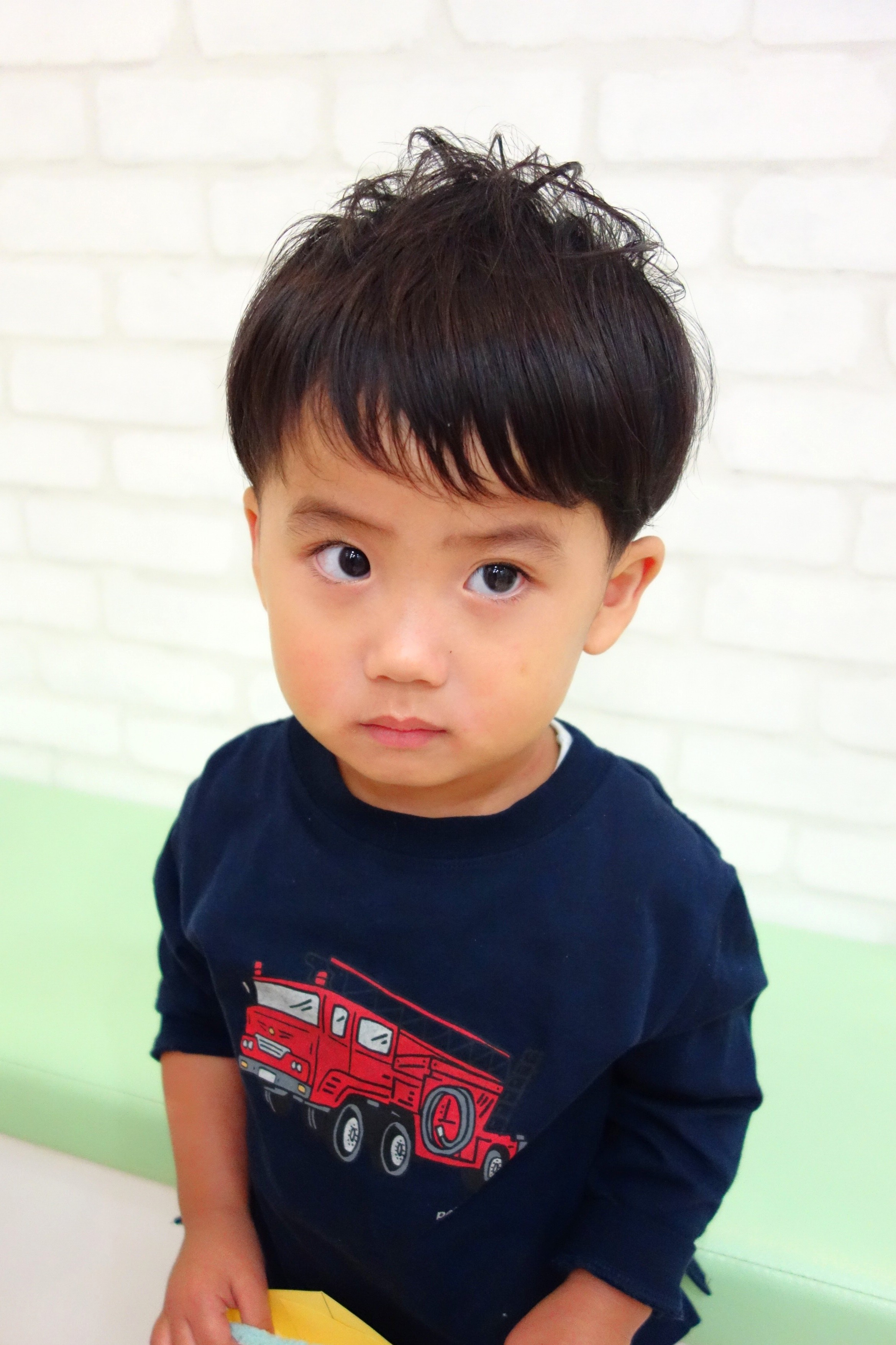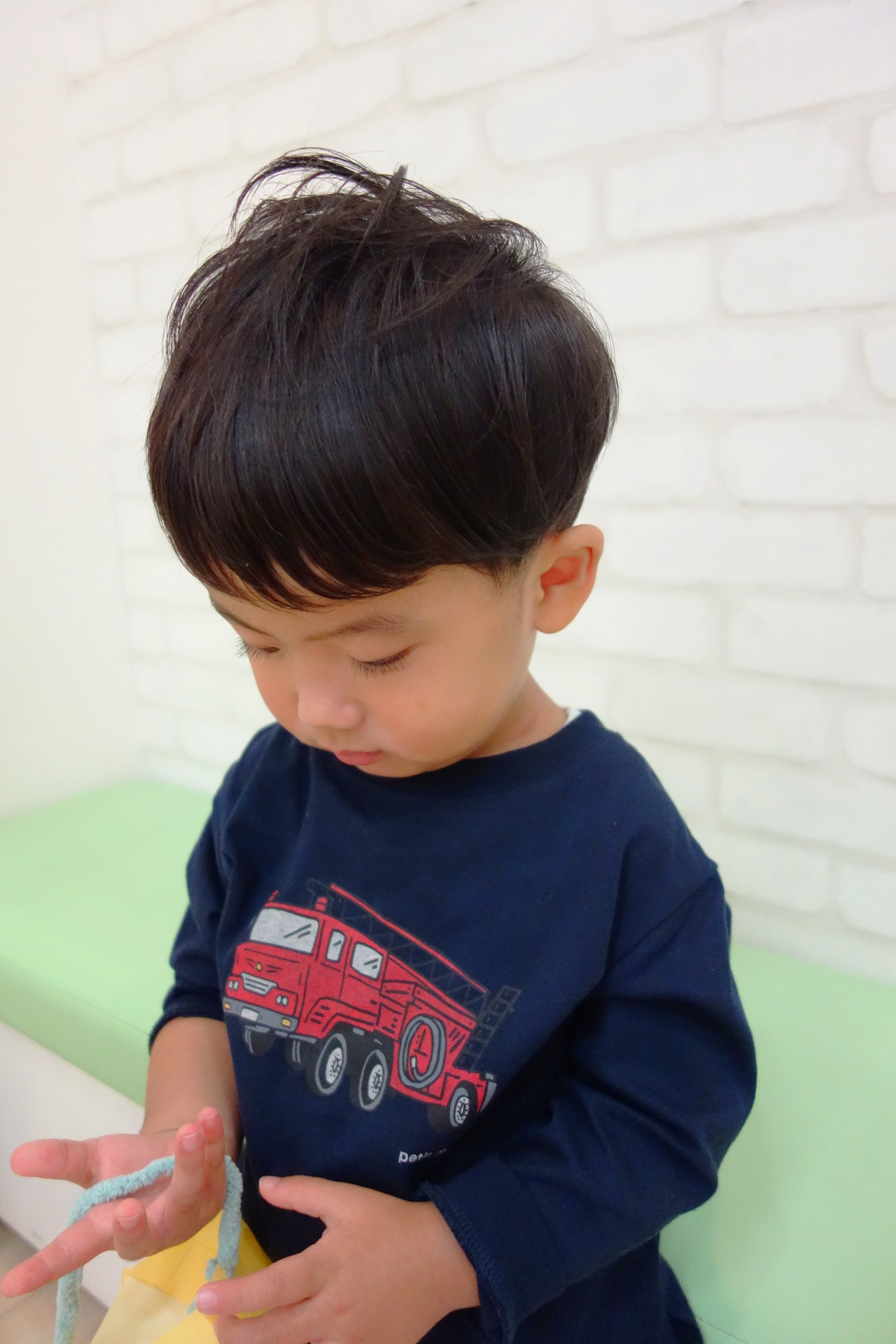 ★ 2さい 男の子 ★サイドは6ミリで刈り上げたツーブロック、えりあしも長め設定のバリカンでナチュラルにかりあげてあります。かわいいくせ毛をいかして動きが出るようにカットしました。と~~~~~っても上手にちょきちょきさせてくれました^^またレイクタウンに遊びに来てね♪ご家族のみなさまもありがとうございました^^