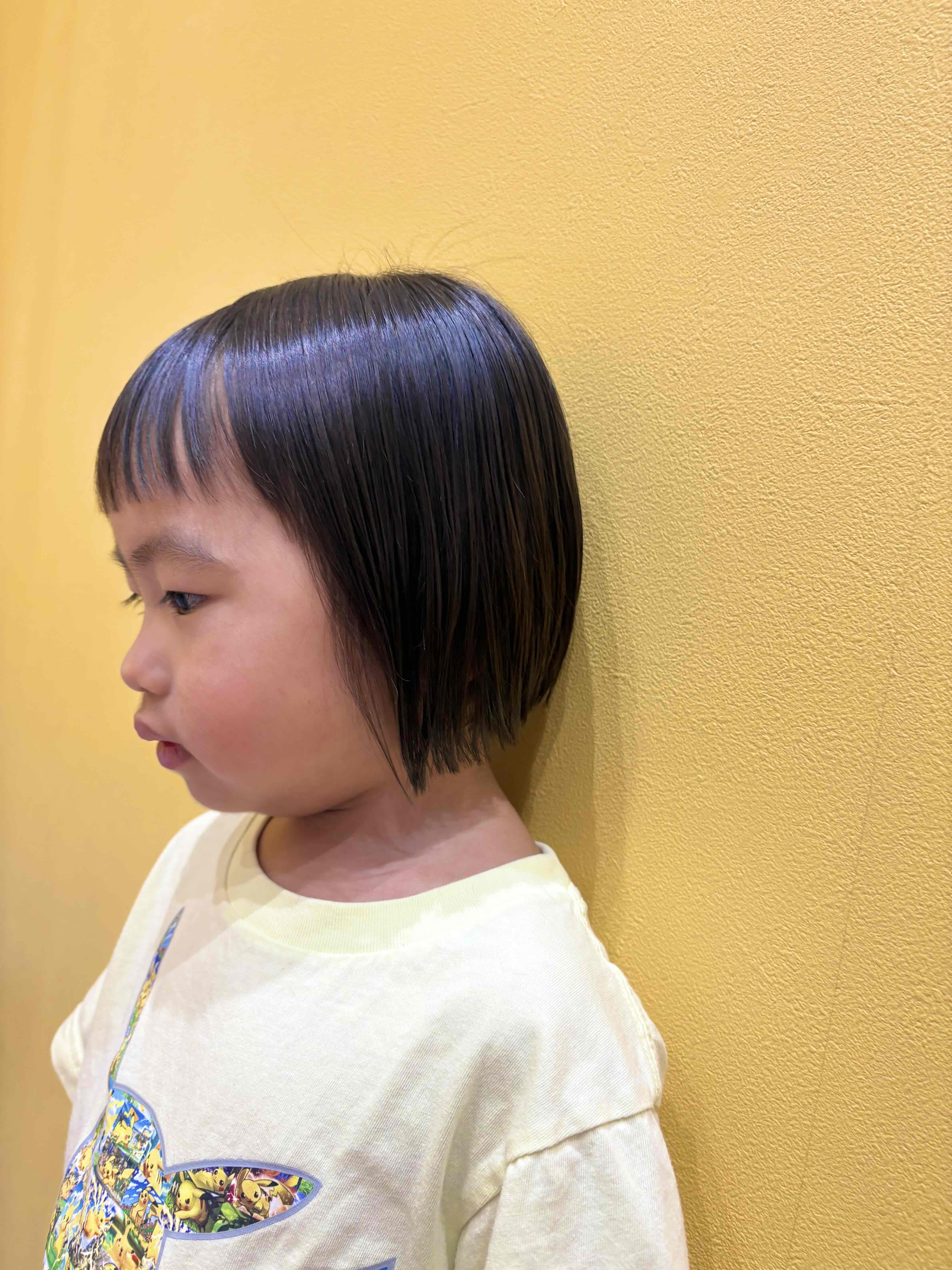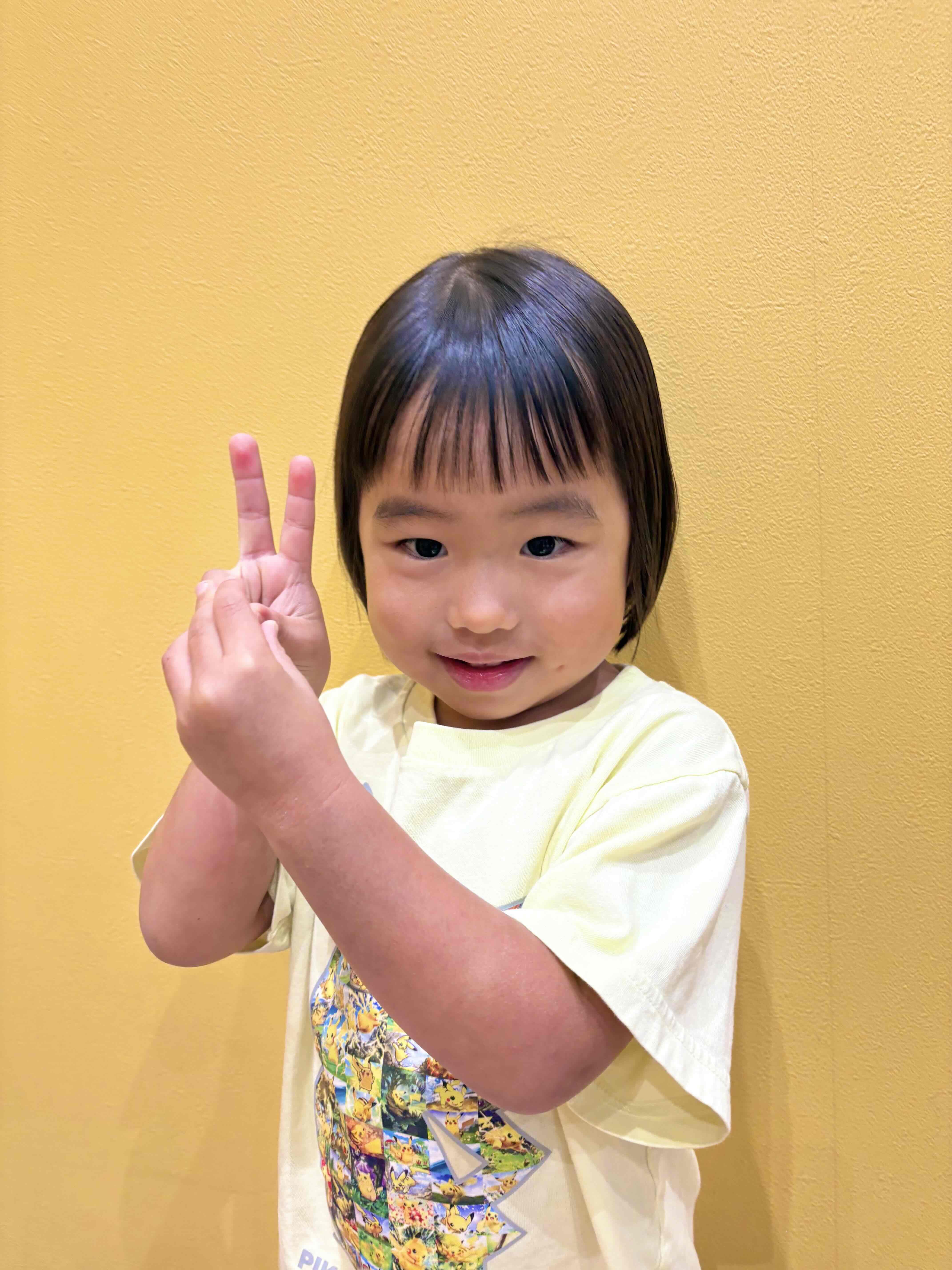 まどかちゃん 3歳 今日はまどかちゃんがちょっきんしにきてくれました👏🏻七五三終わりでばっさりボブにしました✂️✨️前髪も短めで自然に可愛らしく😻最後は頑張ってピースしてくれました✌🏻お母様、お写真のご協力ありがとうございました。またのご来店お待ちしております。
