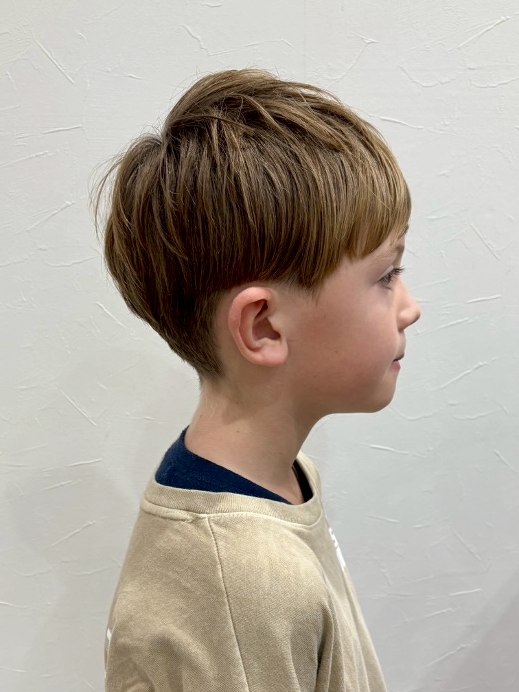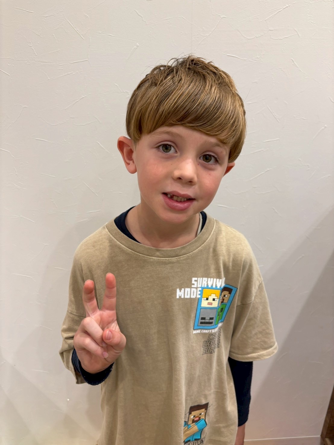 オスティンくん 6歳 いつも遊びに来てくれている、オスティンくん今回はサイドを6mmで刈ってツーブロックにして襟足は12-6mmで低めに刈って丸みを残したマッシュスタイルに🍄 くせ毛と綺麗な髪色もマッチしてとってもお似合いです しばらく故郷にお帰りということで日本に来た時はぜひまた遊びに来てくださいまた会えるのを楽しみにしています お写真のご協力ありがとうございました