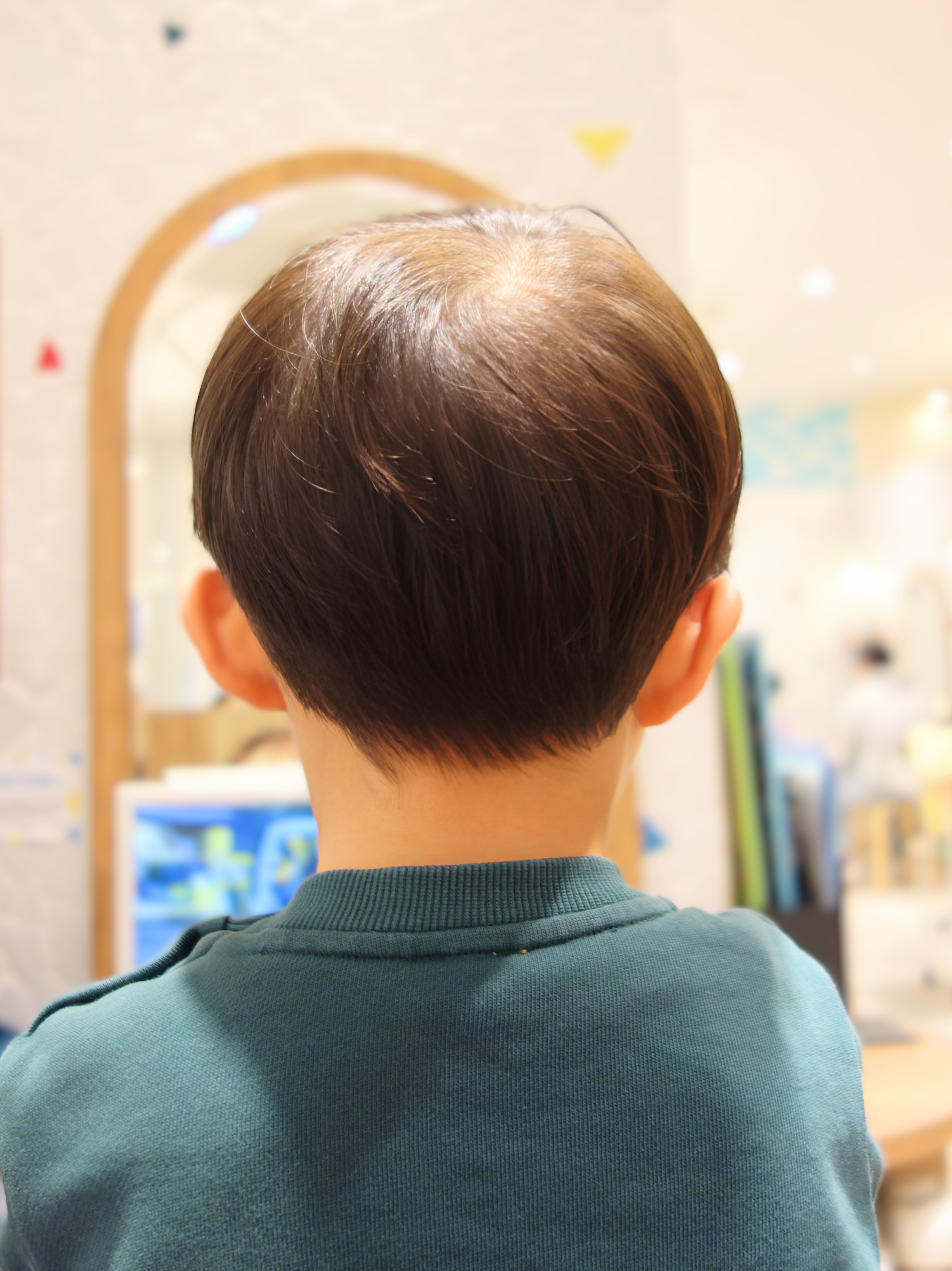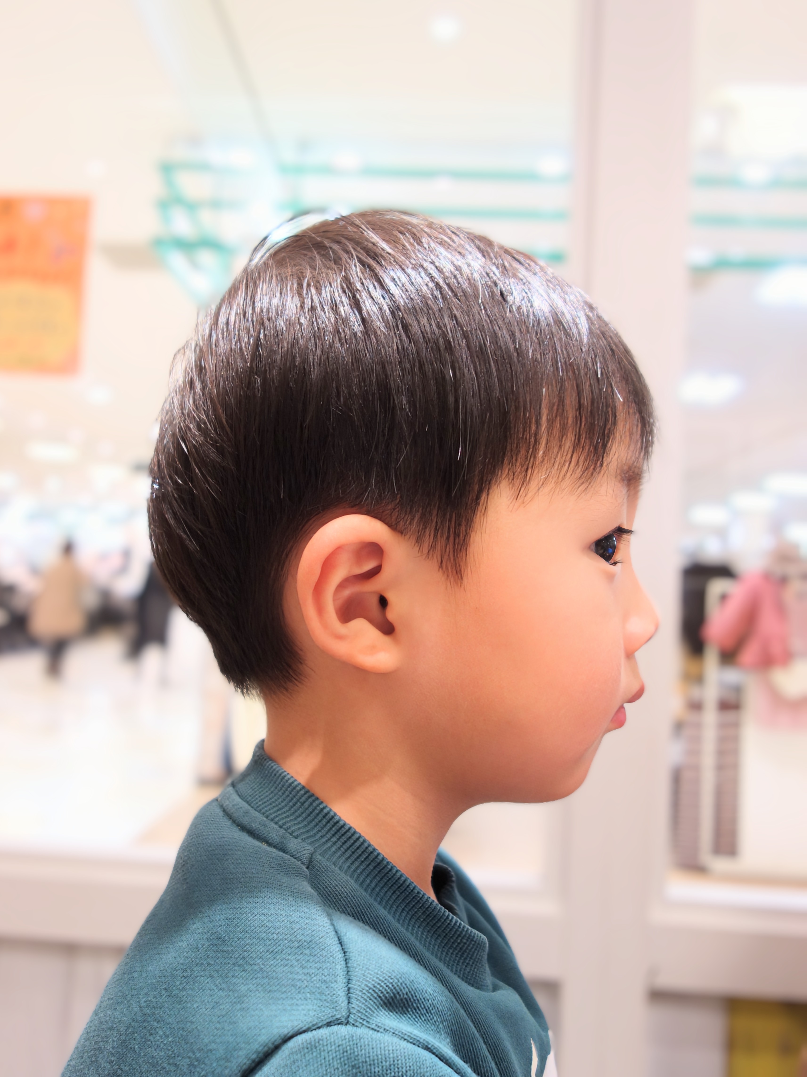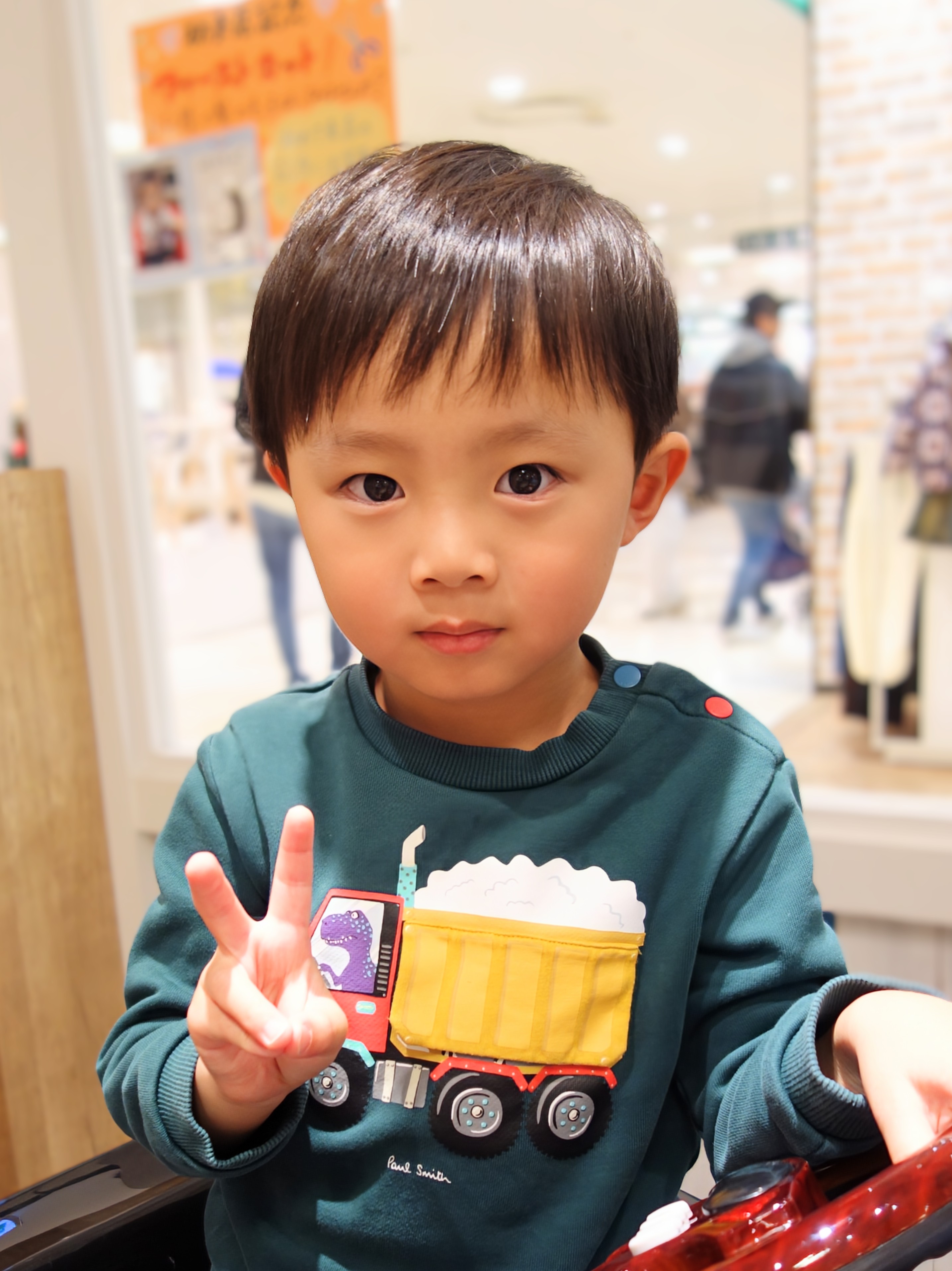 ゆうきくん 3さい 耳出しショート、前髪ななめ カット中も、大好きな車のDVDをみながらおりこうさんでした!スッキリしてカッコよくなったね 撮影のご協力ありがとうございます。またのご利用お待ちしております。