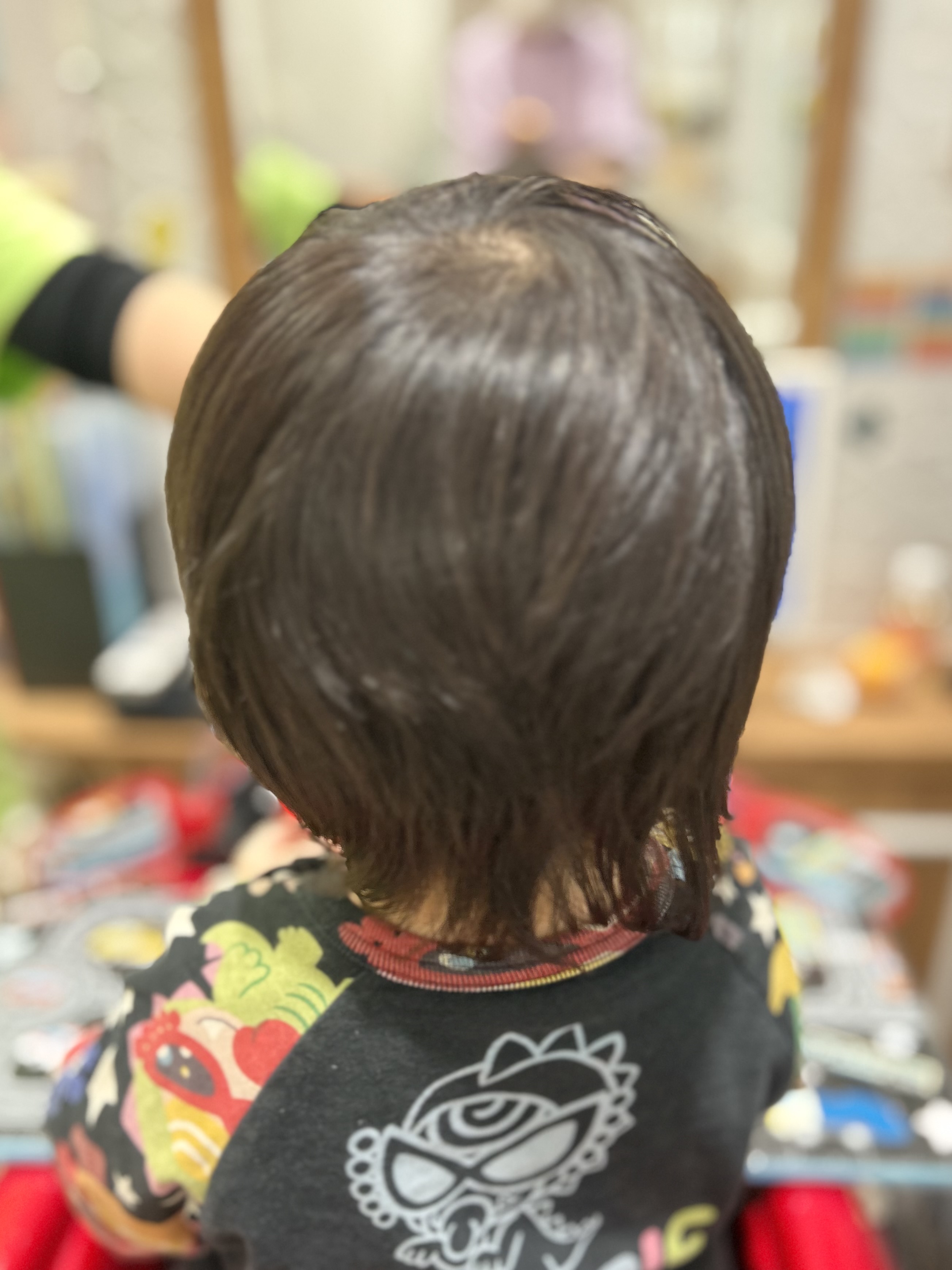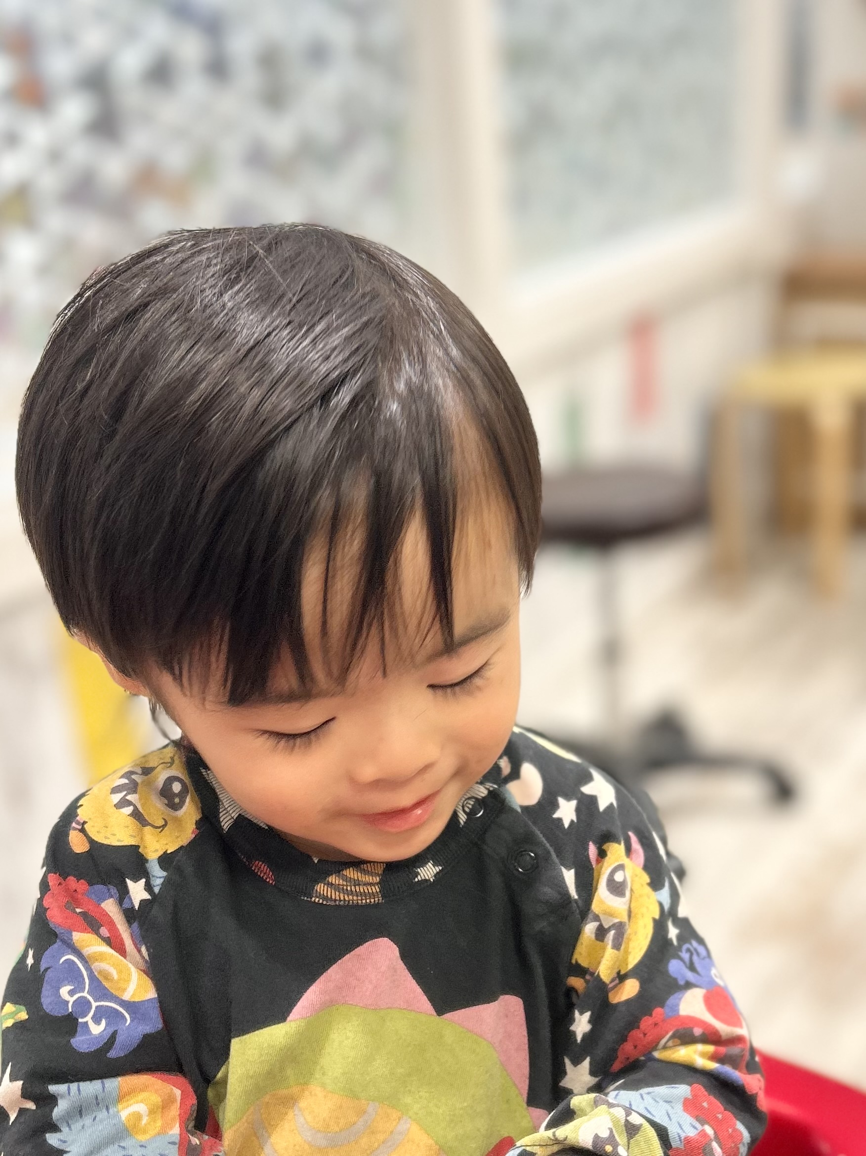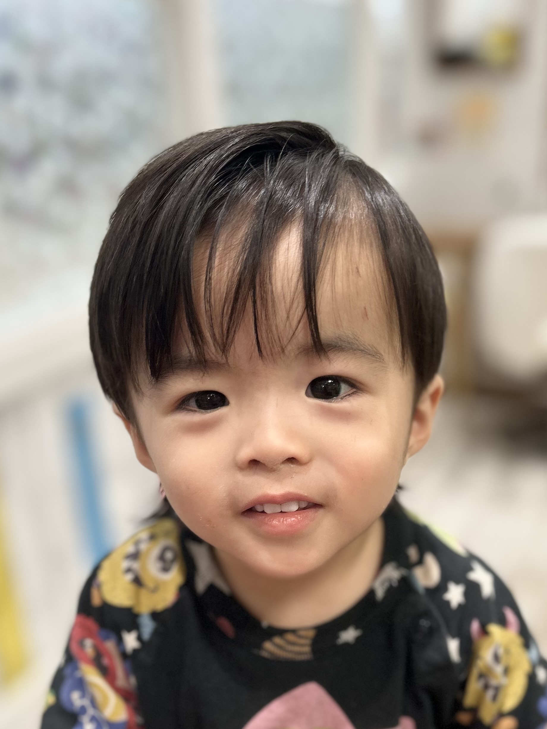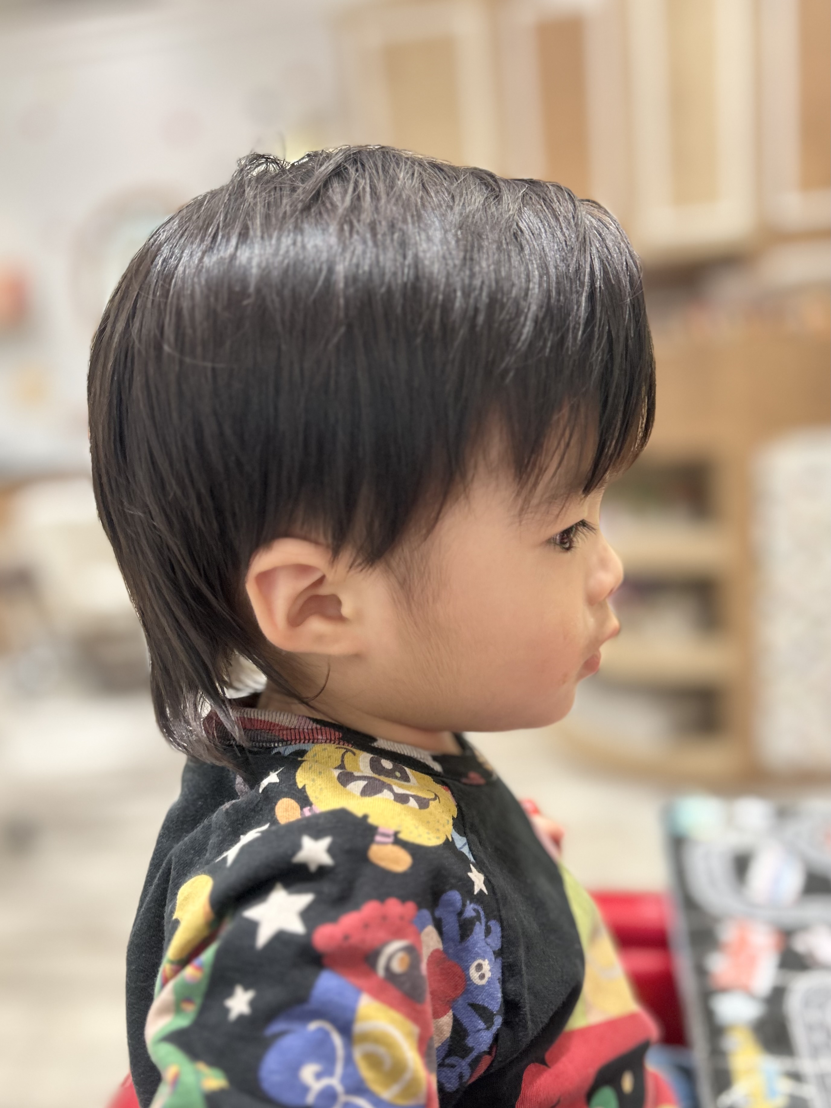 男の子 サイドは9ミリでツーブロック後ろは軽さを出して長さを残しました お耳をスッキリ出して、トップの方は丸く自然なマッシュ風🍄おしゃれに仕上がりました 初めてのチョッキンズ初めてのバリカンだったけど、おりこうでした♡かわいい笑顔でモデルさんになってくれてありがとうお母様もご協力ありがとうございました♪またのご来店をお待ちしています。
