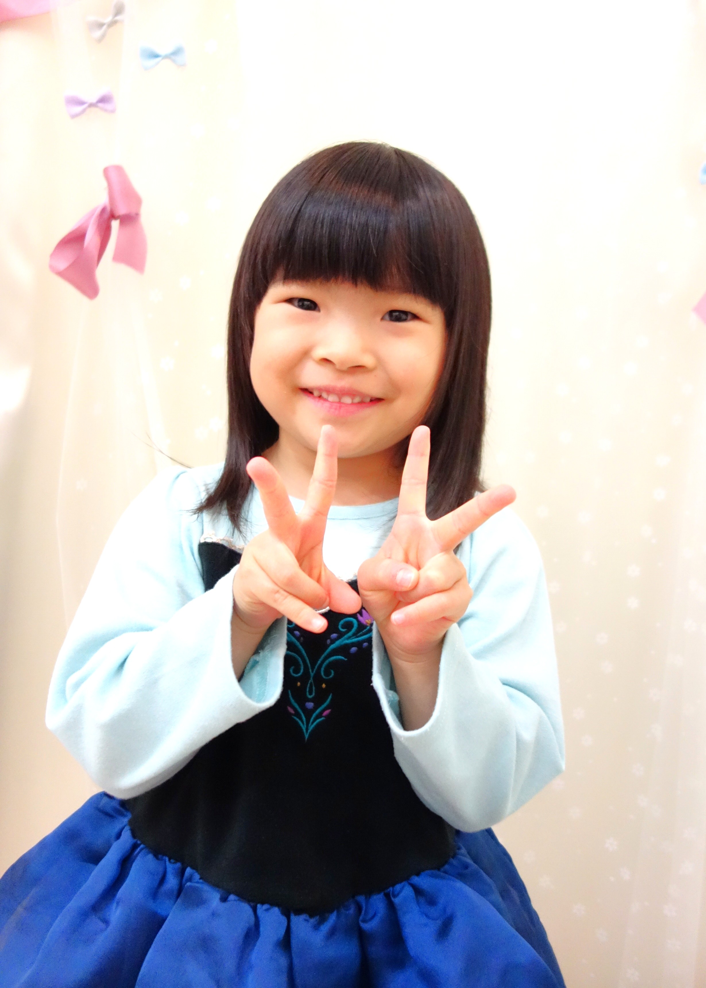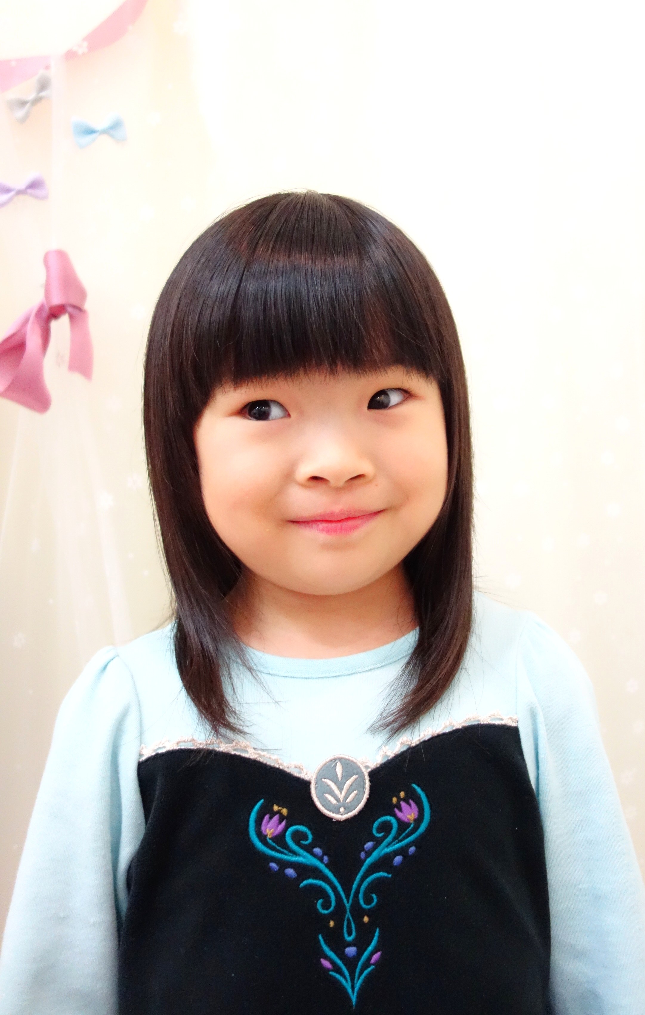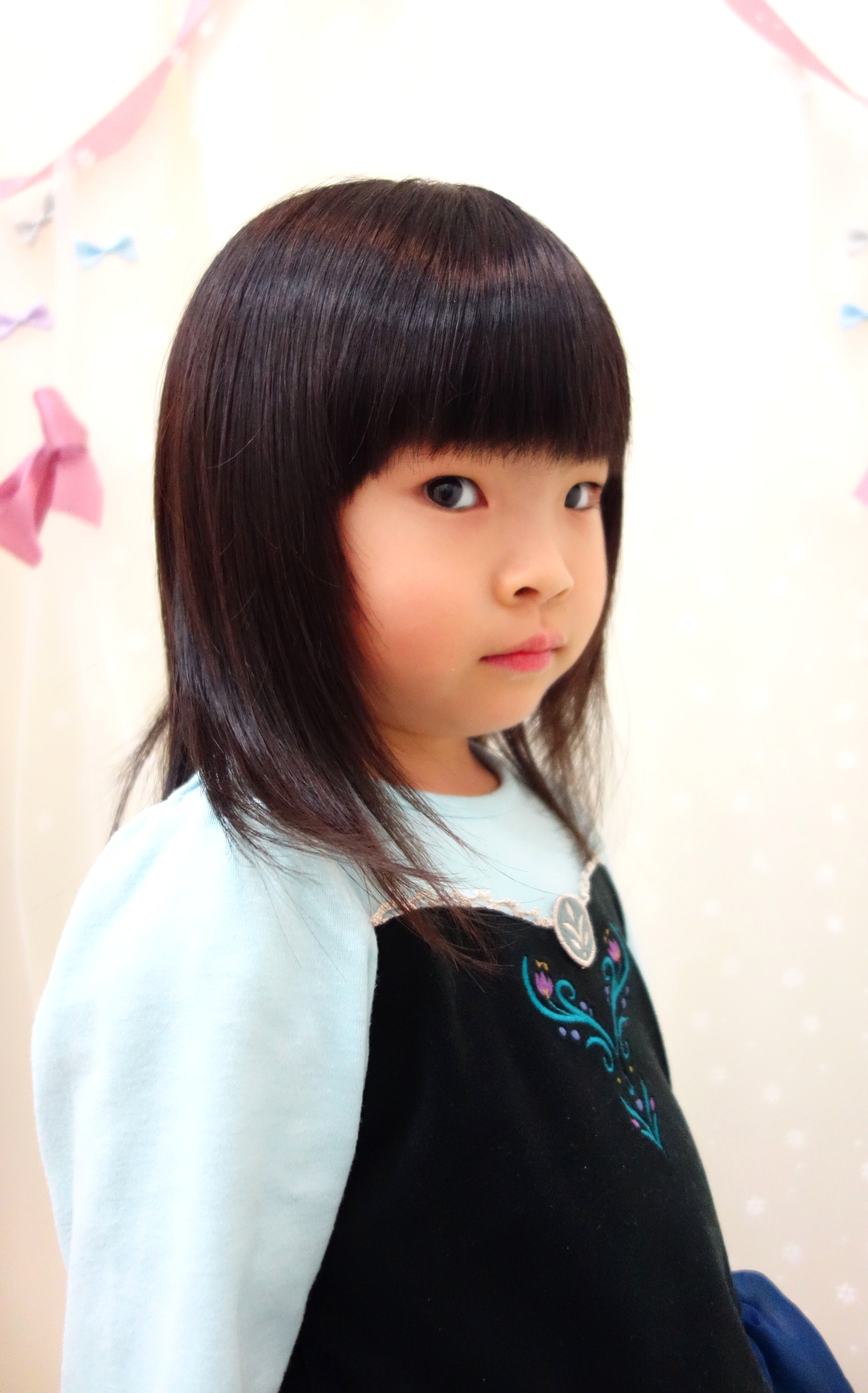 ゆいかちゃん 4歳 ママとお揃いのロングヘアにするー♡と伸ばし中のゆいかちゃん。毛先を整えて、前髪を可愛くカットしました。カメラを向けるとすっかりモデルさん♡可愛いお写真ありがとう!ゆいかちゃん、お父様お母様SNSご協力ありがとうございました。