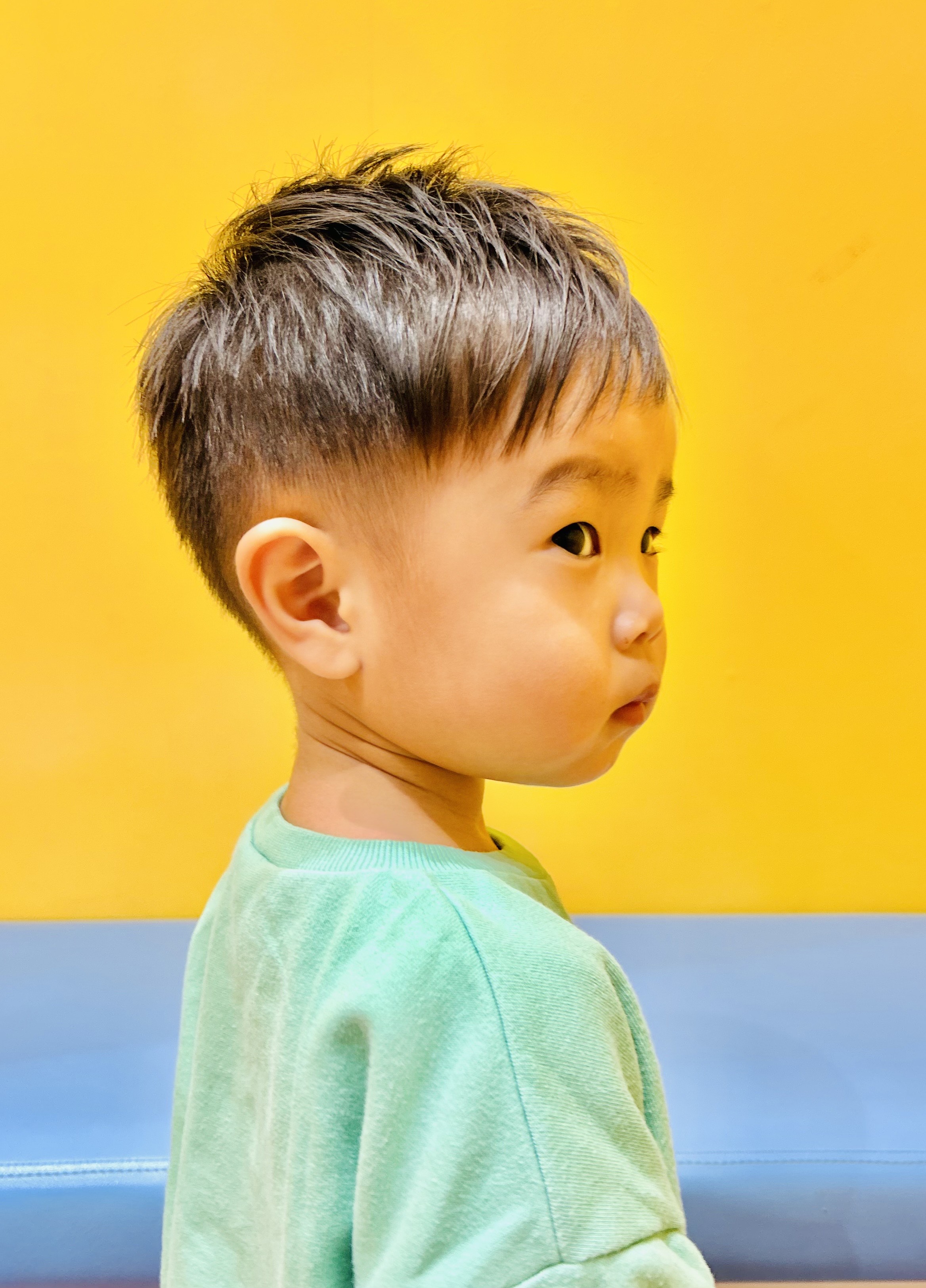 かなと君 1歳 今日は、かなと君が髪を切りにきてくれました人気のルーセントフェードで前髪はアシメにしたおしゃれなスタイルすそ周りはすっきりできて、ハチ周りはグラデーションで刈り上げるので骨格カバーができます!気になった方は是非チェックしてみてください!!最後のモデルさんみたいなポーズが素敵お母様、ブログのご協力ありがとうございました。またのご利用をお待ちしております。