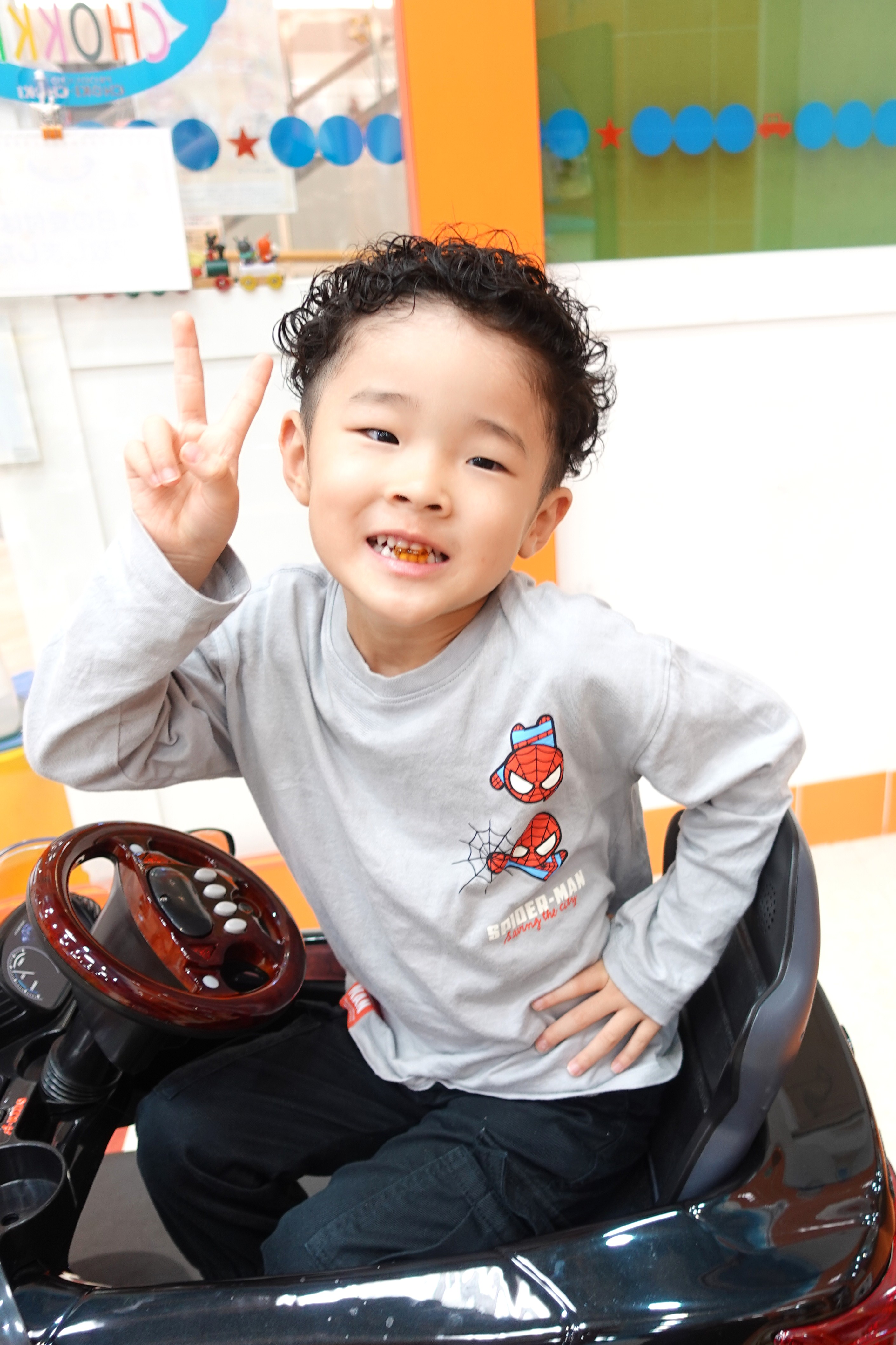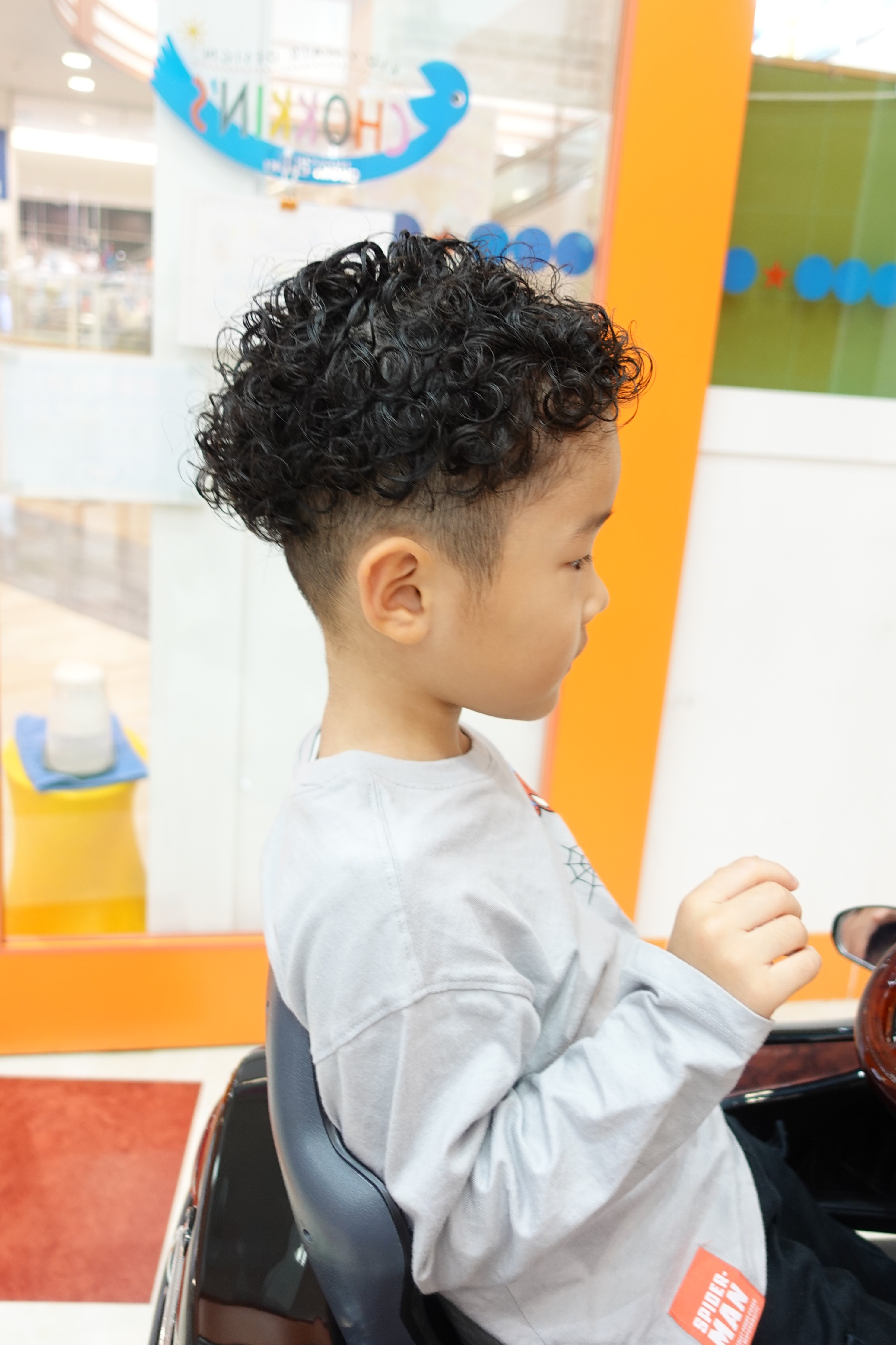 ☆ とあ君 4さい ☆ 七五三お写真の記念に パーマをかけたよ サイドとバックは4mmの長さで刈り上げてツーブロックにしスッキリとして、 前髪はアップバングにセットしておでこだし 気分変えて前髪おろすスタイルも出来ます。 お写真のご協力ありがとうございました。