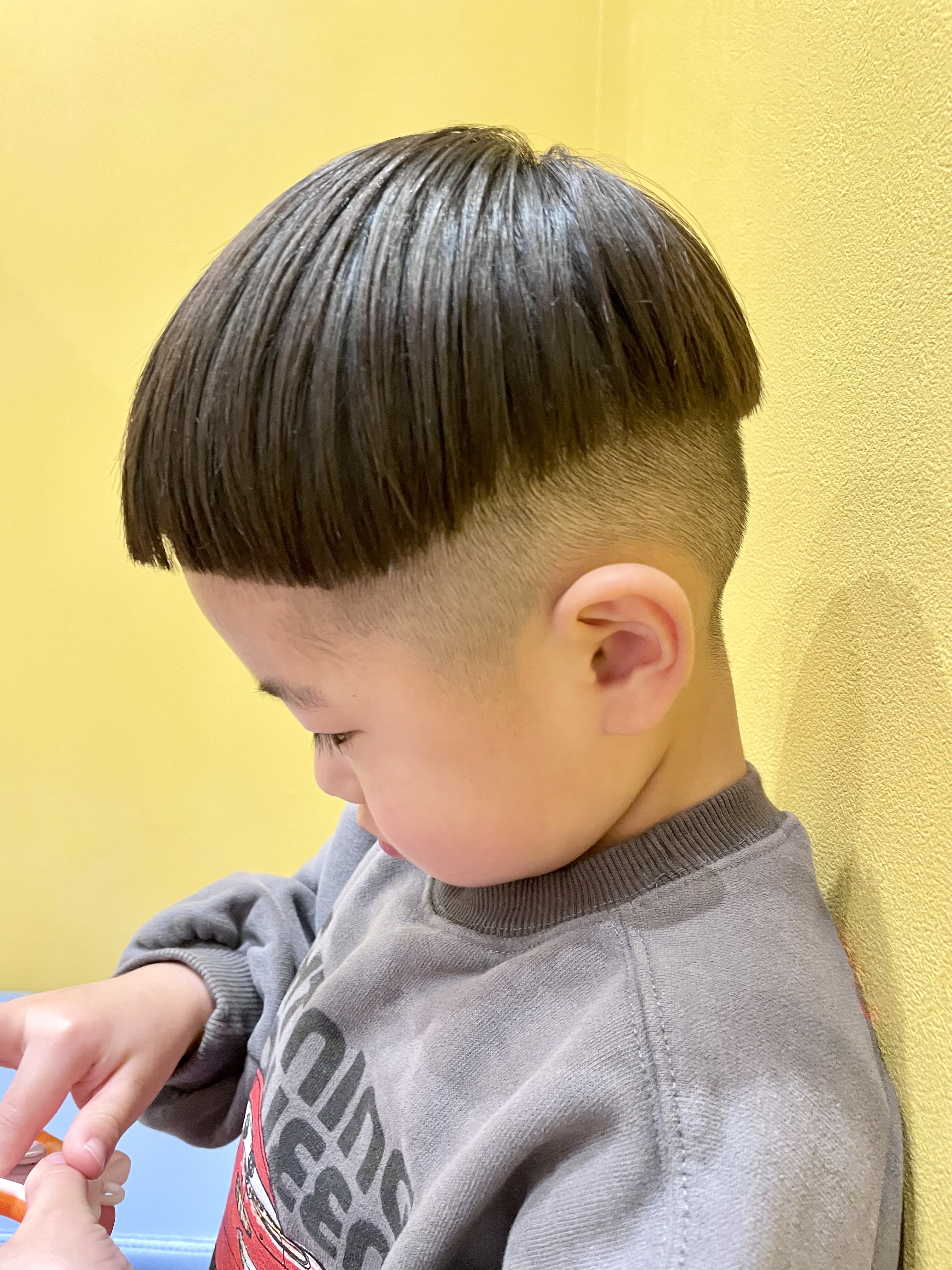 🚗 しおんくん 2才 🚗王道ぱっつんマッシュスタイル!🍄‍🟫刈り上げは短くメリハリがあって可愛いです🫶また恐竜で遊ぼうね!🦕お母様、お写真のご協力ありがとうございました。またのご来店お待ちしております。