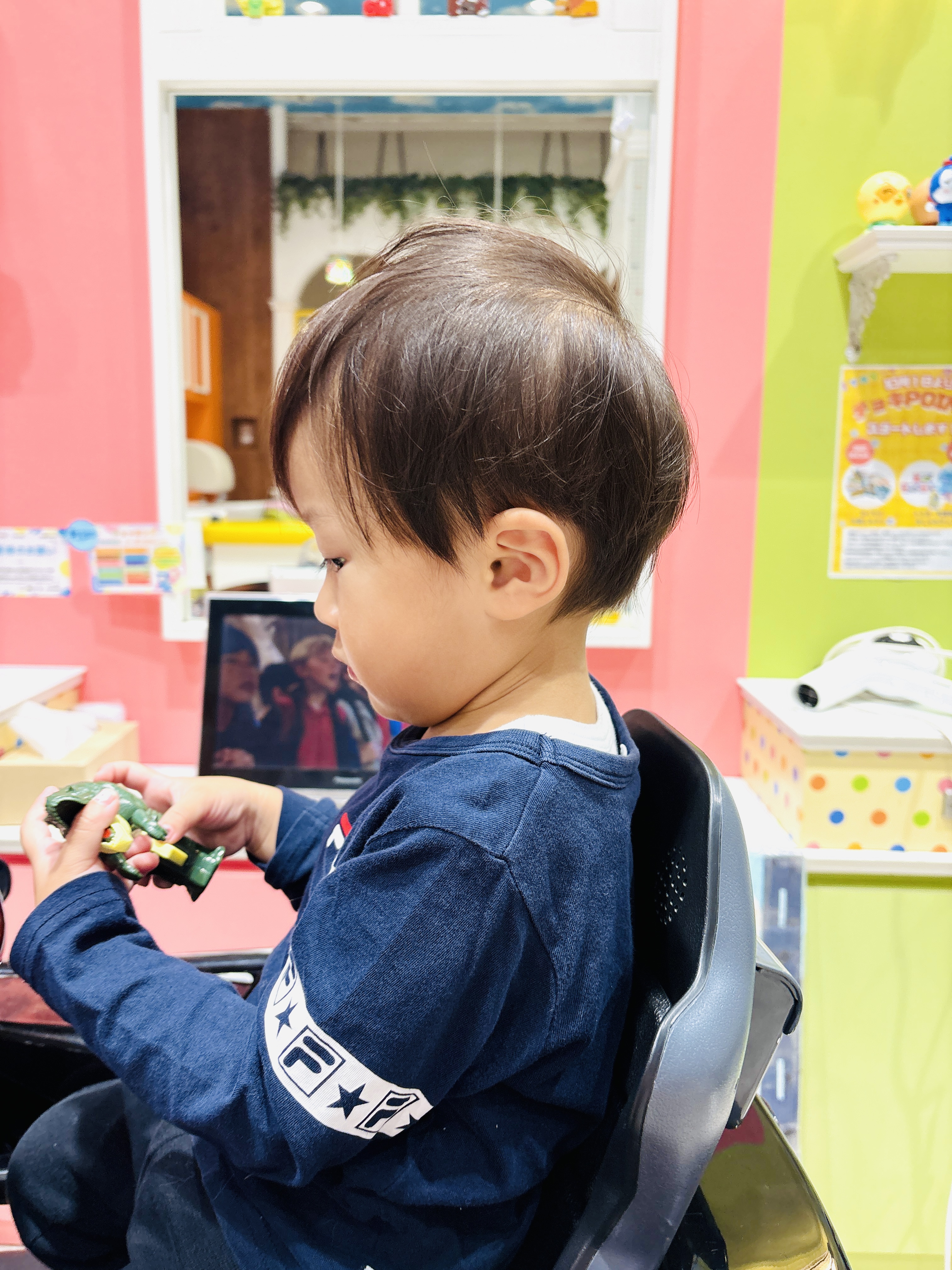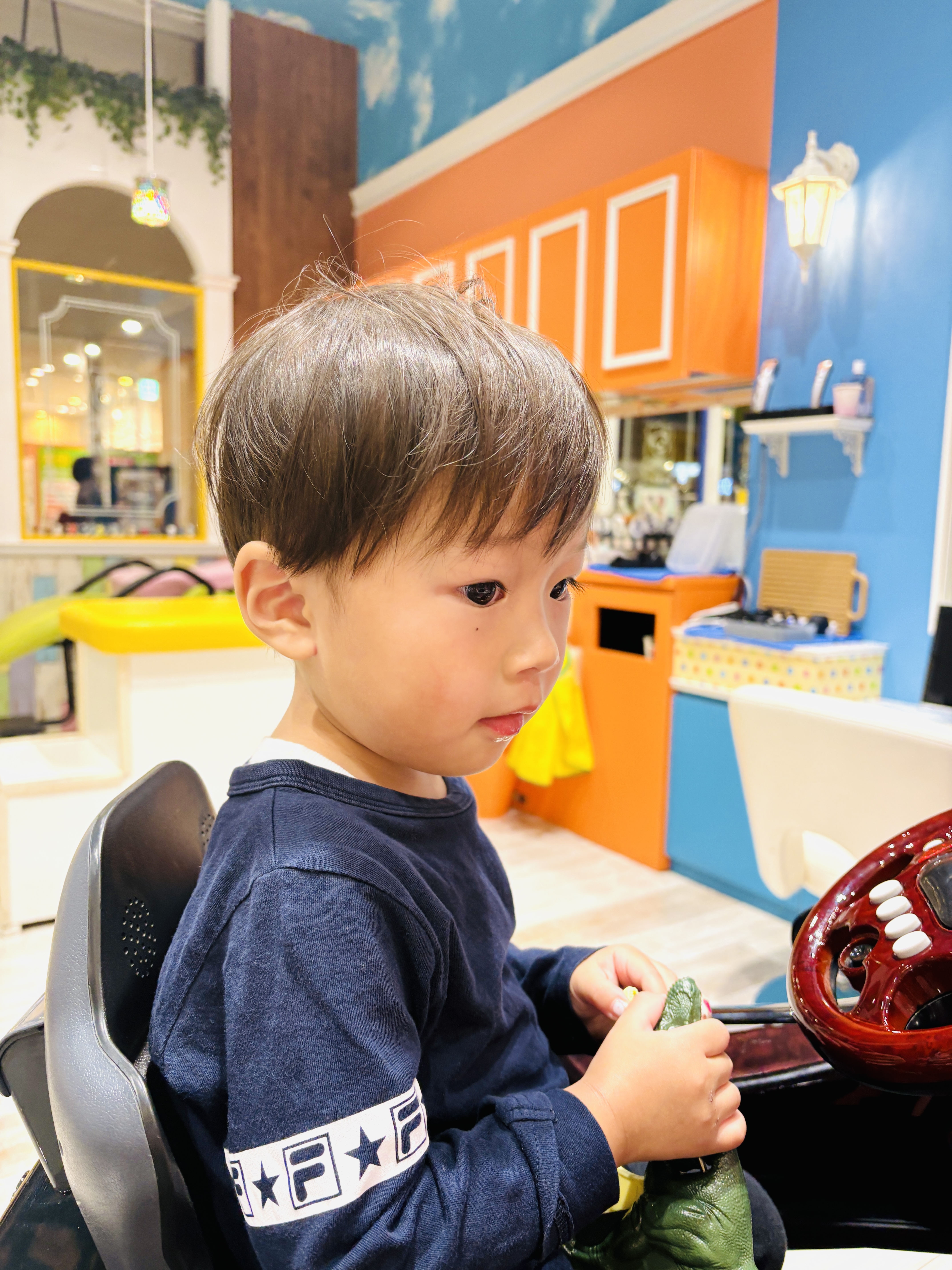 れいくん 2歳 お耳周りと襟足はハサミでスッキリさせつつも、全体的に丸さをだしてカッコよくでも可愛くさせていただきました前髪はまゆ毛の下のラインに合わせ、短すぎず長すぎずな長さでカットしました お母様、お写真のご協力をありがとうございますまたのご来店を心よりお待ちしております