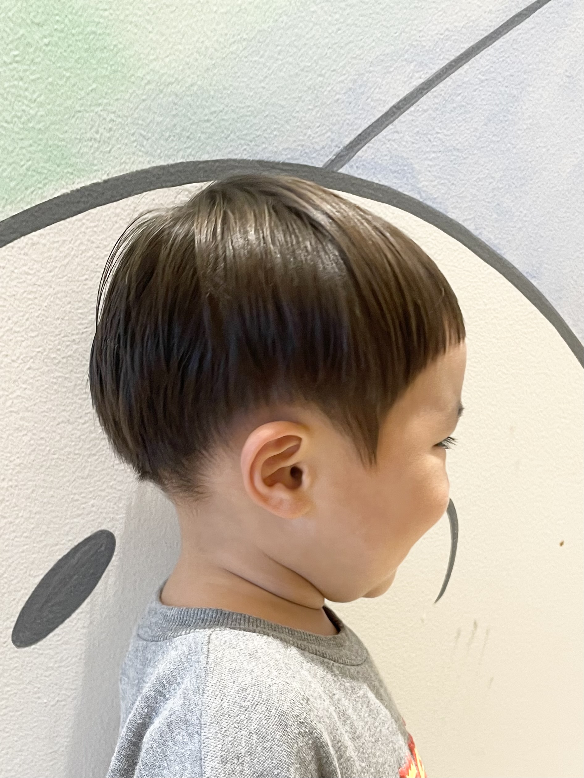 なるくん 3才遠くにお引越しをして今回久しぶりのご来店。おじいちゃんおばあちゃんに会いに来て髪の毛もチョキチョキしに来てくれてました😄前髪はおでこぎりぎりからラウンドにつなげたマッシュスタイルバックはスッキリめにほんのりかりあげました✂️なるくん、車の運転もお話もとーっても上手だったね最初ちょっと緊張しながらお写真も最後にはとびっきりの笑顔をありがとうまたチョッキンズに遊びにきてね❣️お母様ブログのご協力ありがとうございました。