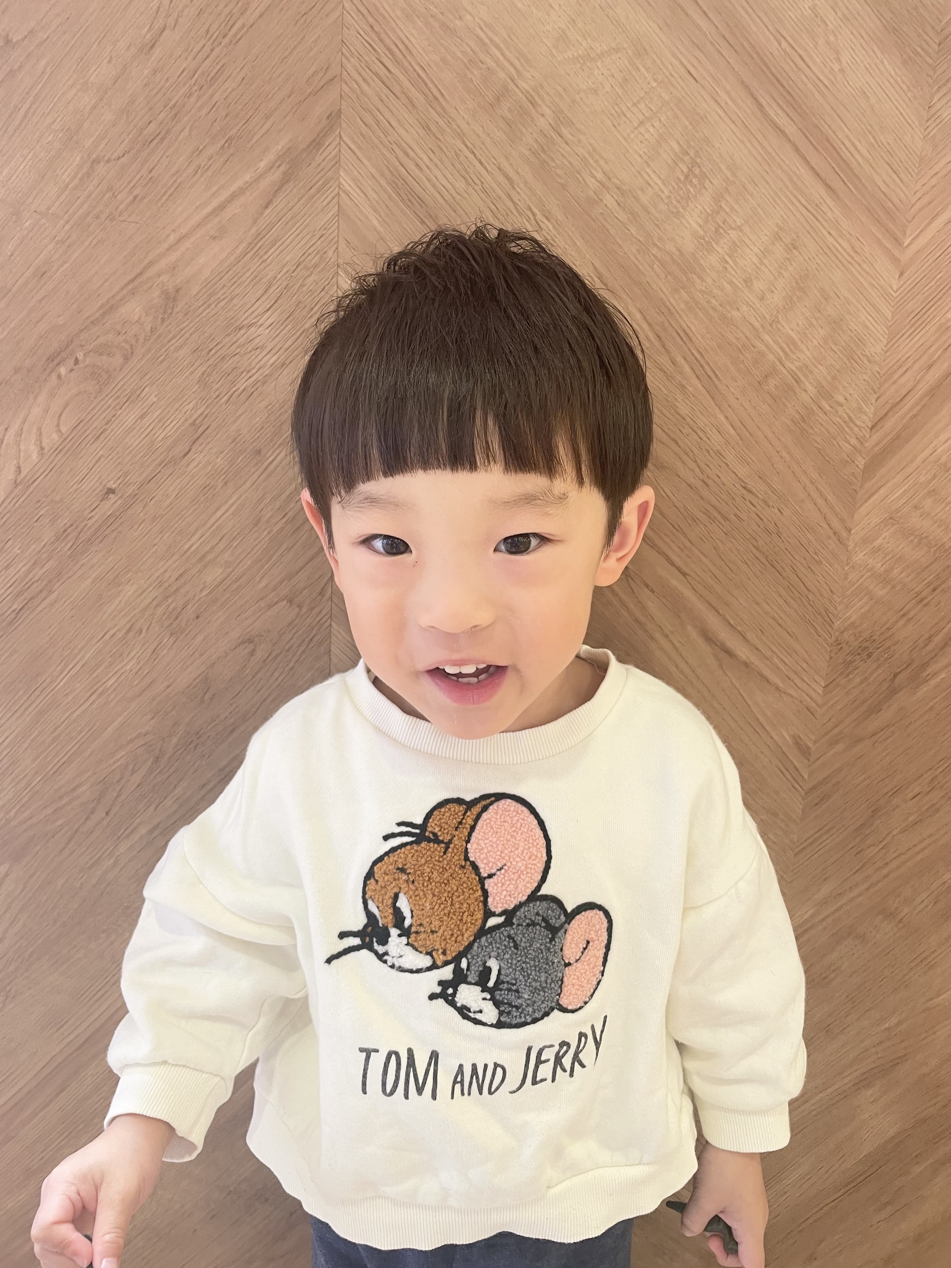 そうたろうくん 3さい 内側は横も一周バリカンを入れて、後ろはガッツリ刈り上げが見えるように横は長めに被せ、前下がりなかっこいいスタイルです前髪のラウンドぱっつんと、TOPの長さを残し丸いフォルムでかわいさも大好きなトミカと一緒にチョキチョキ楽しかったね!!キュートなお写真ありがとうまたお店で待ってるね~! お写真のご協力ありがとうございました。またのご利用お待ちしております!
