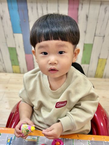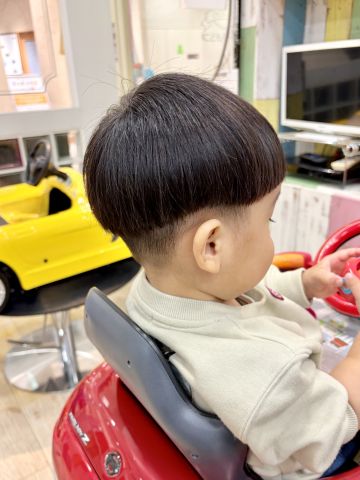 みなとくん2さいさん😃はじめてのチョッキンズでしたが、バリカンもチョキチョキもとっても上手にできました🙆‍♂️今回は2ブロックのマッシュルームヘアにしました🍄カットする前から絶対似合うだろうなぁ〜と思ってましたが間違いなかったです!にこにこおもちゃで遊びながら上手にカットできました!ほんととってもお似合いです!めちゃかわです☺️ブログのご協力ありがとうございました!