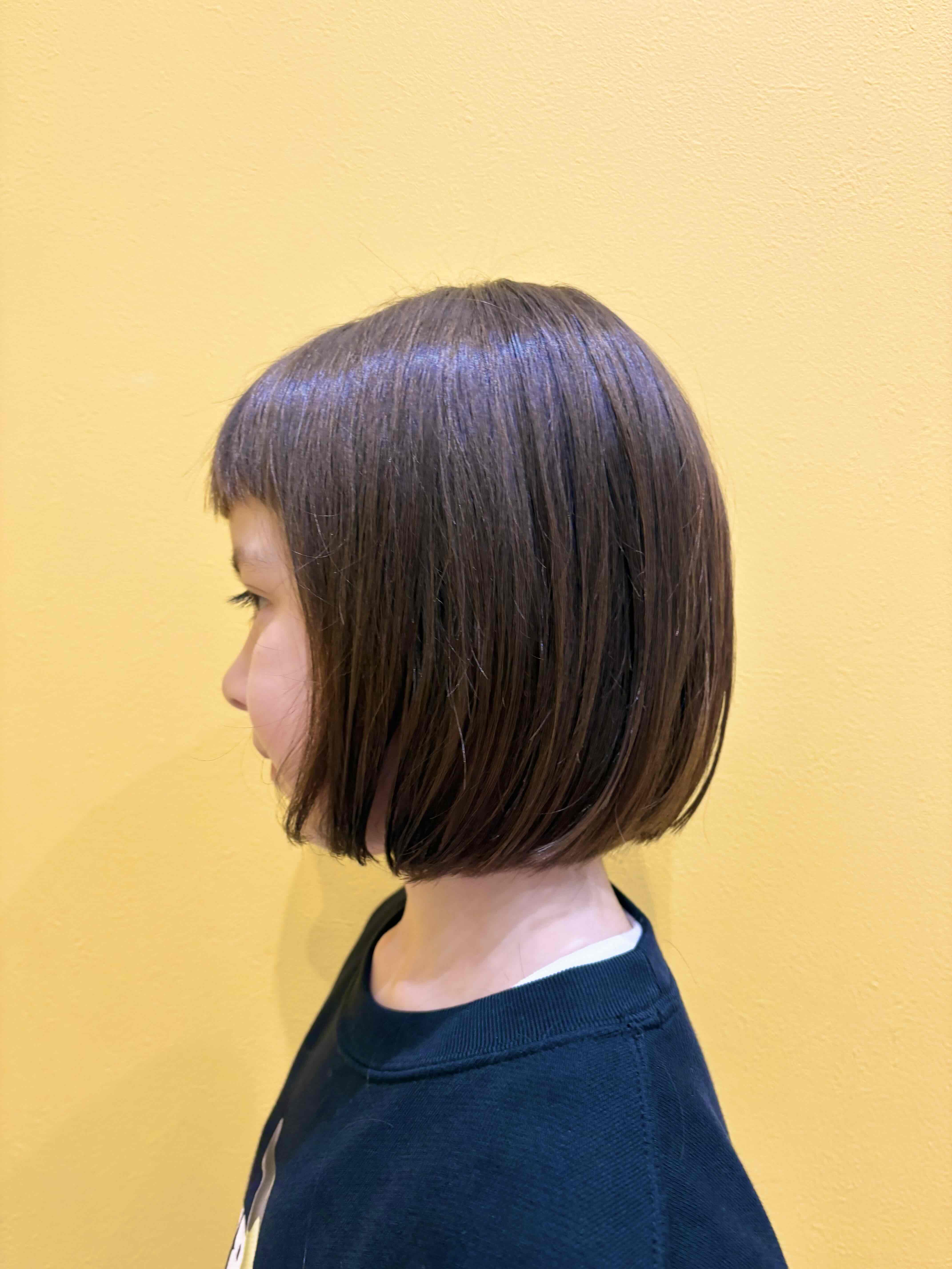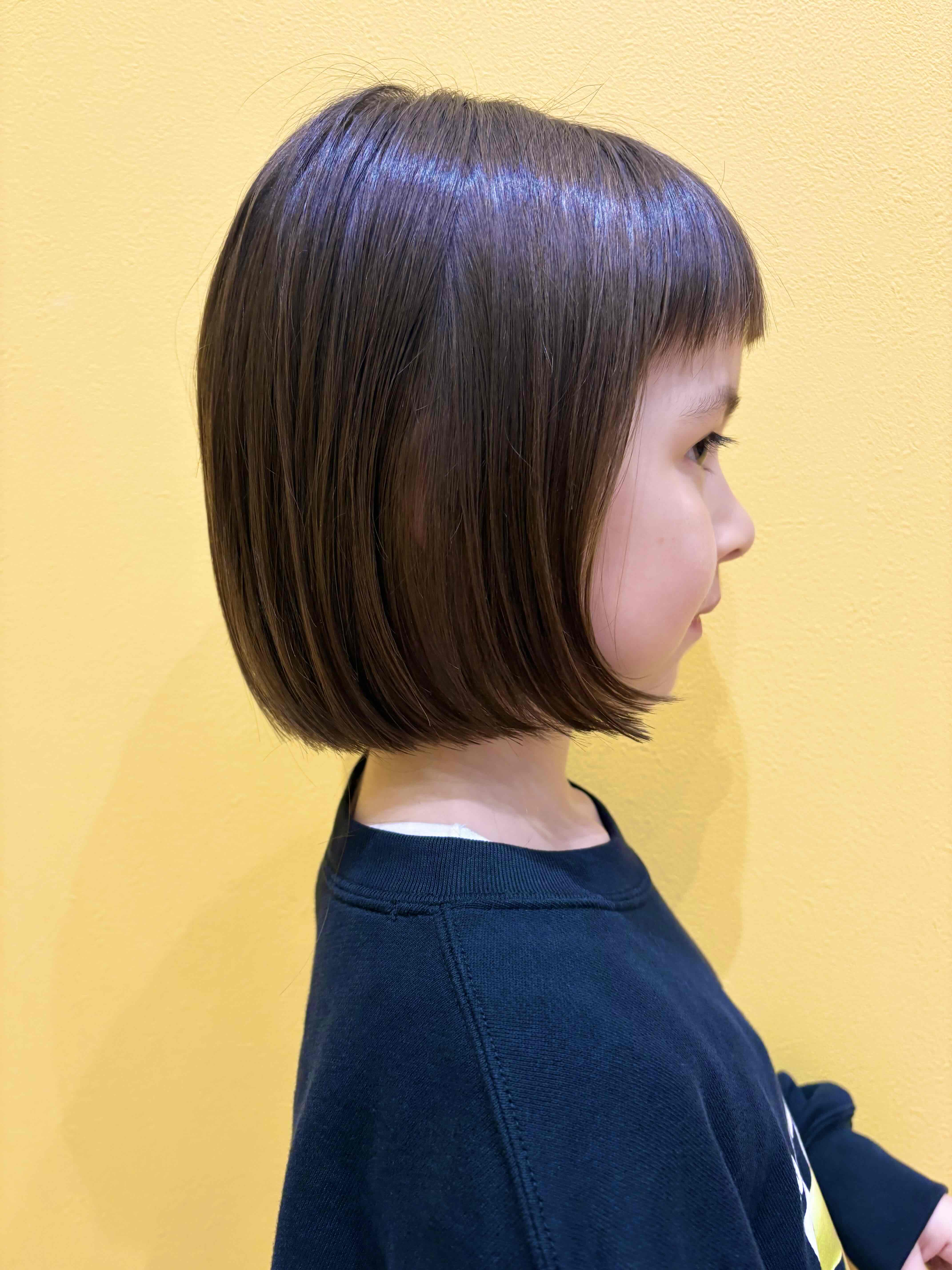 りんちゃん 7歳 りんちゃんがちょっきんしに来てくれました!!ばっさり切ってボブに大変身前髪もおでこ半分で可愛らしく自然に短いのもとっても似合ってるね お父様お母様、お写真のご協力ありがとうございました。またのご利用をお待ちしております。