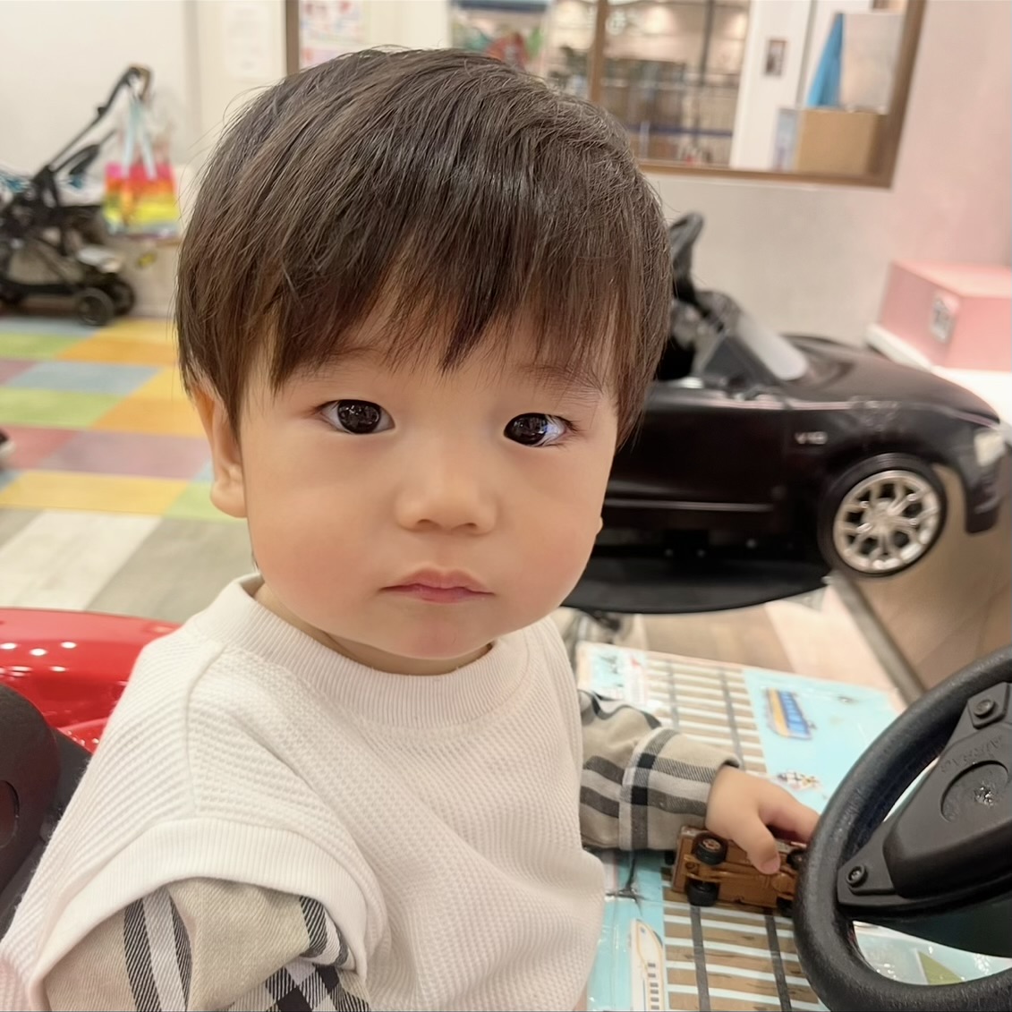 Rくん 1さい 先日 おばあちゃまときてくてたRくんとってもおりこうさんにチョキチョキ出来ました 今回の髪型は ナチュラルなウルフでかわいいと カッコイイのいいとこどりスタイル とーーーーっても似合ってます お写真もいろんな表情をみせてくれましたかわいいです チョキ友のご協力ありがとうございました