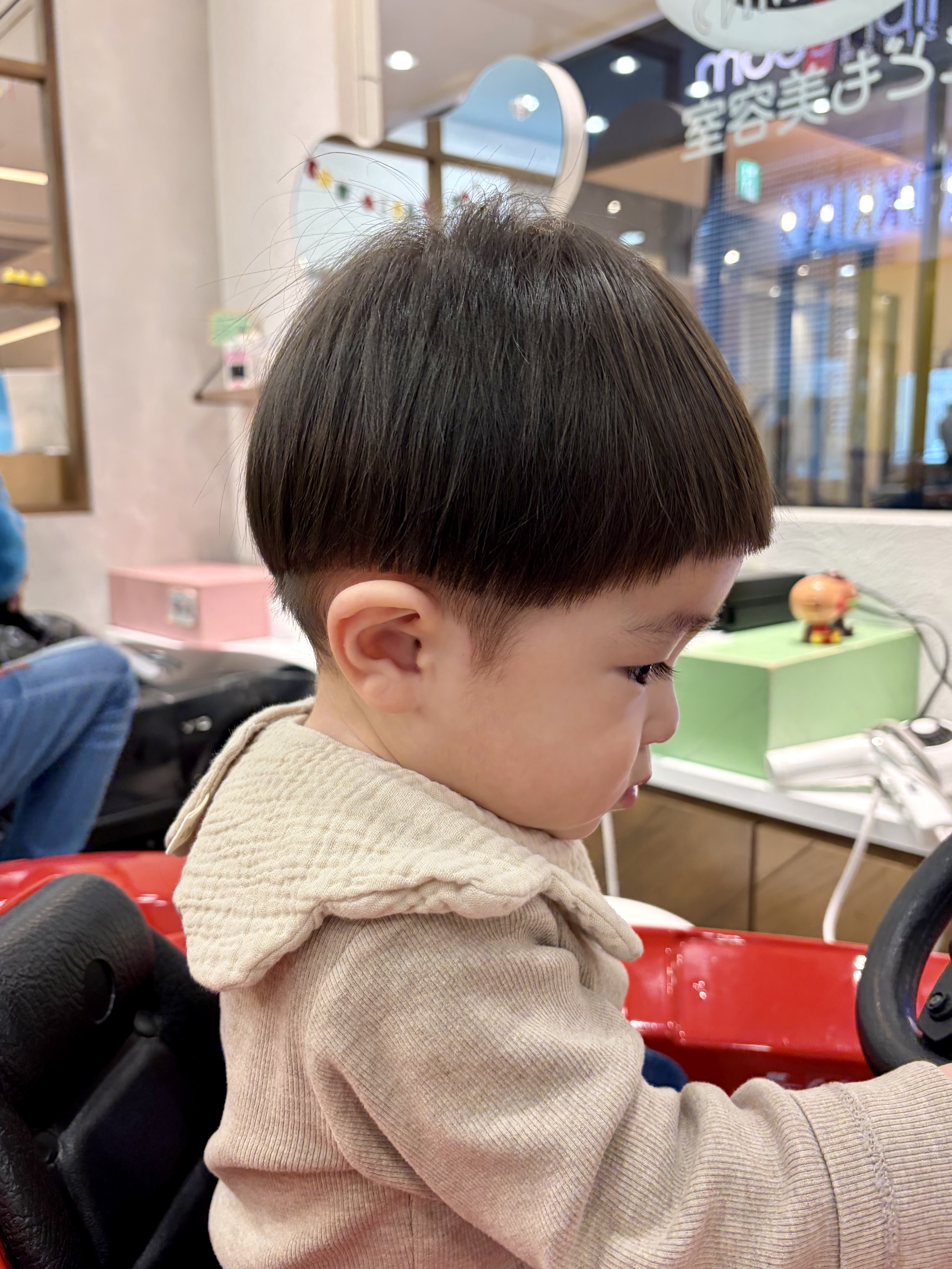 ✩すーちゃん 1さい✩ 全体刈り上げてツーブロックにし、ぱっつんマッシュに(*^^*)♪ 車に乗って上手にカットできました! また遊び来てください♪お写真ご協力ありがとうございました!!