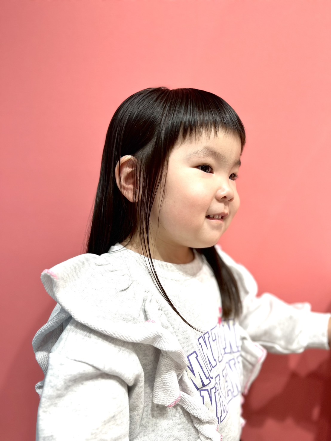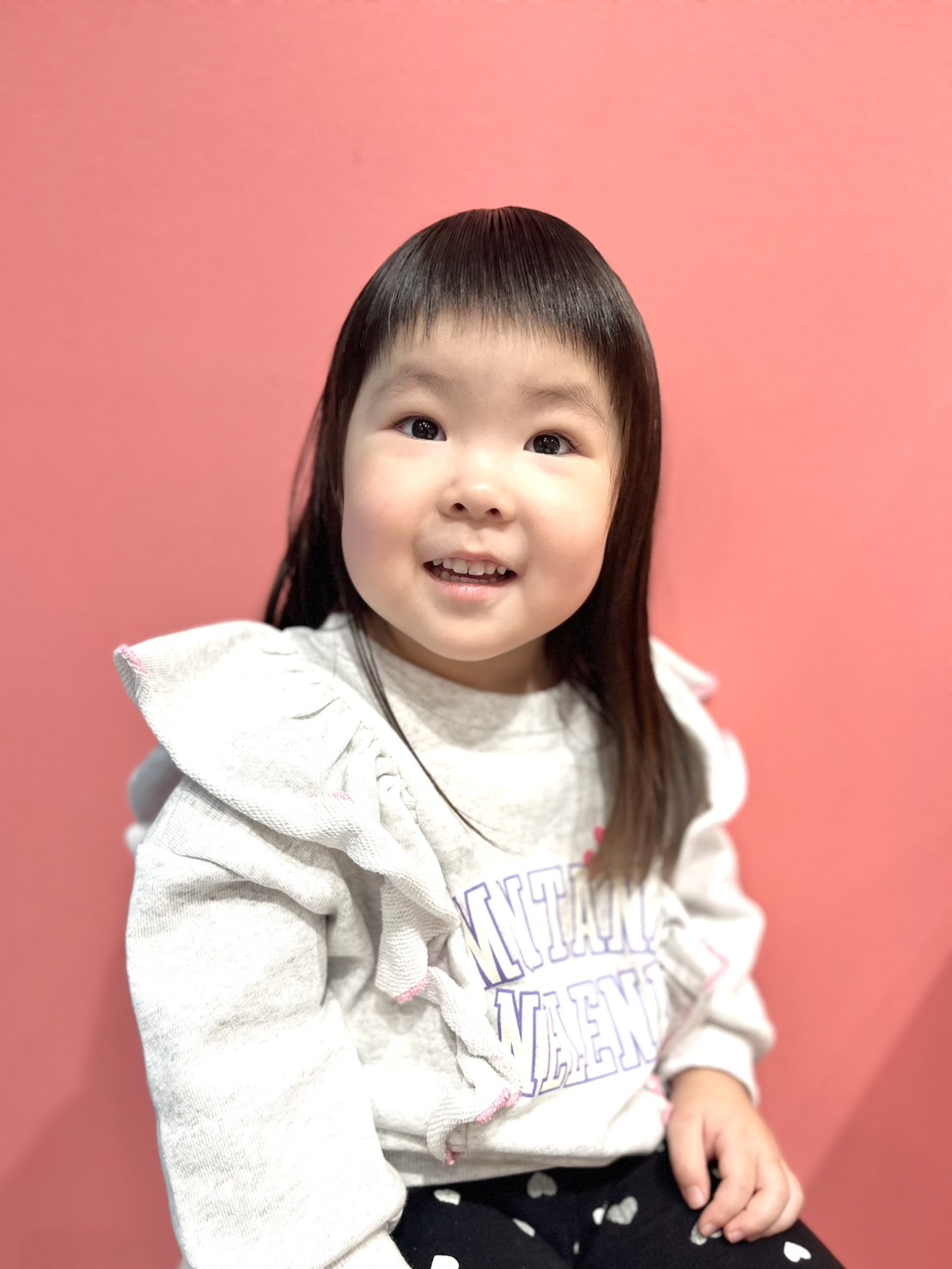 💚 すずちゃん 3歳 💚 笑顔が可愛く、短い前髪もとっても似合っています🫶チョキチョキもモデルさんも頑張ってくれてありがとう🙏 お母様、ご協力頂きありがとうございましたまたのご利用をお待ちしております