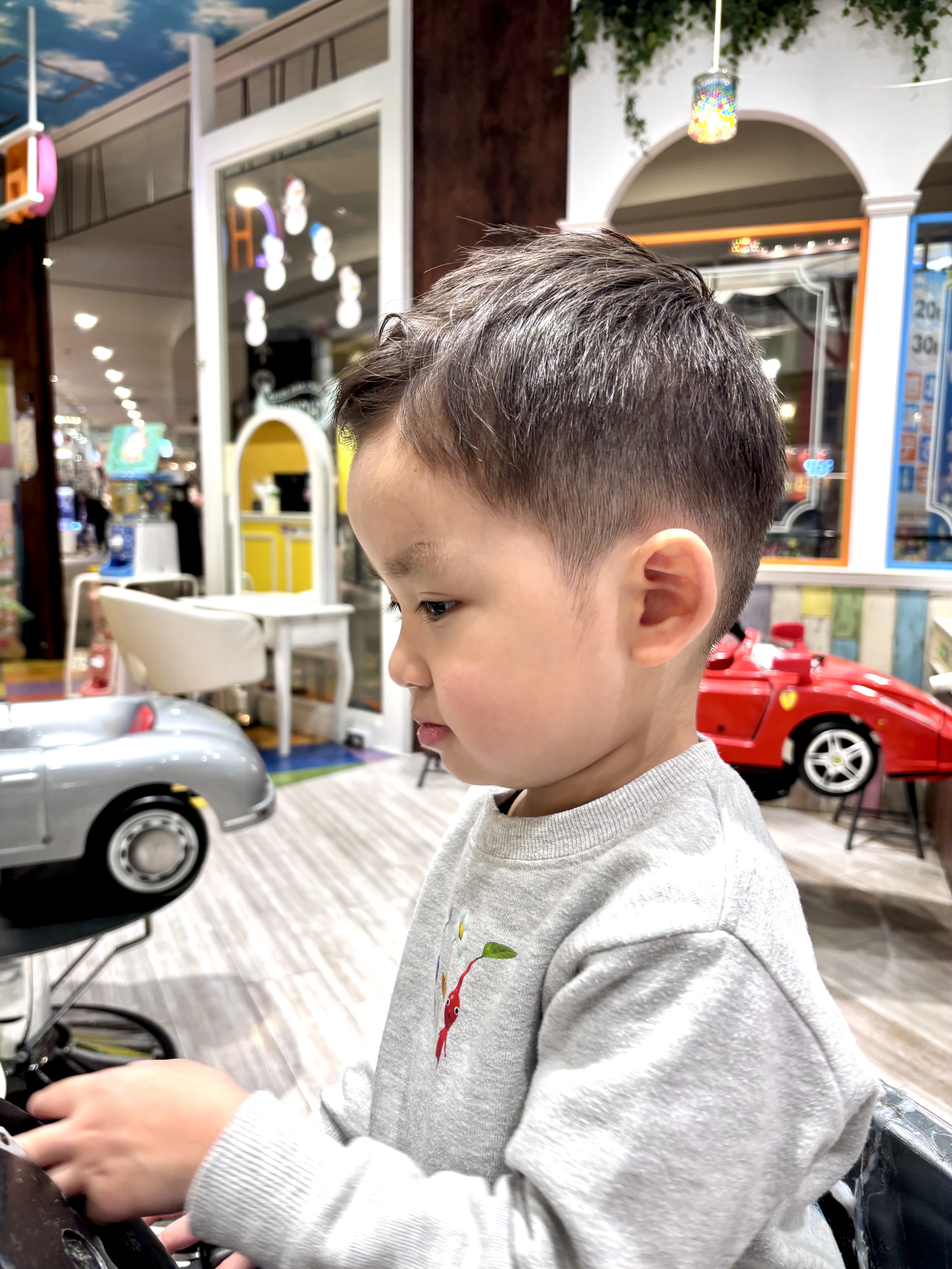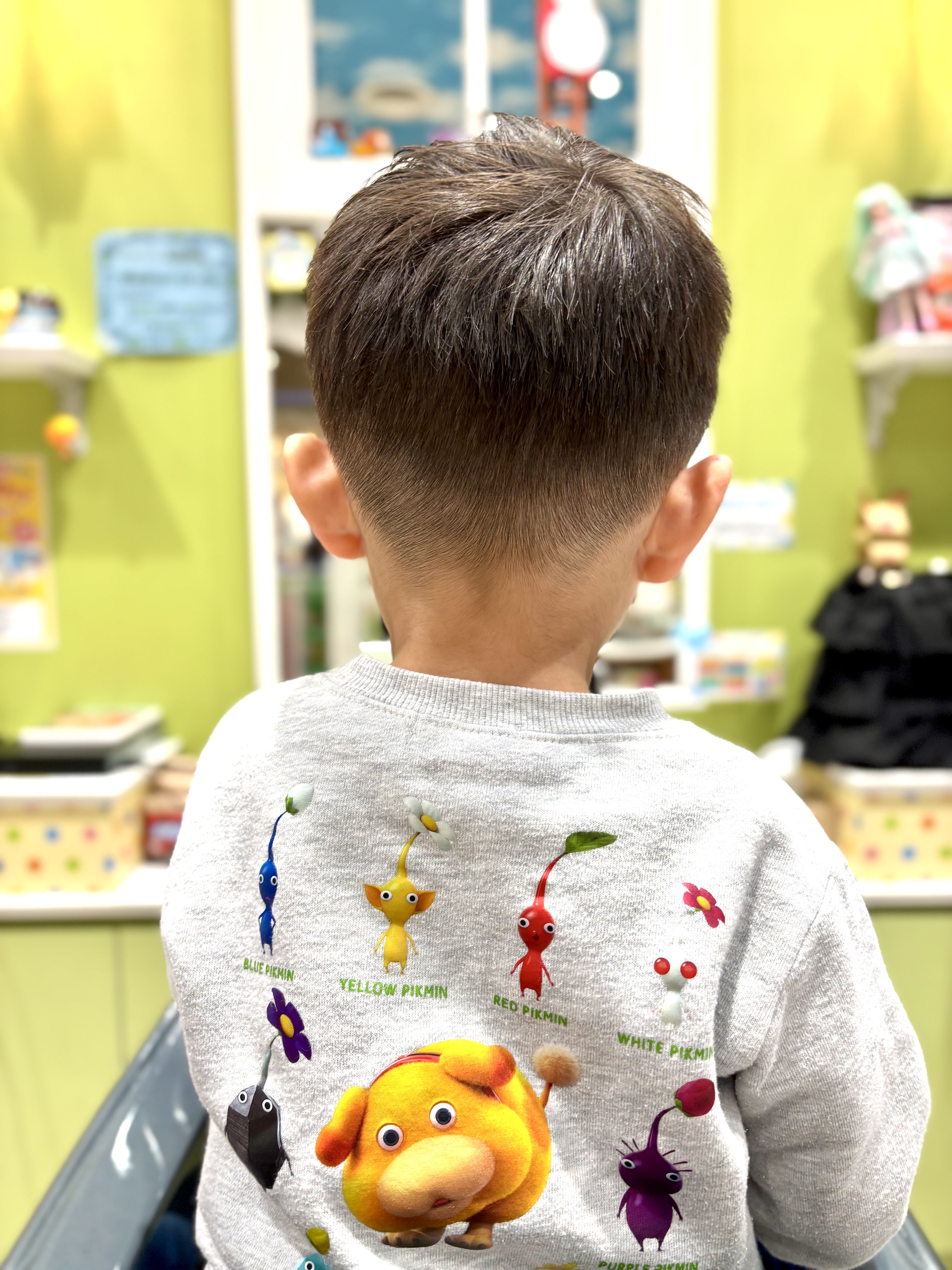 ゆうせい君 バリカン使って周りは刈り上げてソフトモヒカンスタイルです爽やかに前髪あげてセットしましたカット中はテレビに夢中でしたが、カメラを向けるとちょっと変顔⁈したり、かわいいゆうせい君でしたお母様、お写真のご協力ありがとうございました。またのご利用お待ちしております。