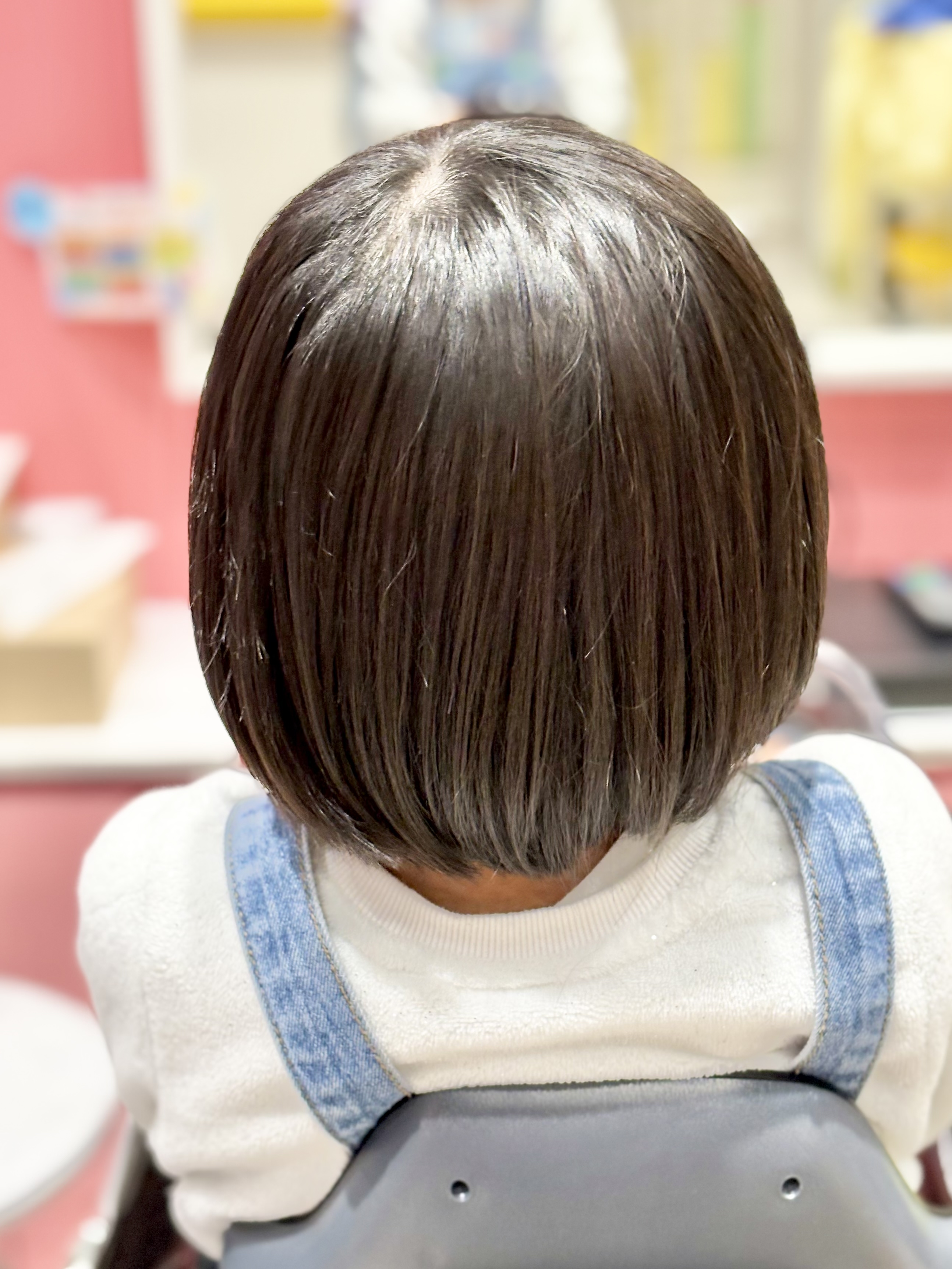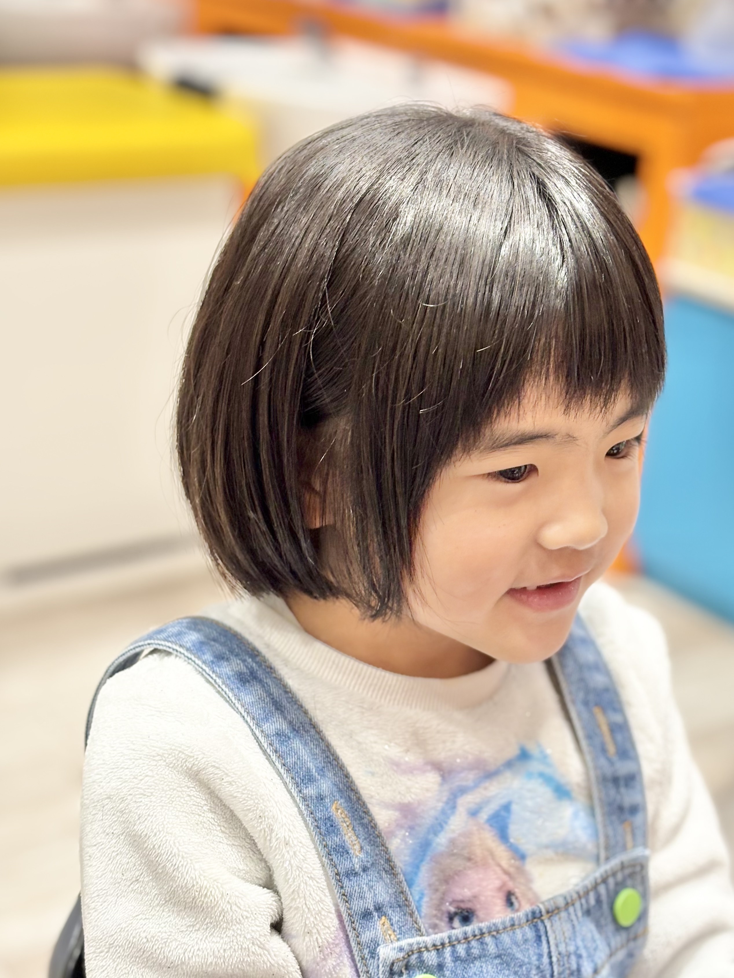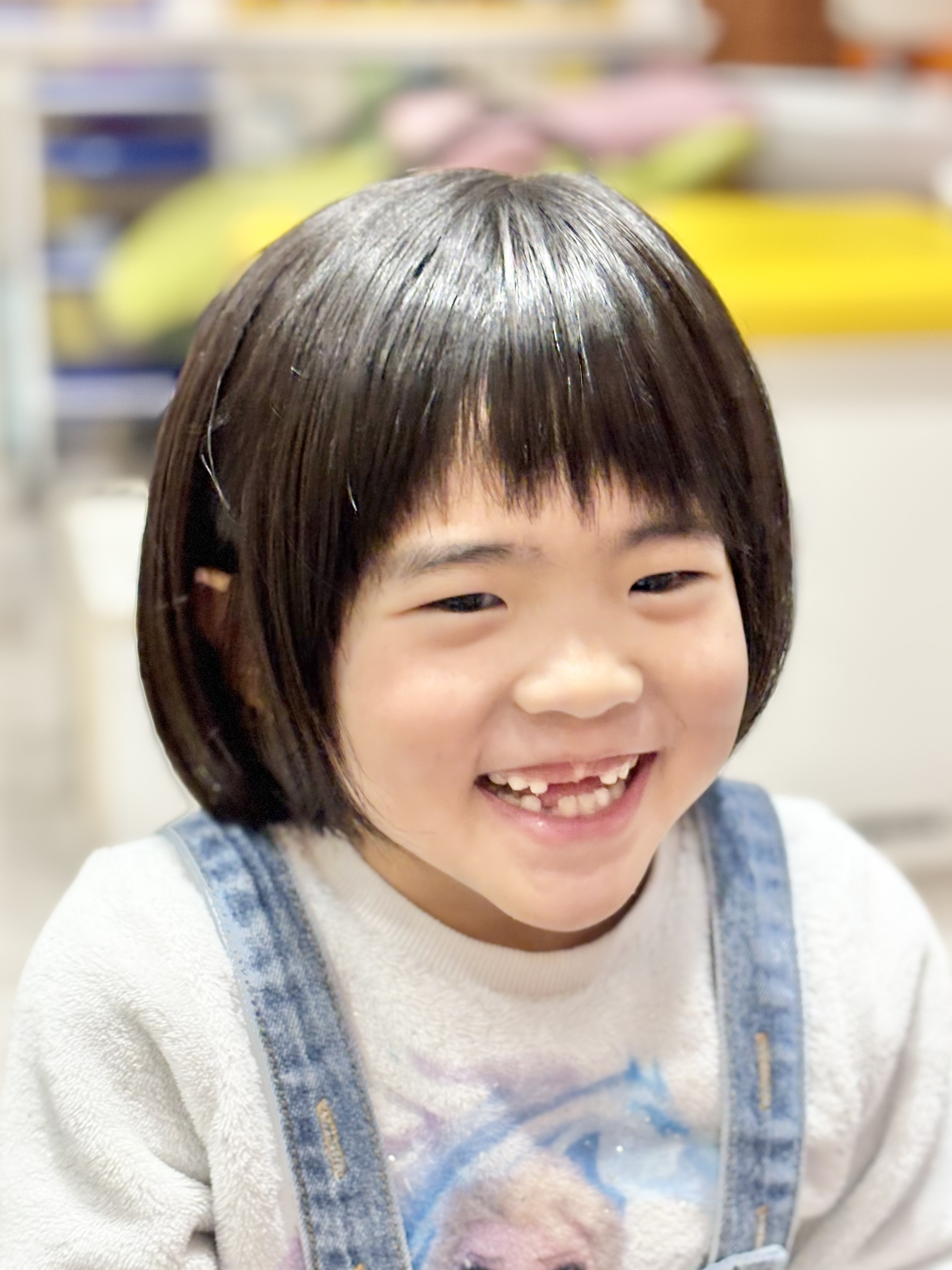 ちはるちゃん 6歳 大好きなキャラクターに近づきたくて、長かった髪をバッサリカット表情も生き生きして、とっても素敵な笑顔です お母様、お写真のご協力ありがとうございました。またのご来店をお待ちしております。