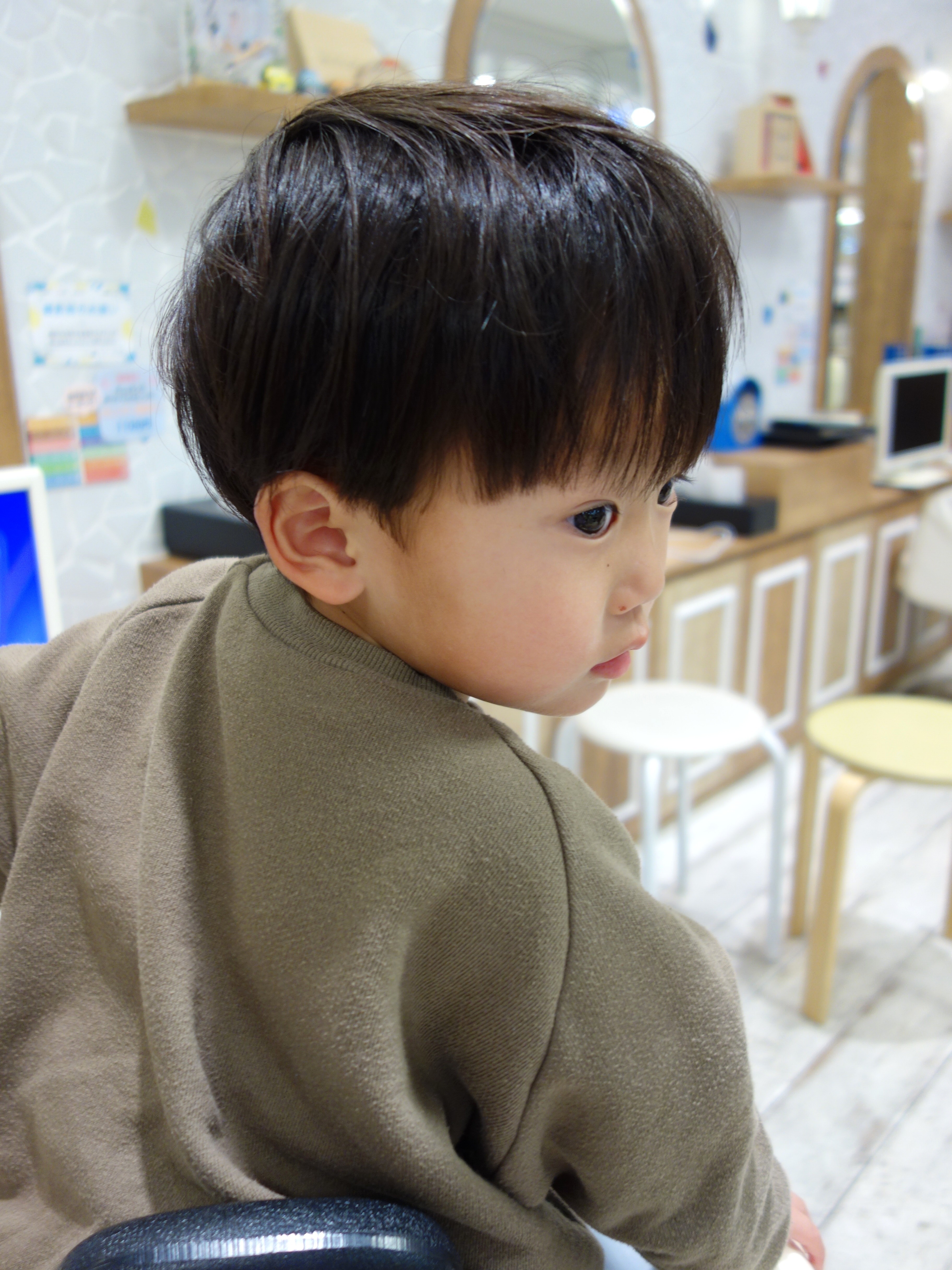 ☆しゆうくん 3歳☆今日が2回目のカットのしゆうくんドキドキしたけどとっても上手に出来ましたマッシュベースだけど内側はナチュラルにツーブロックにしてトップはふんわり、襟足は締めてスッキリたくさんお写真撮らせてくれてありがとうご協力いただきましたお父様お母様ありがとうございました。またのご利用をお待ちしております。