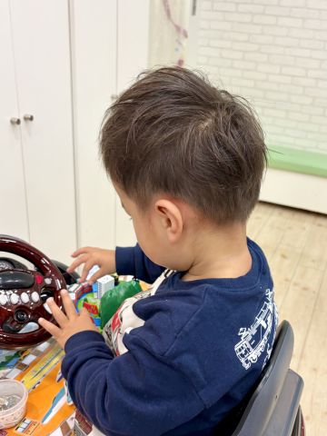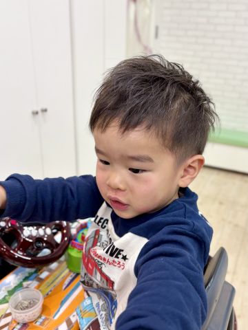 2歳男の子さん👦はじまるまではちょっとピンチでしたが、始まってしまえばとってもご機嫌さんでした!電車に大興奮で、ハイテンションにカットがんばれて、シャンプーも上手にできました✨お写真もたくさんポーズありがとうございます😊かわいくたくさん撮れました📷2ブロックのアクティブな感じがかっこかわいいです!ブログのご協力ありがとうございました😊