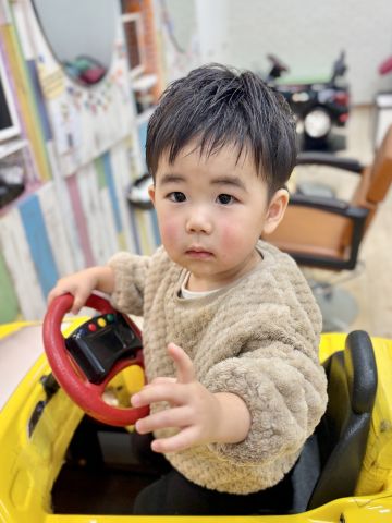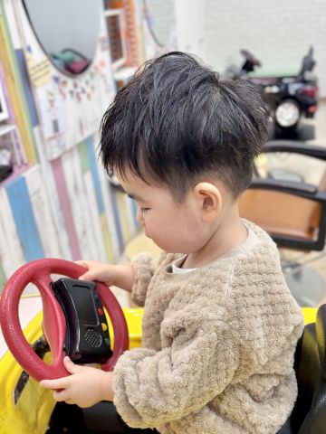りつきくん1歳👶初めてのチョッキンズに来てくれて、バッサリすっきりカットしました💇‍♂️💇‍♂️💇‍♂️たくさんカットして頭がちっちゃくなりました☺️車もおもちゃも大好きで、とっても楽しくカットできました😁2ブロックにレイヤーつけて、セニングで全体軽くして、しゅっとかっこいいスタイルになりました😊ブログご協力ありがとうございました😊