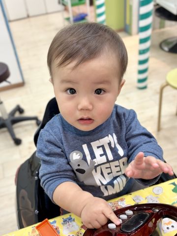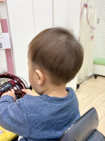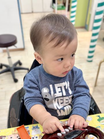 あおばくん1歳さん👶初めてカット!車乗るのは最初不安でしたが、お姉さんとたくさん遊びながら楽しくカットできました😊なんだかんだとても元気にニコニコでほんと良かったです✨おめめくりくりでとってもキュート🩷髪型はお兄ちゃんのファーストカットとお揃いで2ブロックに。すっきりしてかわいくなりました☺️ブログのご協力ありがとうございました😊