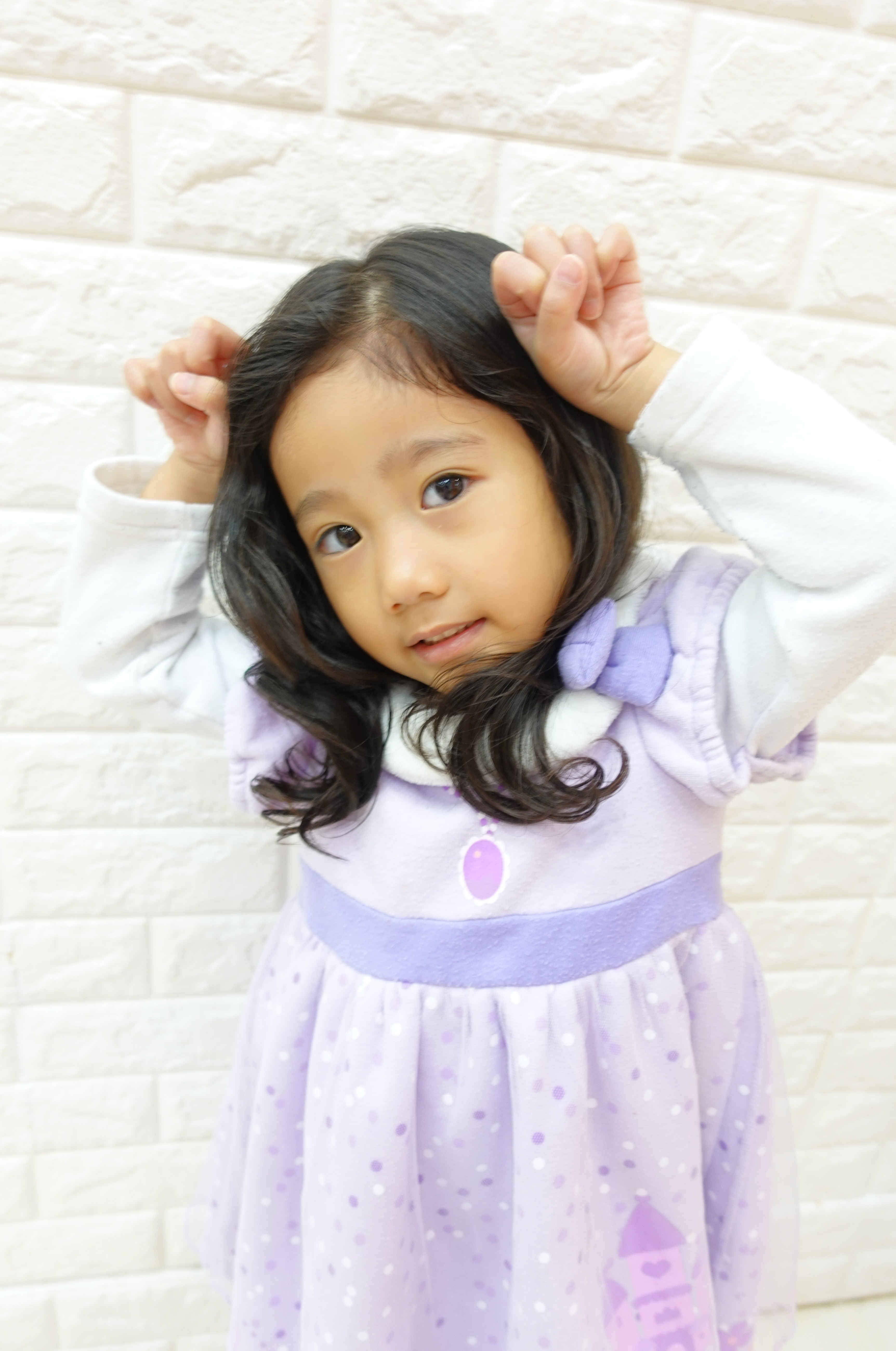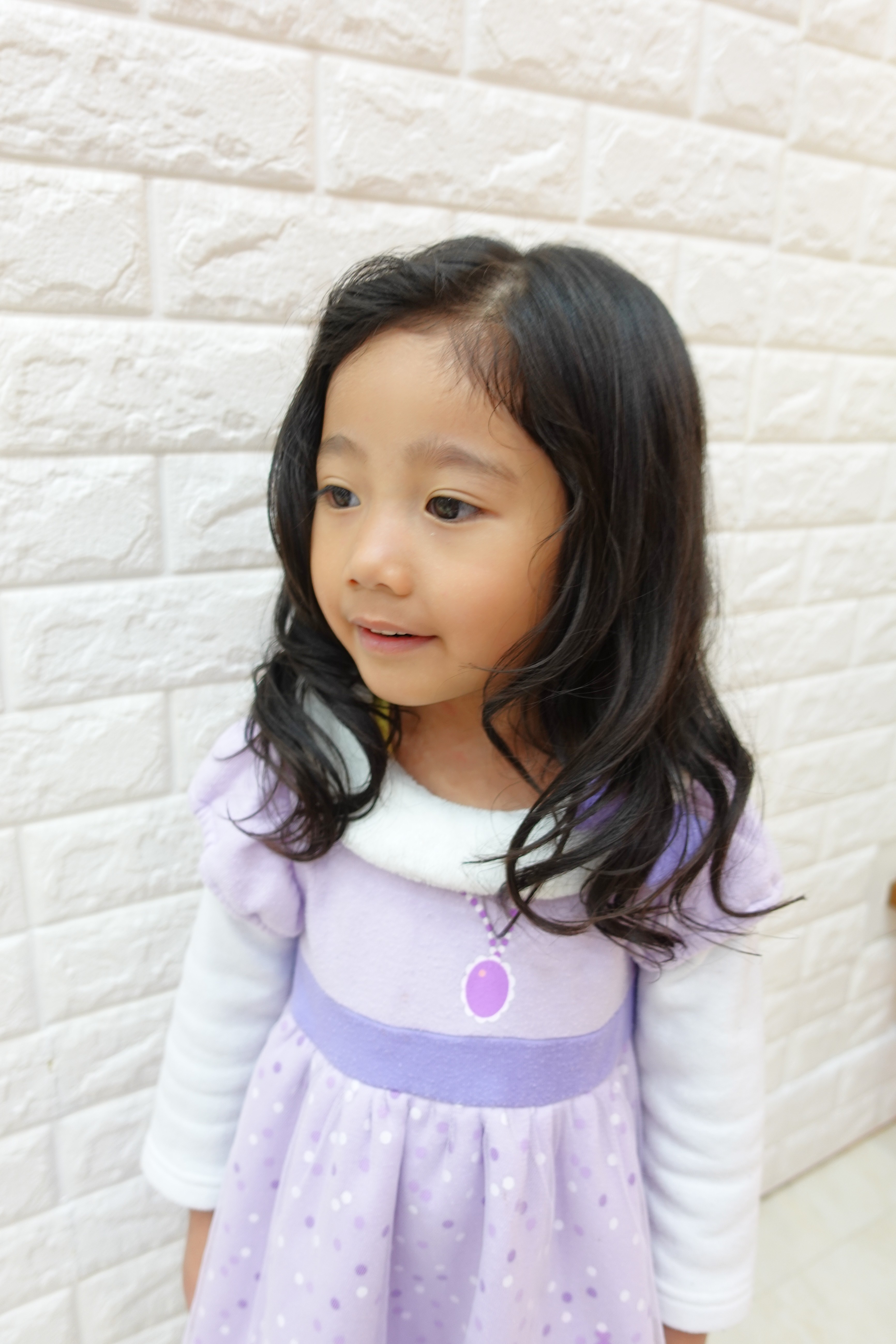 るなちゃん 4歳 毛先のくるんと可愛いくせ毛を生かしたロングスタイルフロントもくせに合わせて整えて巻き髪風のお姉さんに大人っぽキュートでお似合いですポーズもバッチリ可愛いっっお写真のご協力ありがとうございました