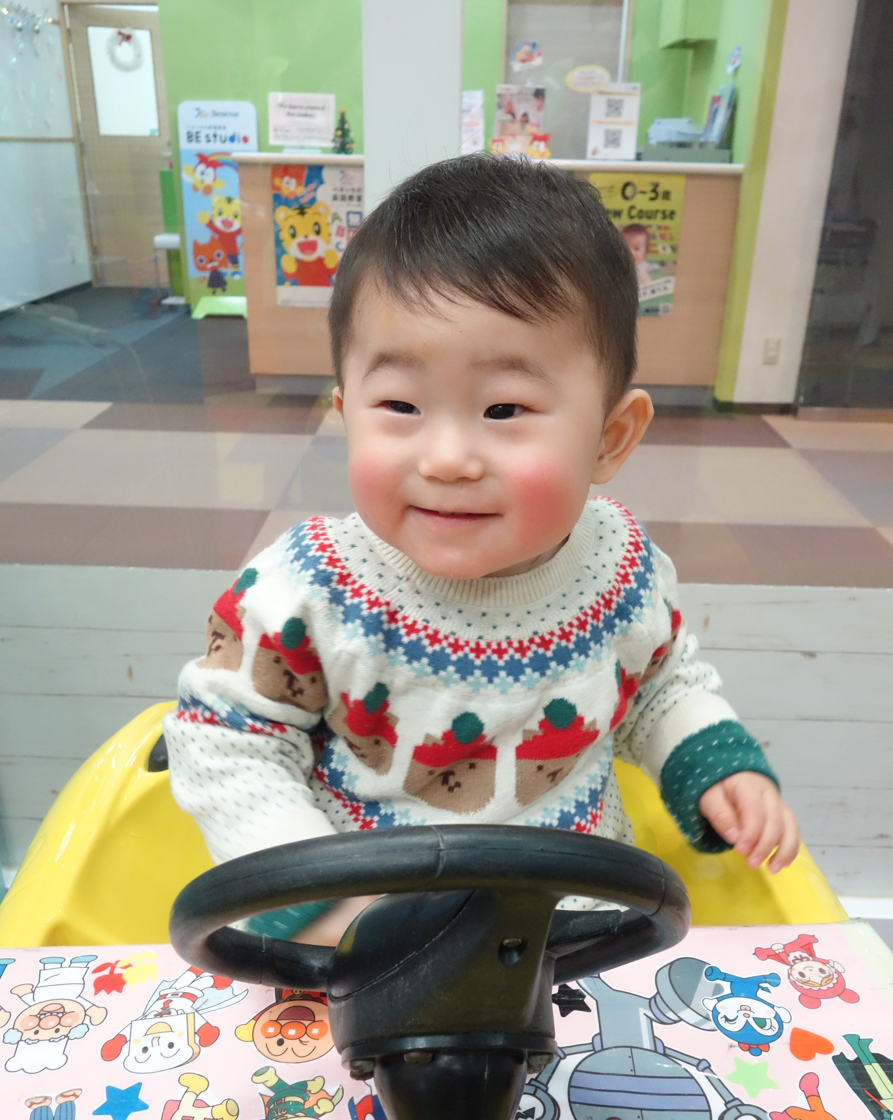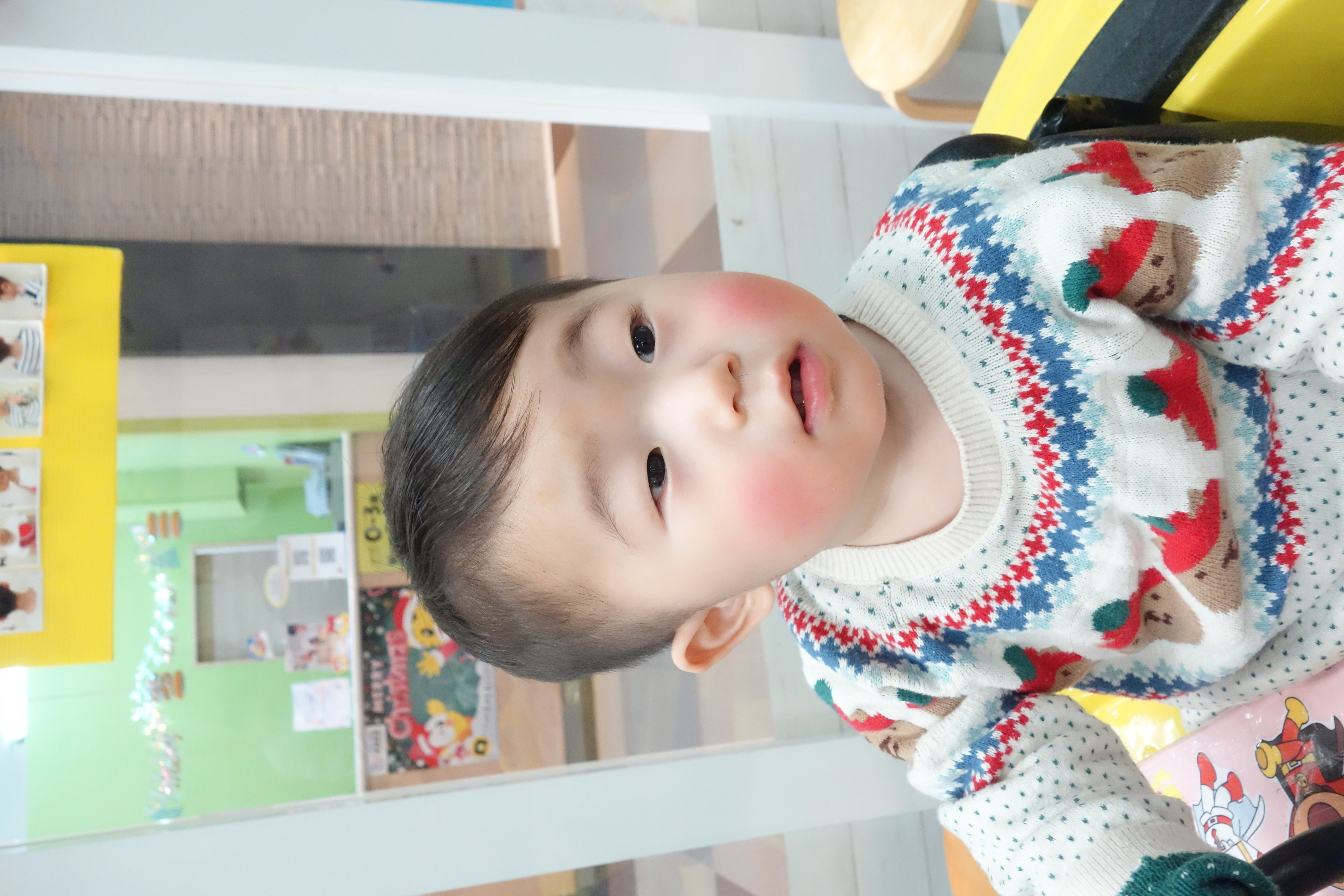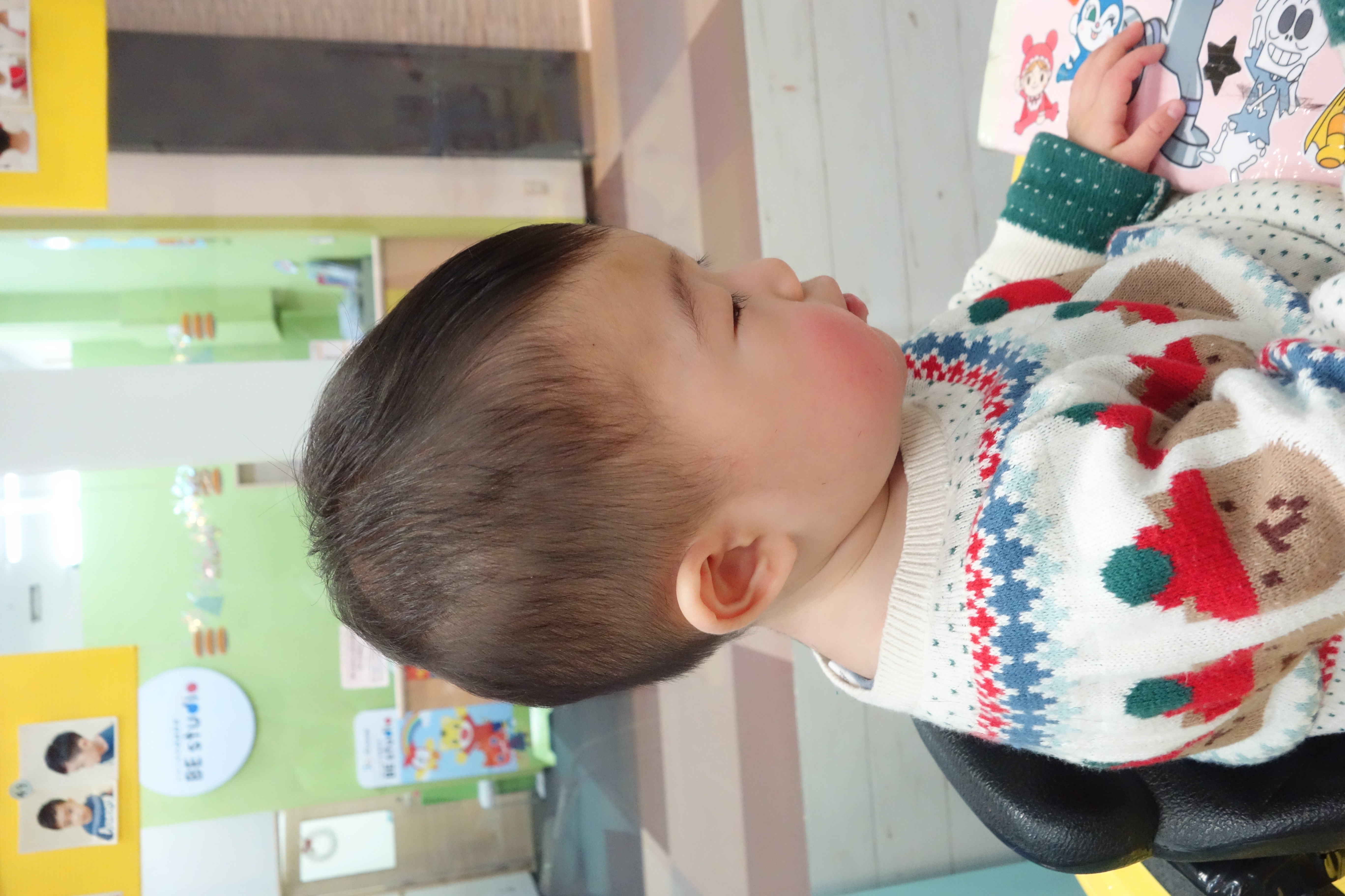 とうぎ君1歳初めてのチョッキンズ! ママは「泣いたらどうしよう~」😢そんな気持ちとはうらはらニコニコ😊時々アイコンタクトしてくれ👀12,6㎜ソフトモヒカンに仕上げましたとっても癒されましたお洋服もクリスマスコーデでキュート🎄🍰 ありがとうございました 撮影のご協力ありがとうございました