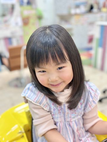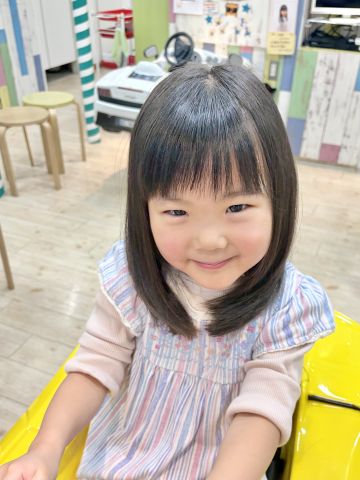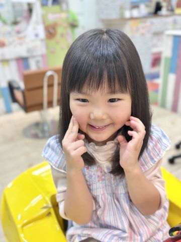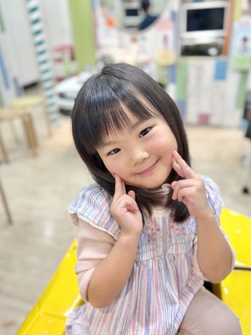 みおかちゃん3さいさん👧初めてのチョッキンズ、楽しみにしていたけど最初はとってもドキドキ😅でもすぐに慣れてくれて、お話ししながら上手にカットできました。すごい!本人の希望でおねえさんなミディアムにカットしました💇‍♀️肩甲骨上くらいの前上がりのミディアムスタイルです!フェイスラインもレイヤー入れて、内巻き感を強めてます😊かわいいお写真もたくさん撮れました!モデルさんありがとう😊ブログのご協力ありがとうございました!