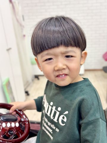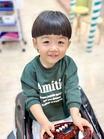 せなくん3さい🫡正面からみたらマッシュヘア、でも後ろは長い!可愛さと個性が溢れたスタイルです⭐️前と後ろで全然ちがいますね!😎初めてのチョッキンズ、とっても上手にカットさせてくれました!応援団もたくさんいてくれてよかったです😊ブログのご協力ありがとうございました!