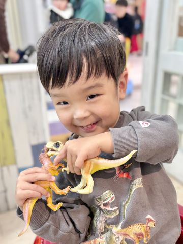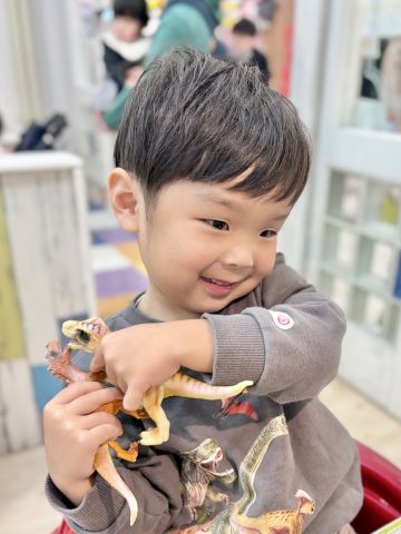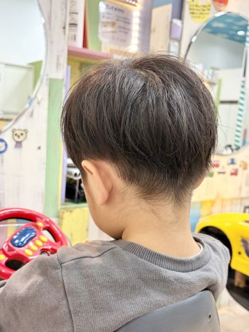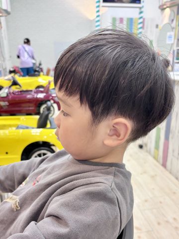 ゆうまくん3さい✨パパのご希望で可愛い感じのショートスタイルにカットしました💇カット中は恐竜に夢中でしたね🥰ほんと大好きみたいでずっと遊びながら恐竜🦕🦖のお話をしていました😊丸っこく可愛いシルエットのショートスタイルです!ゆうまくん、とっても上手さんでした!ブログのご協力もありがとうございました😊