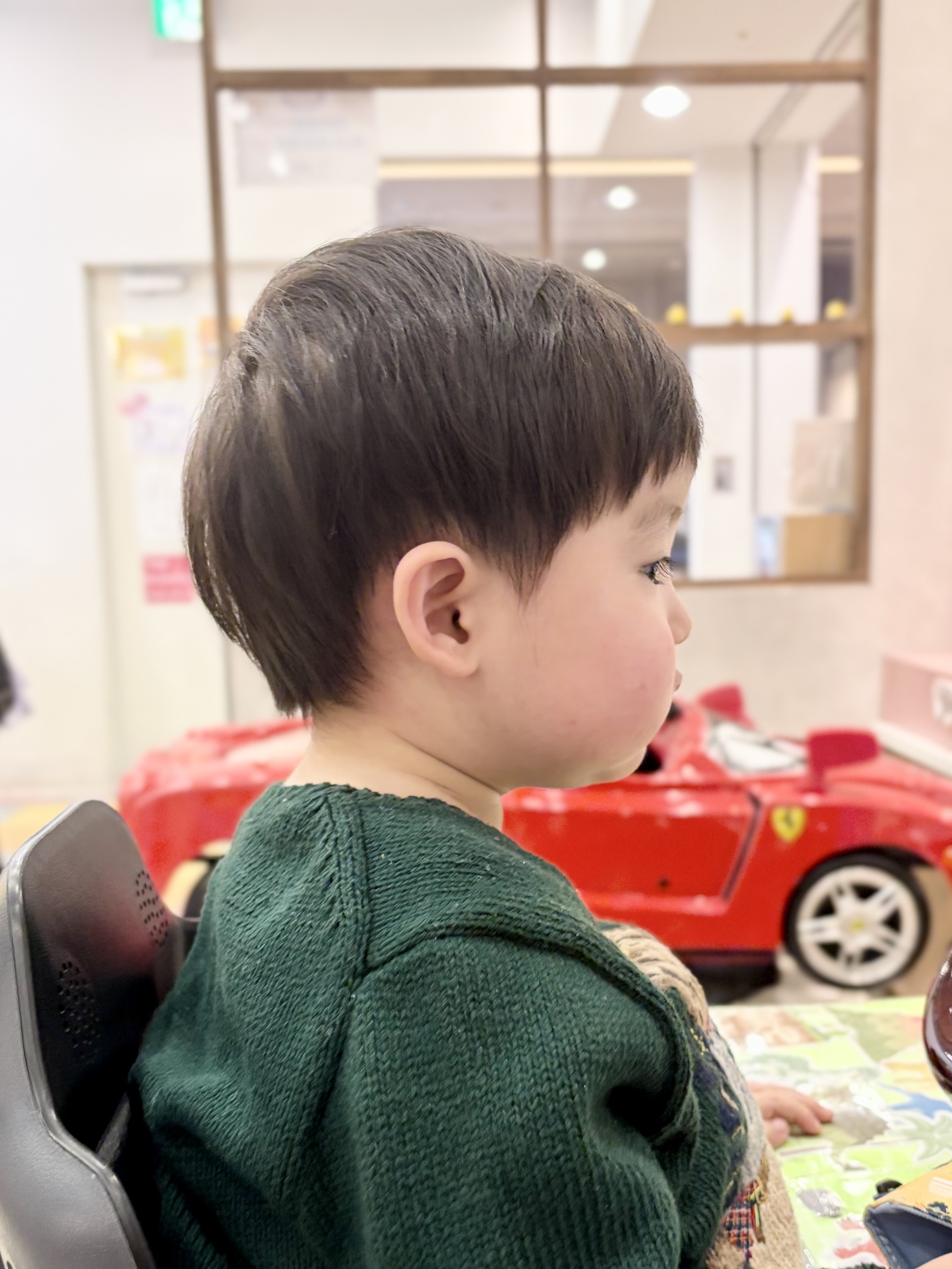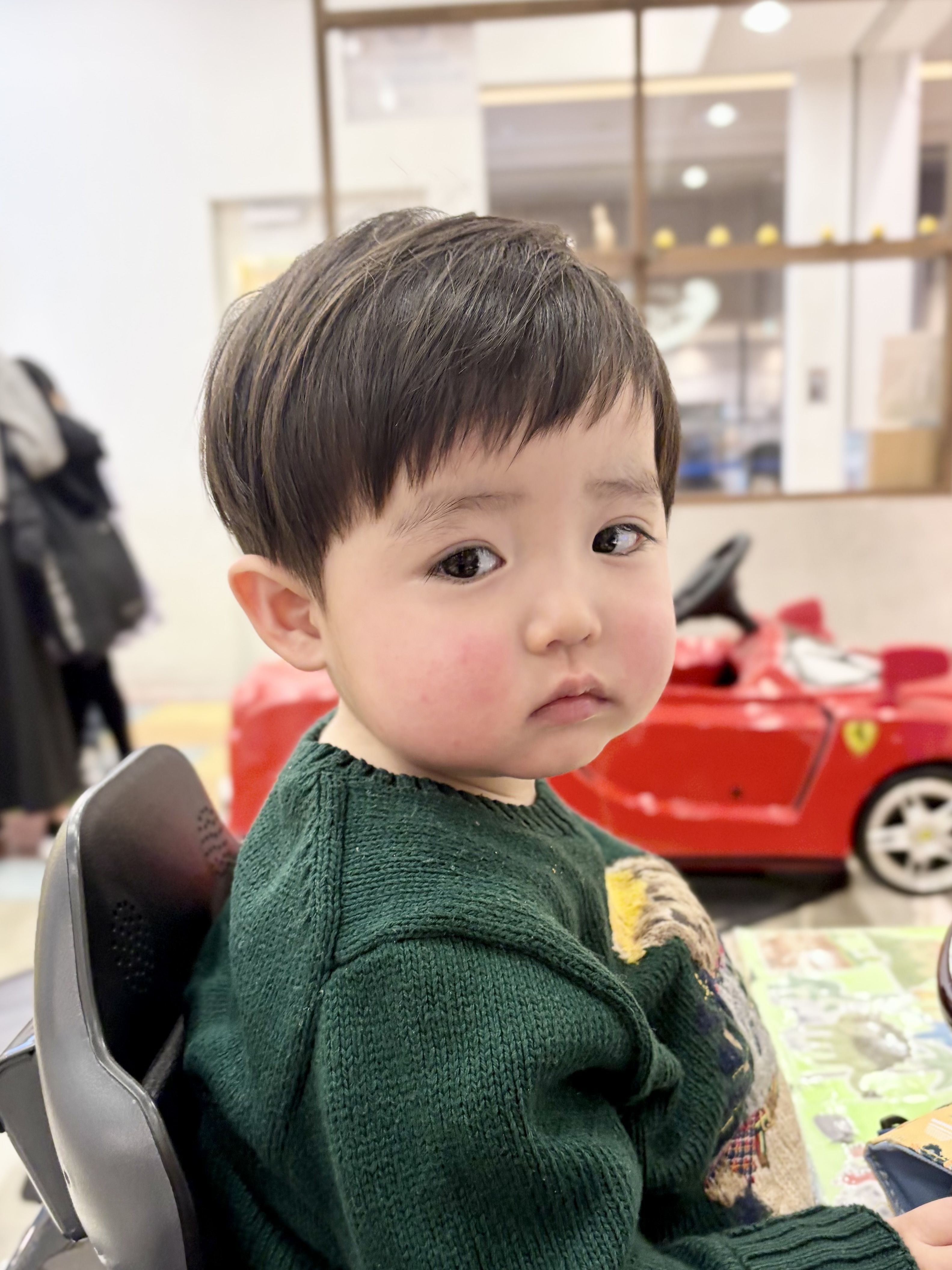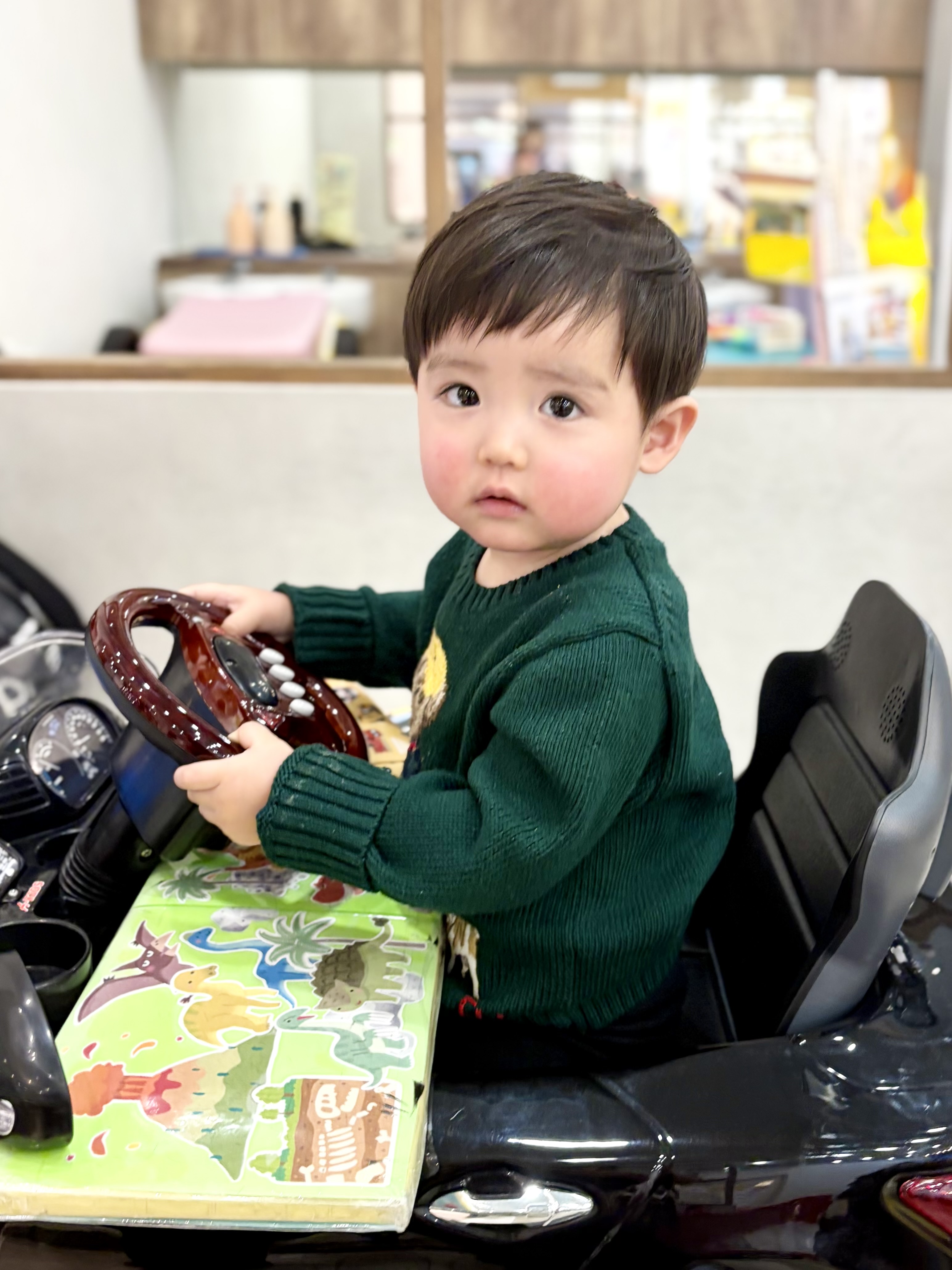 Hくん 1さい 初チョッキンに来てくれたHくんスタンダードな耳出しショートスタイルですレイヤーはほどほどに可愛らしさが残る丸っこさでカットしてます お話がとっても上手で、スタッフのお姉さんとたくさんお話してくれましたまだ言葉のつたない感じが可愛すぎて、終始『可愛い〜!!!』と声が漏れてしまうスタッフでした(笑)車大好きなHくん、運転姿も様になってますねちょっぴり遊び疲れちゃったかな??お眠なショットも、とっても可愛い たくさんの癒しを頂きました お写真のご協力、ありがとうございましたまた遊びにきてね