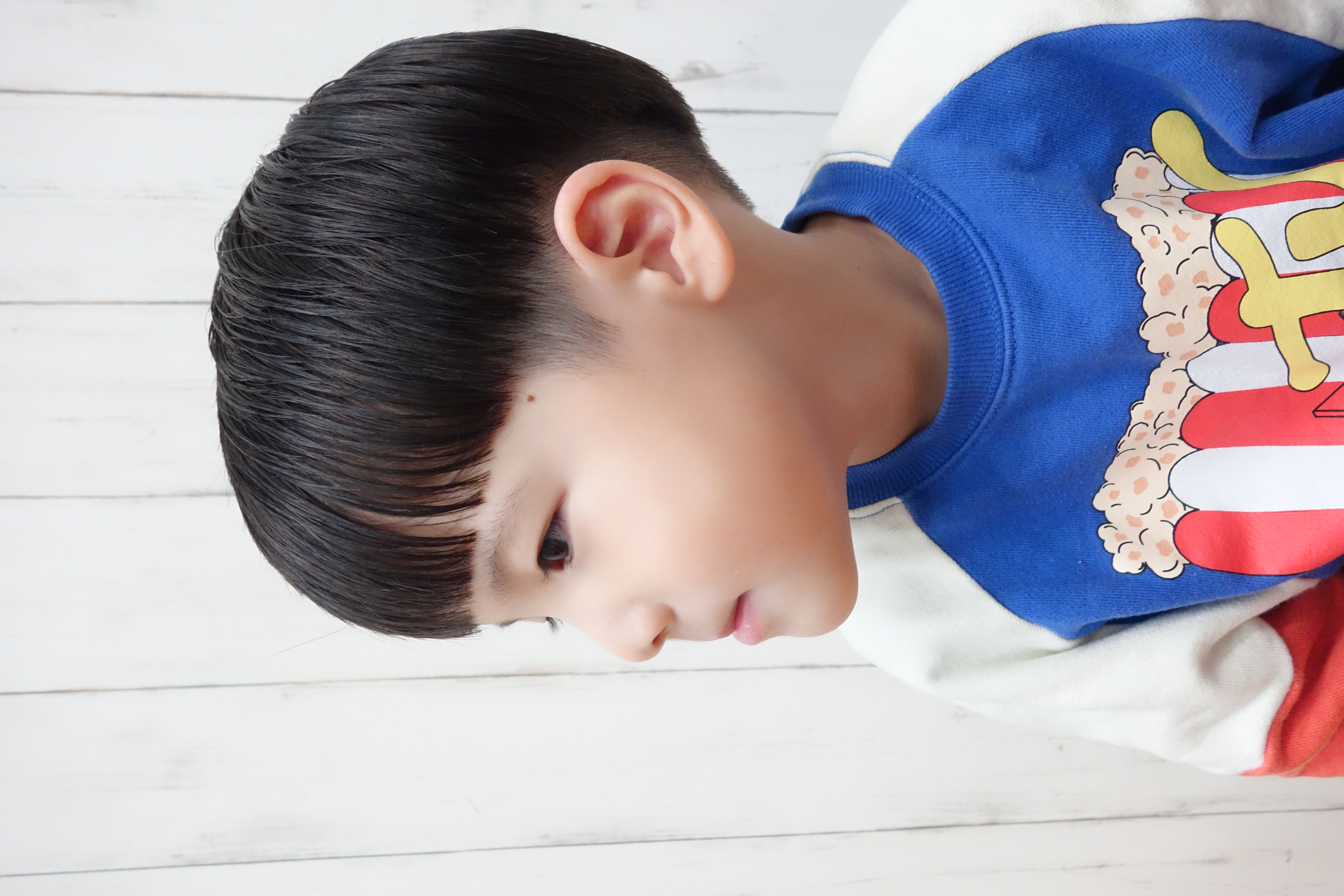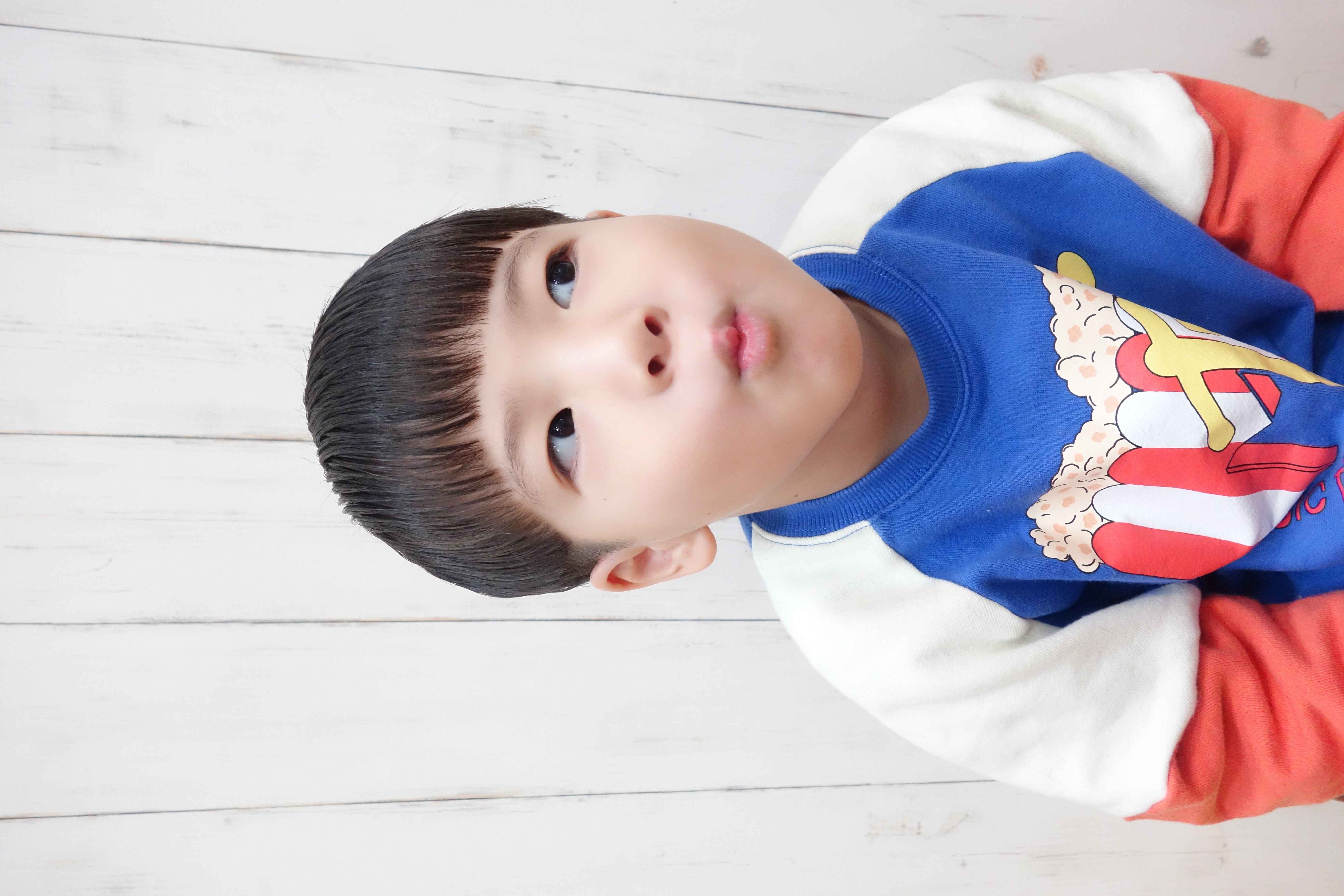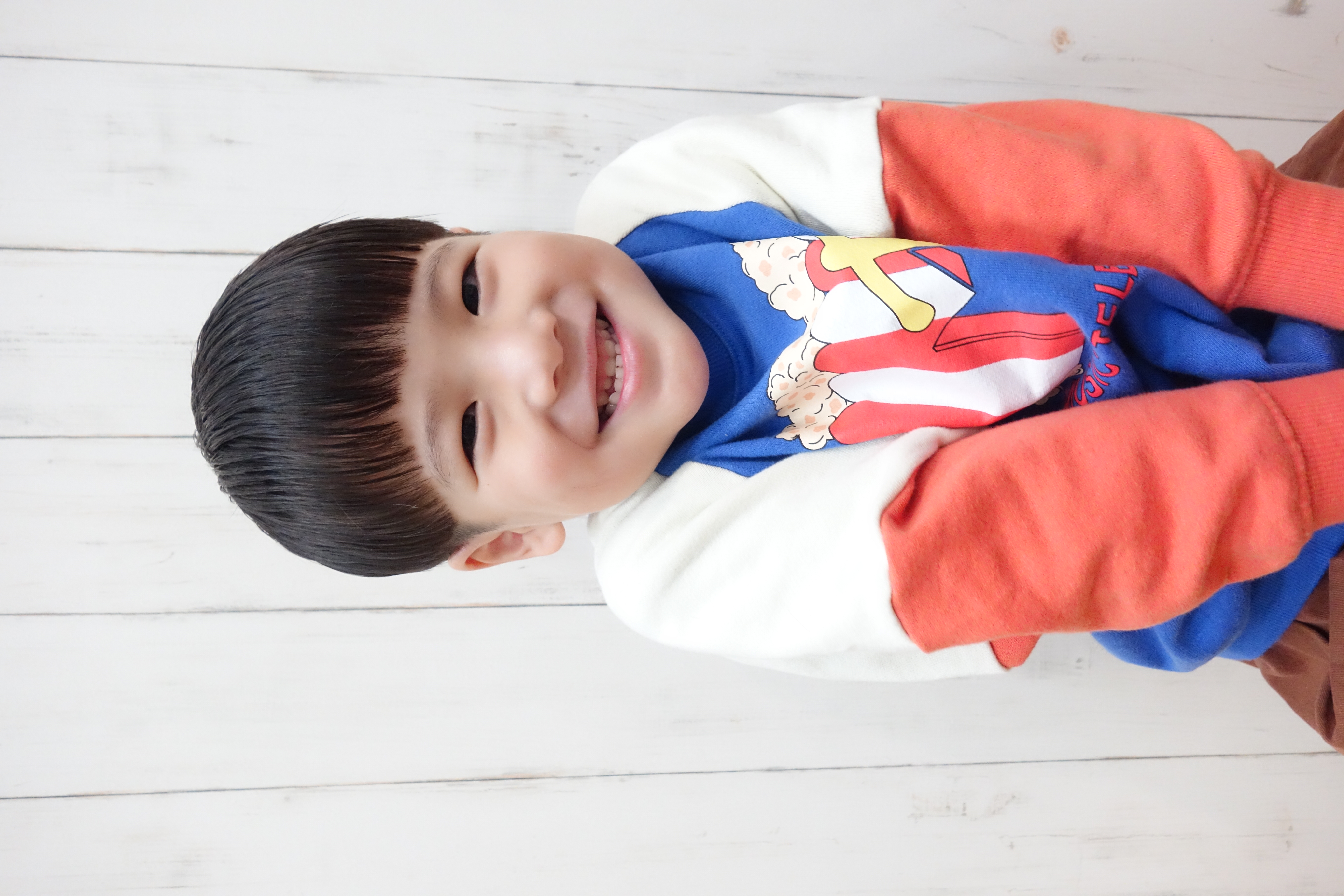 げんせい君 5歳 可愛い笑顔のげんせい君やっとモデルさんを頼めましたいつもタイミング合わず声かけれなかったけど、今日こそは!!「モデルさんお願いしてもいい?」「いいよ~」そんな感じでスタート ヘアースタイルもツーブロマッシュお勧めして、本人もお気に入りに とっても似合ってます ご協力ありがとうございました