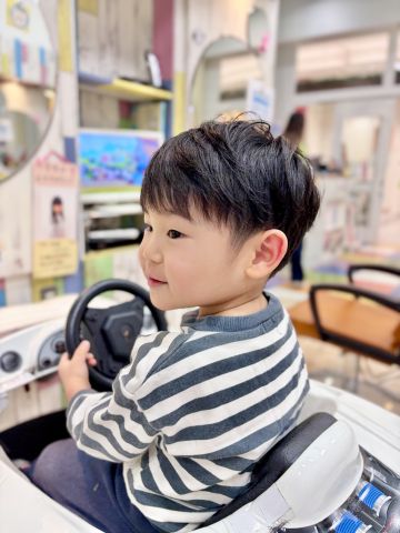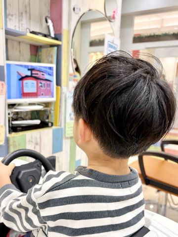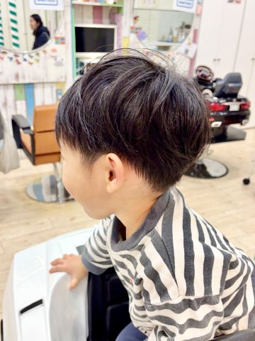 ともやくん3さい😊今日は自分で「かっこよくしてください!」とオーダーしてくれました!アイドルみたいにちょっと長めの2ブロックだけど、周りはすっきりさせました💇ご機嫌でお写真まで撮らせてくれてありがとう😄トップや前髪は長めでイマドキな雰囲気にしてあります!ナチュラルなマッシュヘアを軽くしてかっこよく!いろんなお子様におすすめなスタイルです!ブログのご協力ありがとうございました😊