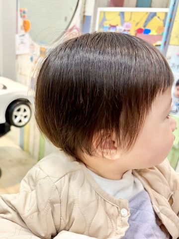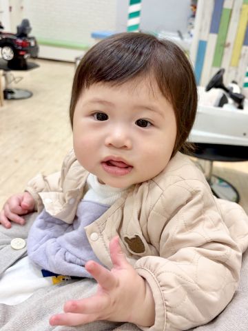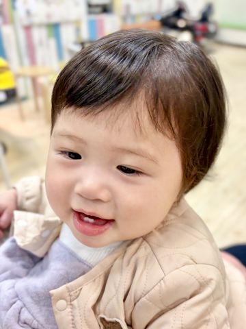 さやちゃん0さいさん🐥初めてのちょっきんできてくれました✨とってもご機嫌さんでにこにこでよかったです😄全体ととのえてかわいーくなりました!前髪も短くしてすっきりしました🌸生えはじめた小さな歯がまたかわいいです😍とっても上手にできてよかったです!ブログのご協力ありがとうございました😊