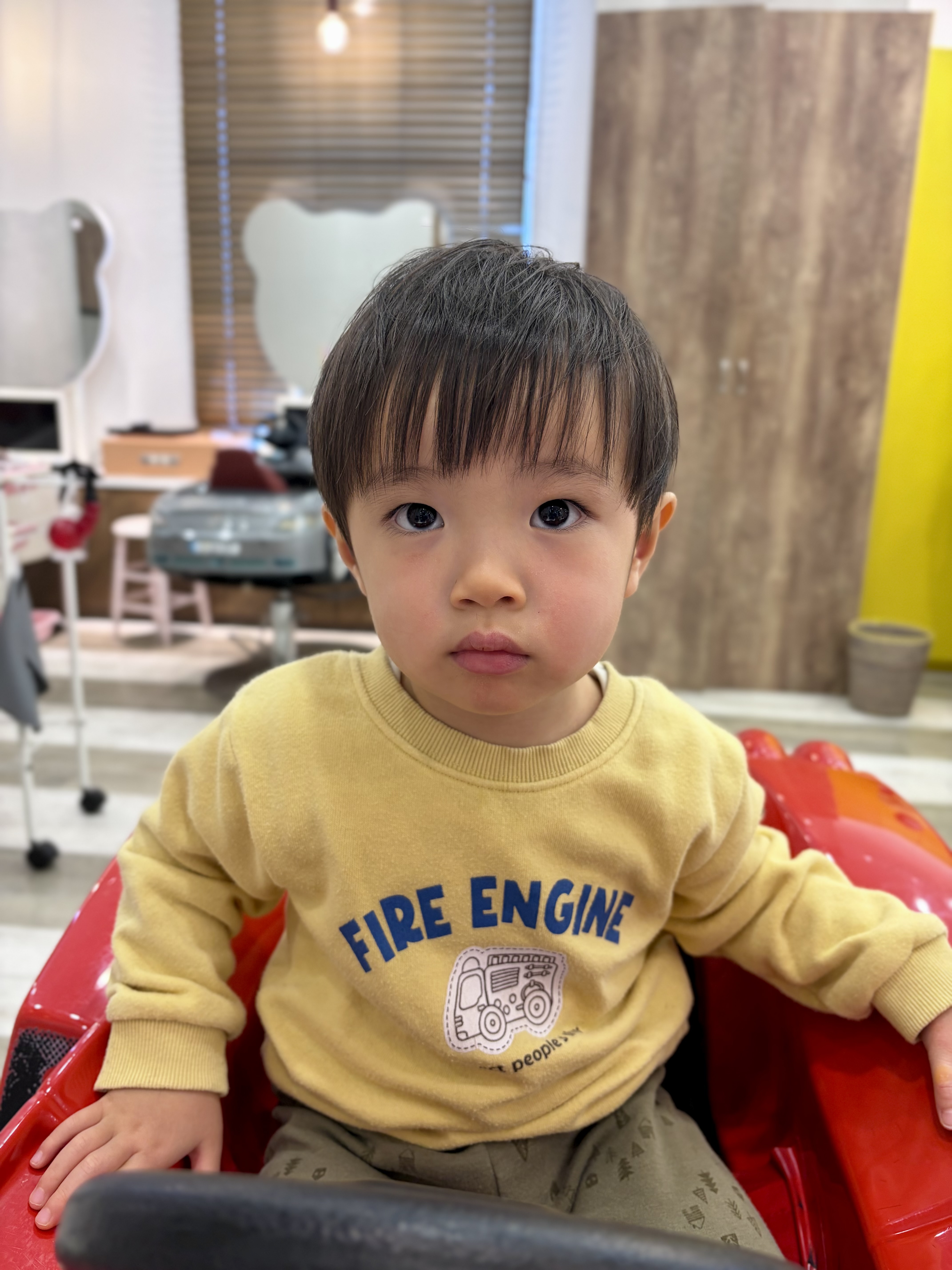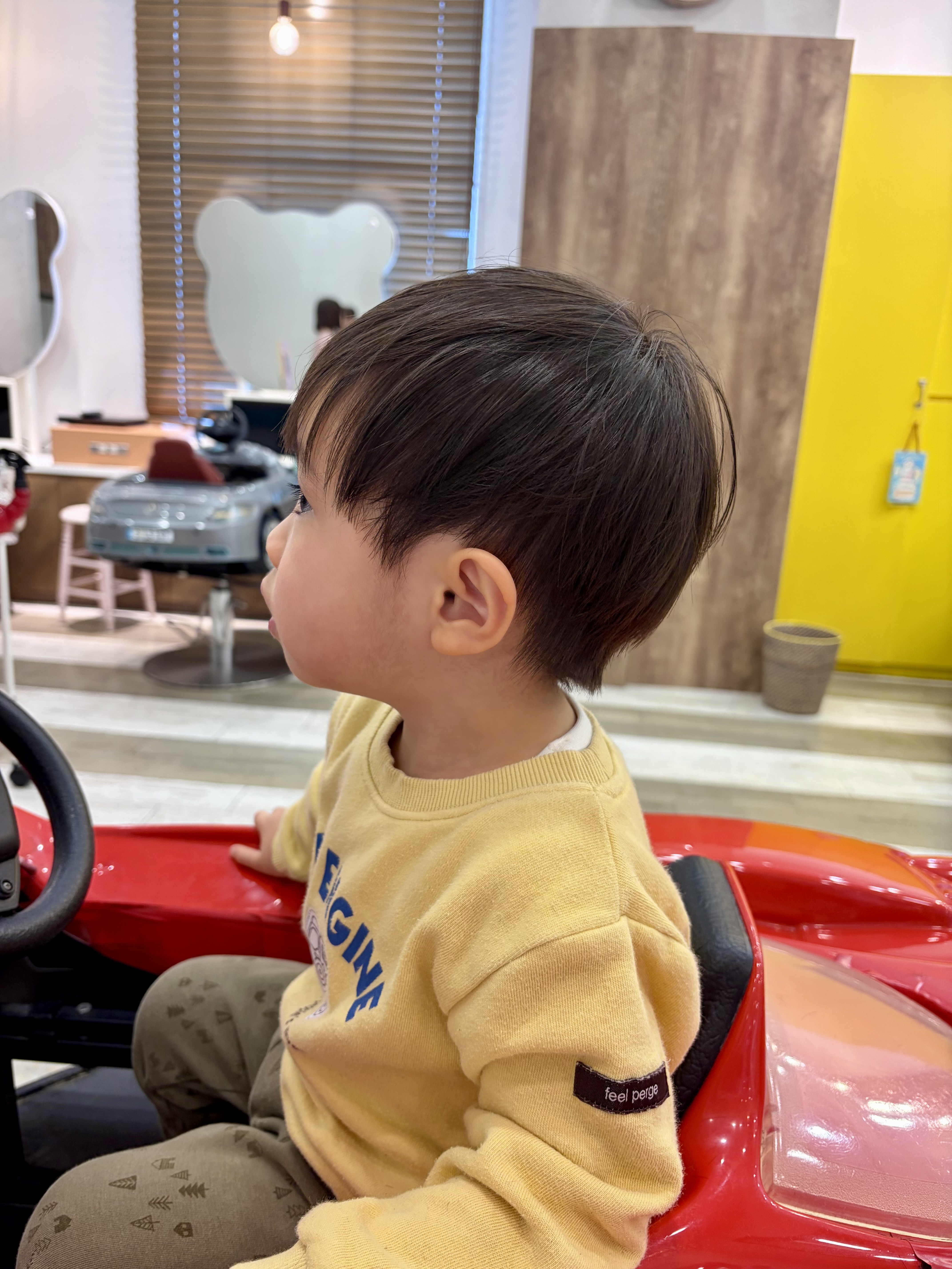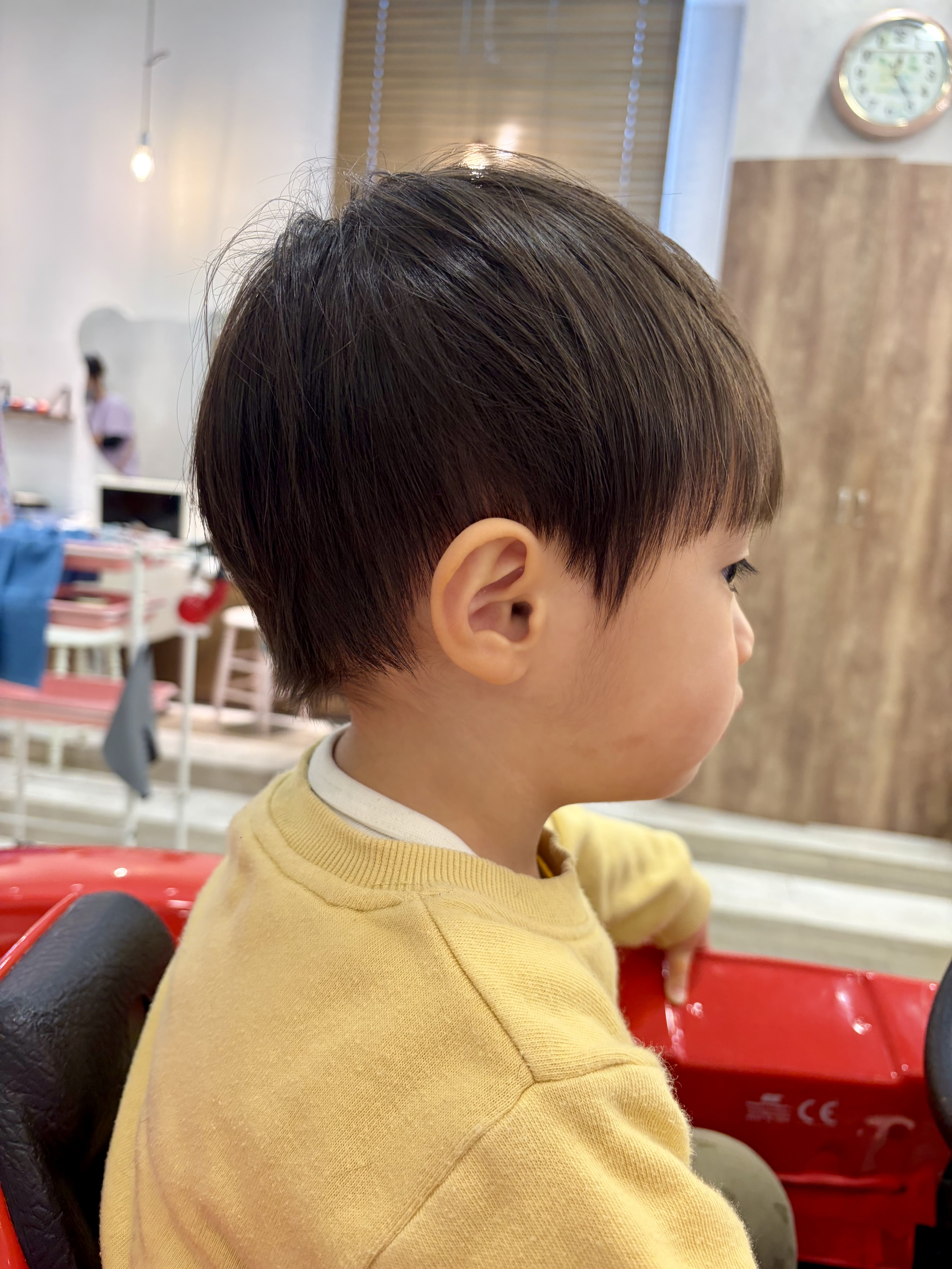 ☆ けんとくん 2さい ☆ お耳を出した柔らかいフォルムのスタイルです(*^^*)長めにしたいけど、短くしたいな...の間を取ったスタイルです☆ 前髪はまゆげ半分くらいの長さにしました。 けんとくん、最初から最後まで車に乗って上手に切れました✂♡ お写真ご協力ありがとうございました♪ またチョキチョキ待ってます(*^_^*)