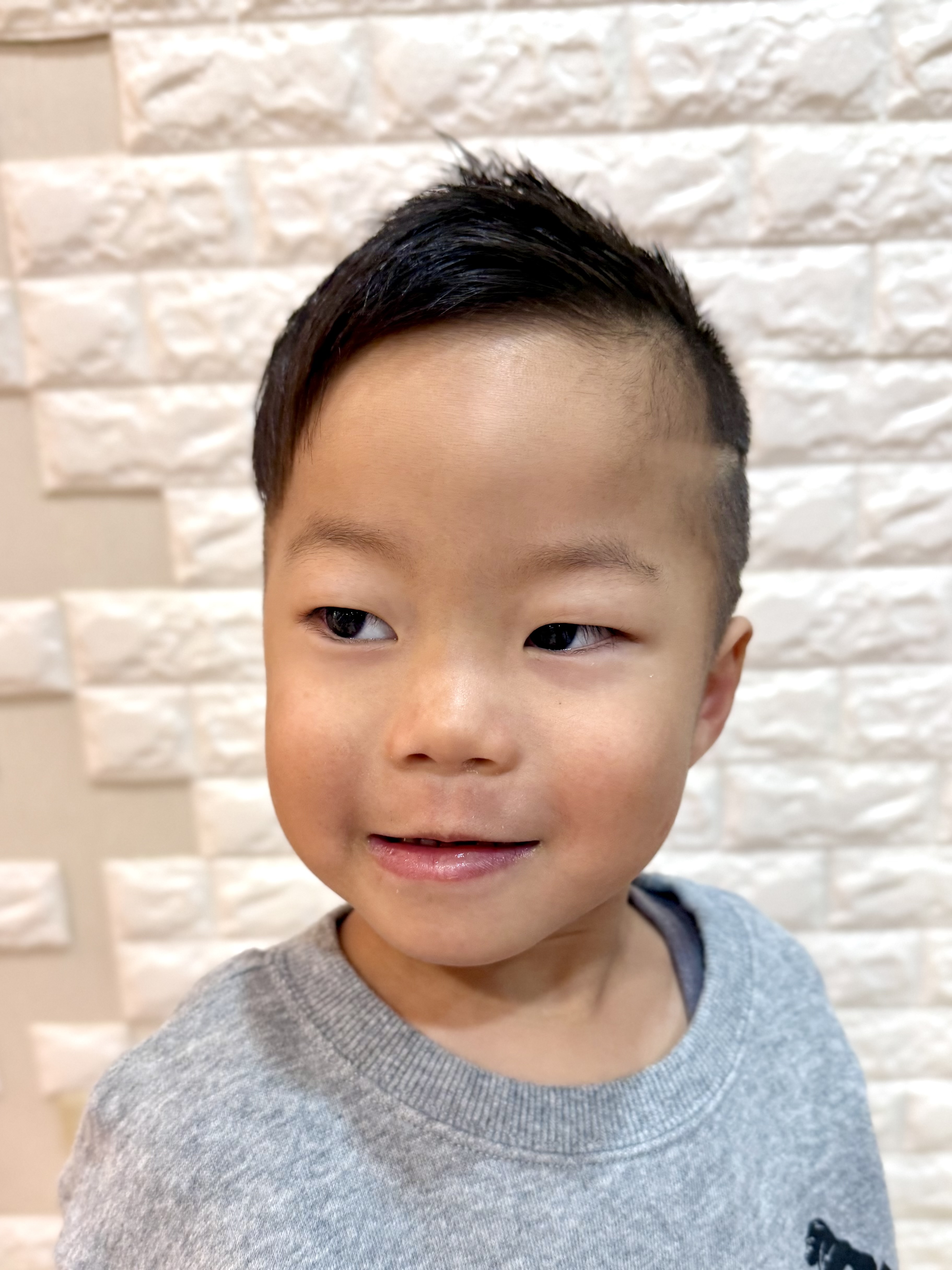 ☆かいる君 3歳☆いつも短くかっこいいかいる君♡今日も短めのアシメスタイル♪左側には稲妻のラインでさらにかっこよく変身ですいっぱいお話もしてくれてありがとうまた会えるのを楽しみにしていますご協力ありがとうございました!