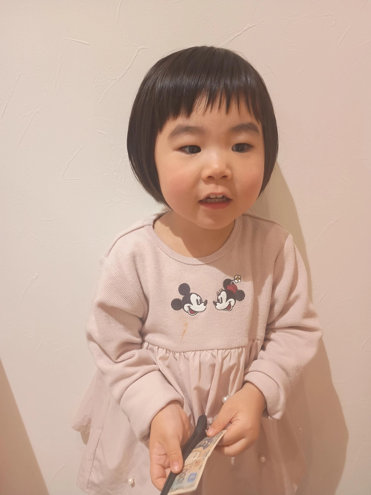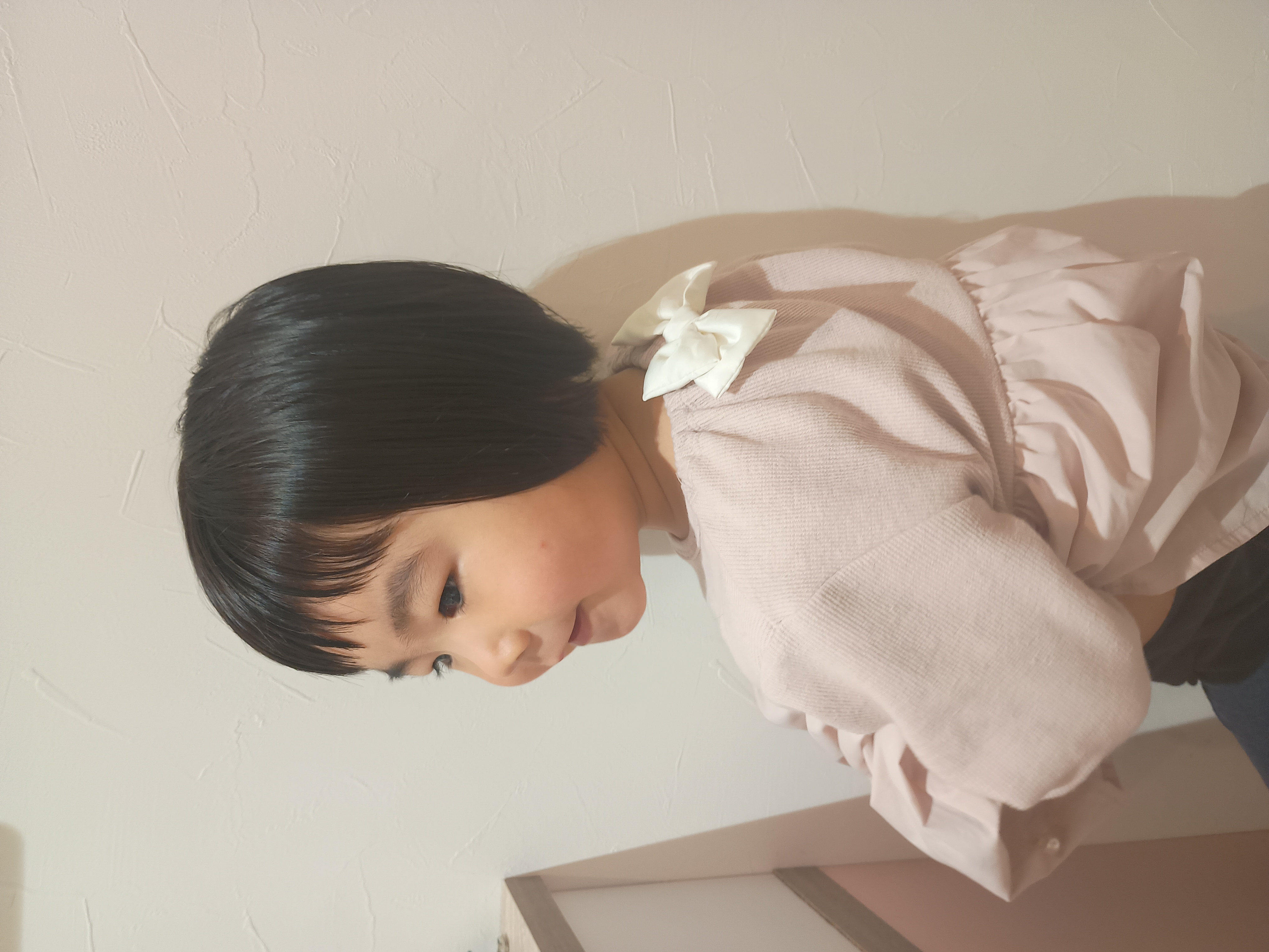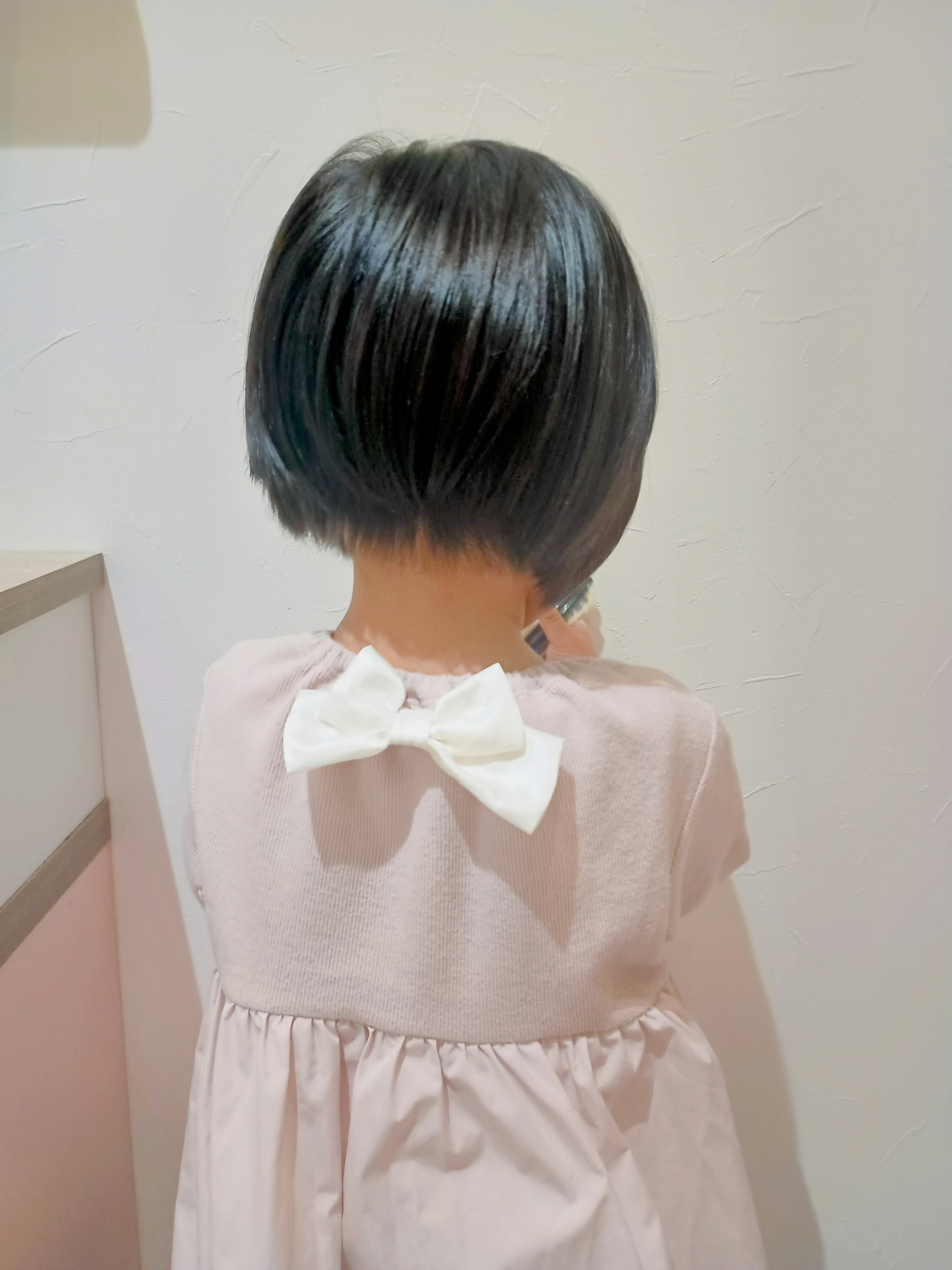 3歳 女の子 肩くらいからバッサリと、リップラインのショートボブにしました前髪はおでこ半分くらいまでしっかり切って全体的に軽くして束感を作れるように仕上げました モデルのご協力ありがとうございますまたのご来店お待ちしております