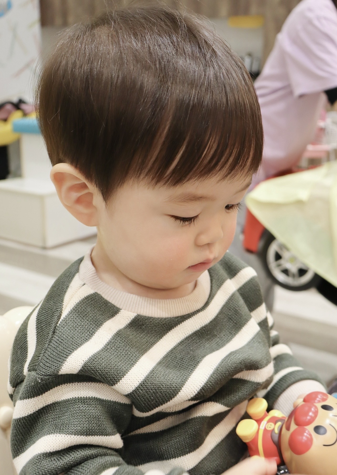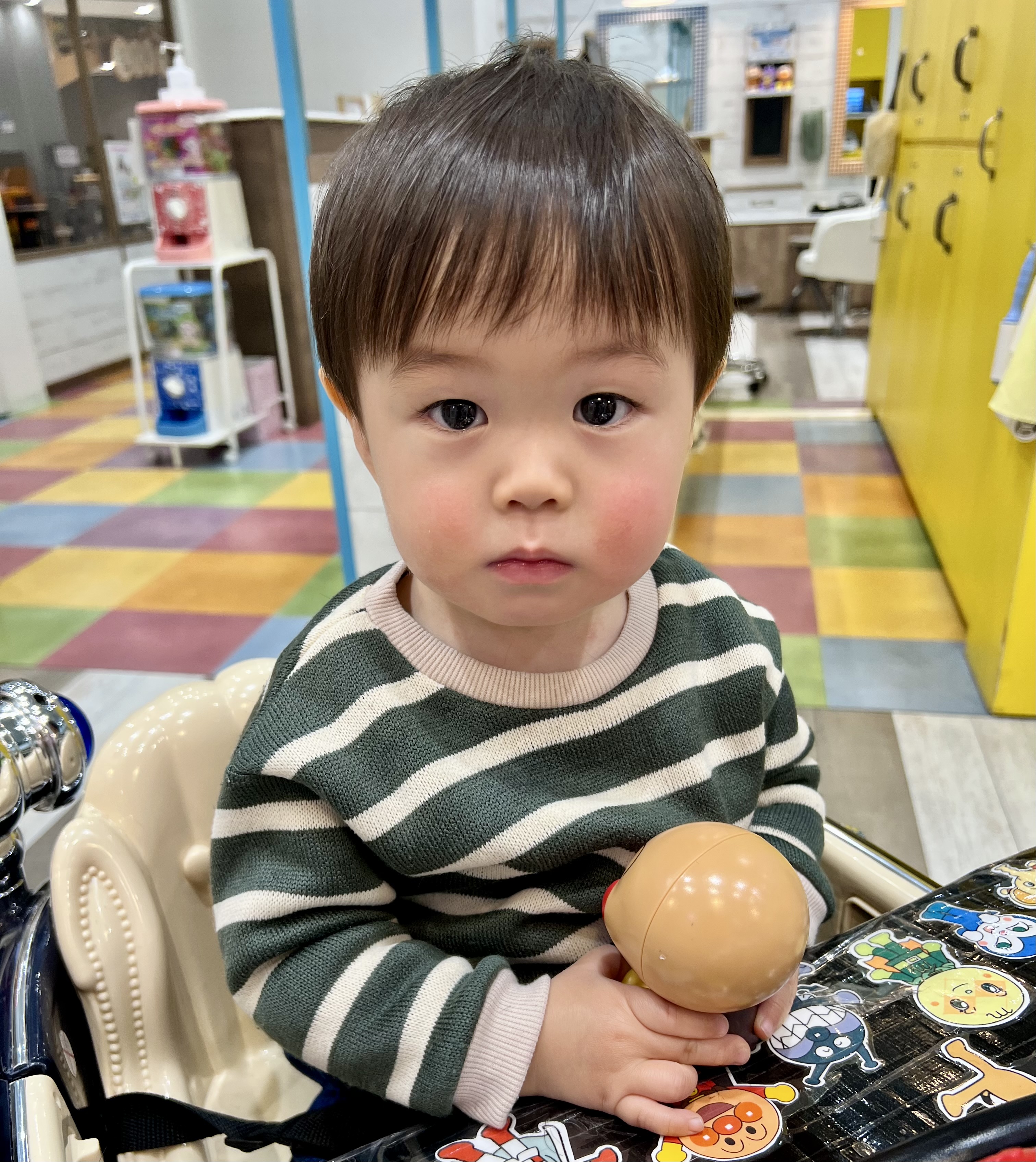 いぶきくん 1歳 ファーストカットに来てくれた、いぶきくんお姉ちゃんと一緒にチョキチョキしました✂️初めてとは思えないほどおりこうさんでとっても上手にカットできました お耳を出したナチュラルなショートスタイルですワックスなどは付けずに自然にお仕上げしました🌱 とっても可愛いです お写真のご協力ありがとうございました🙏またお待ちしております🙇‍♀️