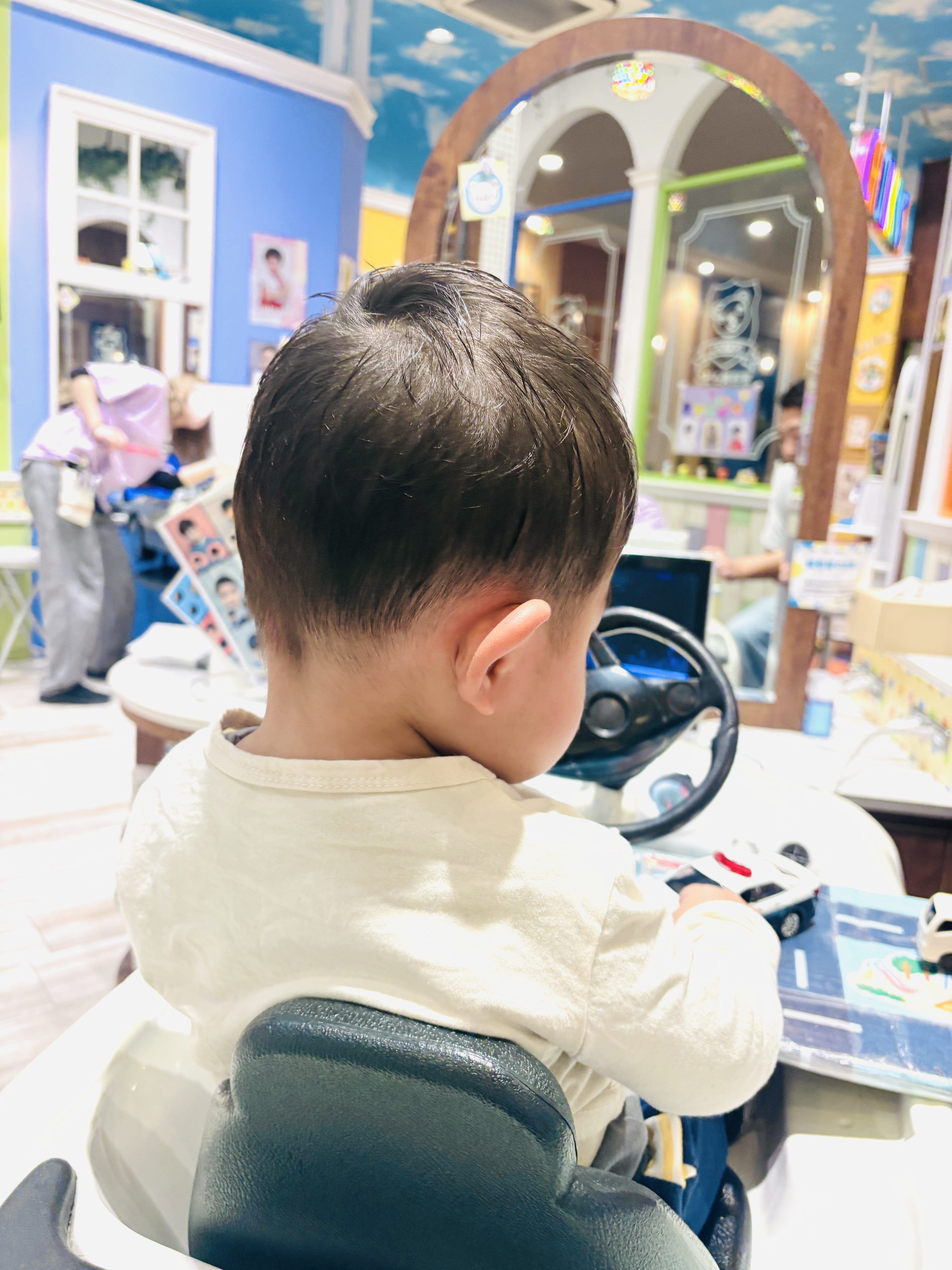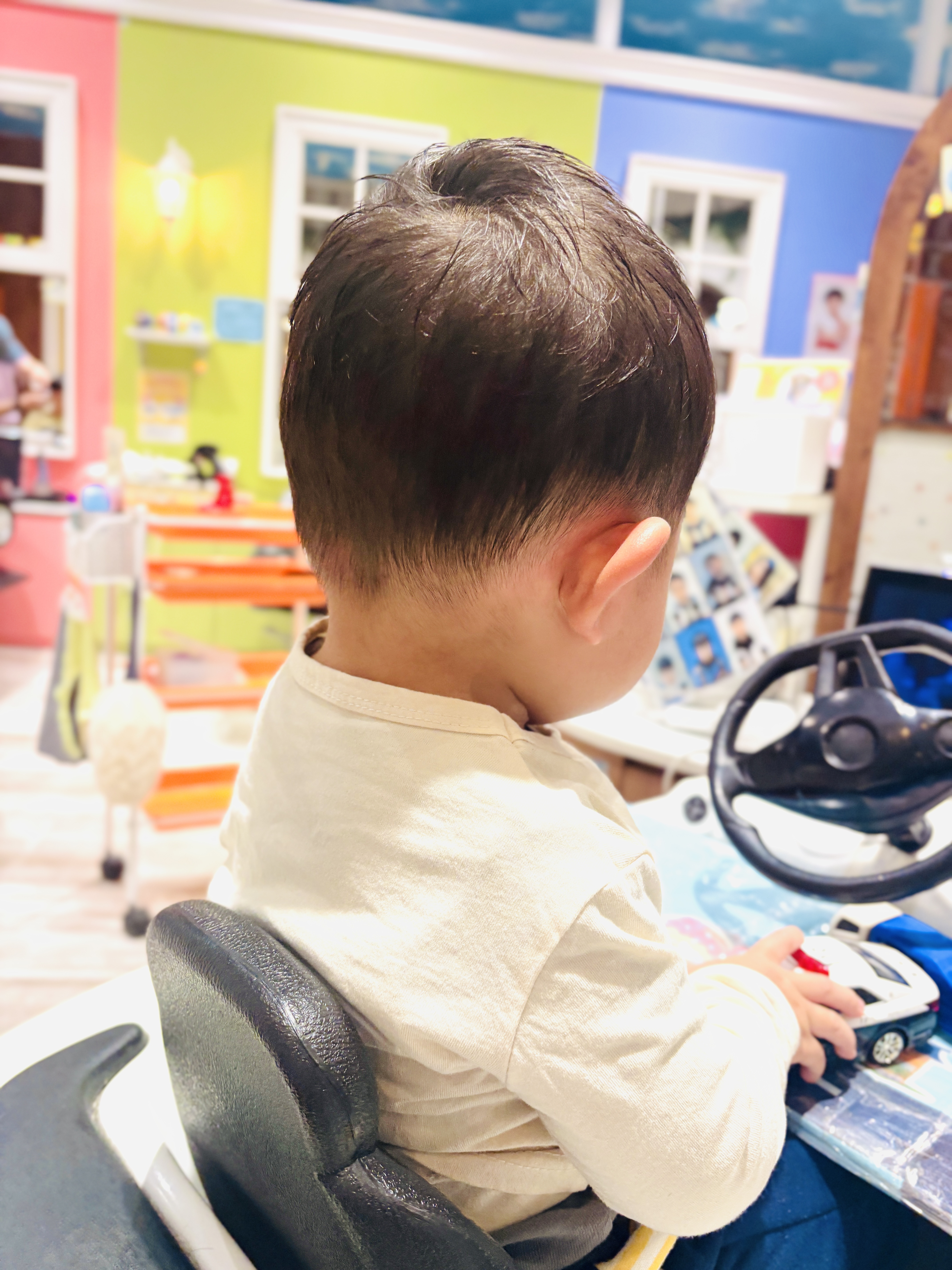 いってつくん 1歳 初めてのカットにご来店いただいた、いってつくん短くサッパリとのオーダーを頂き、サイドや後ろを12mm〜6mmでバリカンを入れさせていただき、短くスッキリとさせて頂きました前髪も伸びてきてもすぐに目に入らないよう、おでこの半分くらいでカットし自然に下ろしたり、ナナメに流したりできるようにしました お父様・お母様、お写真のご協力ありがとうございましたまたのご来店を心よりお待ちしております