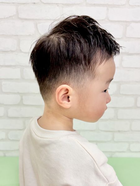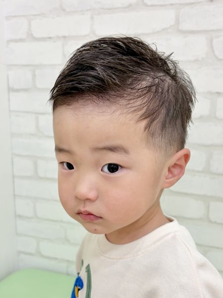あさひくん2さい☀️とってもカット上手なあさひくんがきてくれました😊フェードというたくさんバリカンを使うスタイルでしたが、楽しくがんばってくれました✨さっぱり短くなってかっこよくなりました😎トップは流れがつくくらいの長さを残しています。ブログのご協力ありがとうございました😊