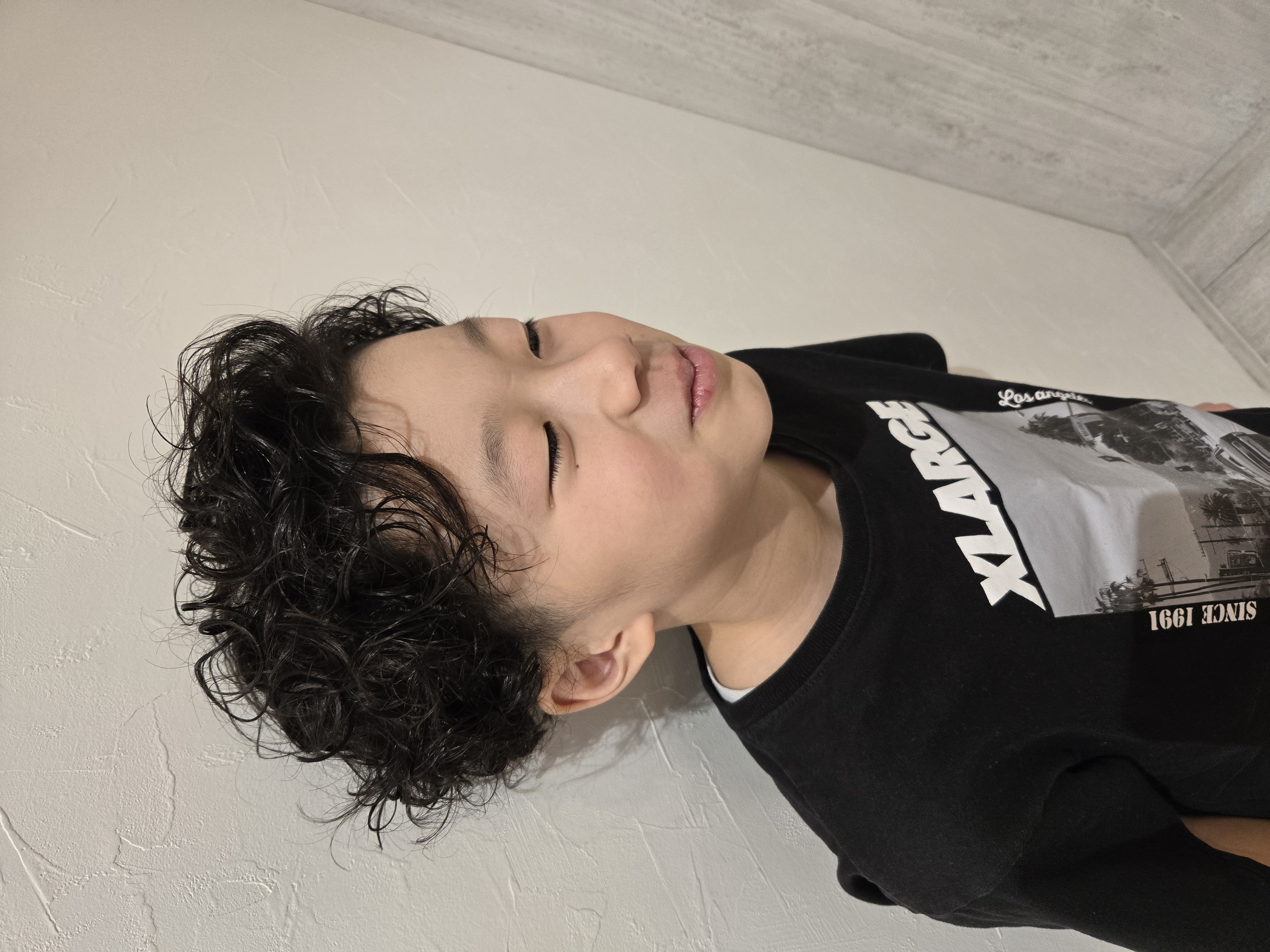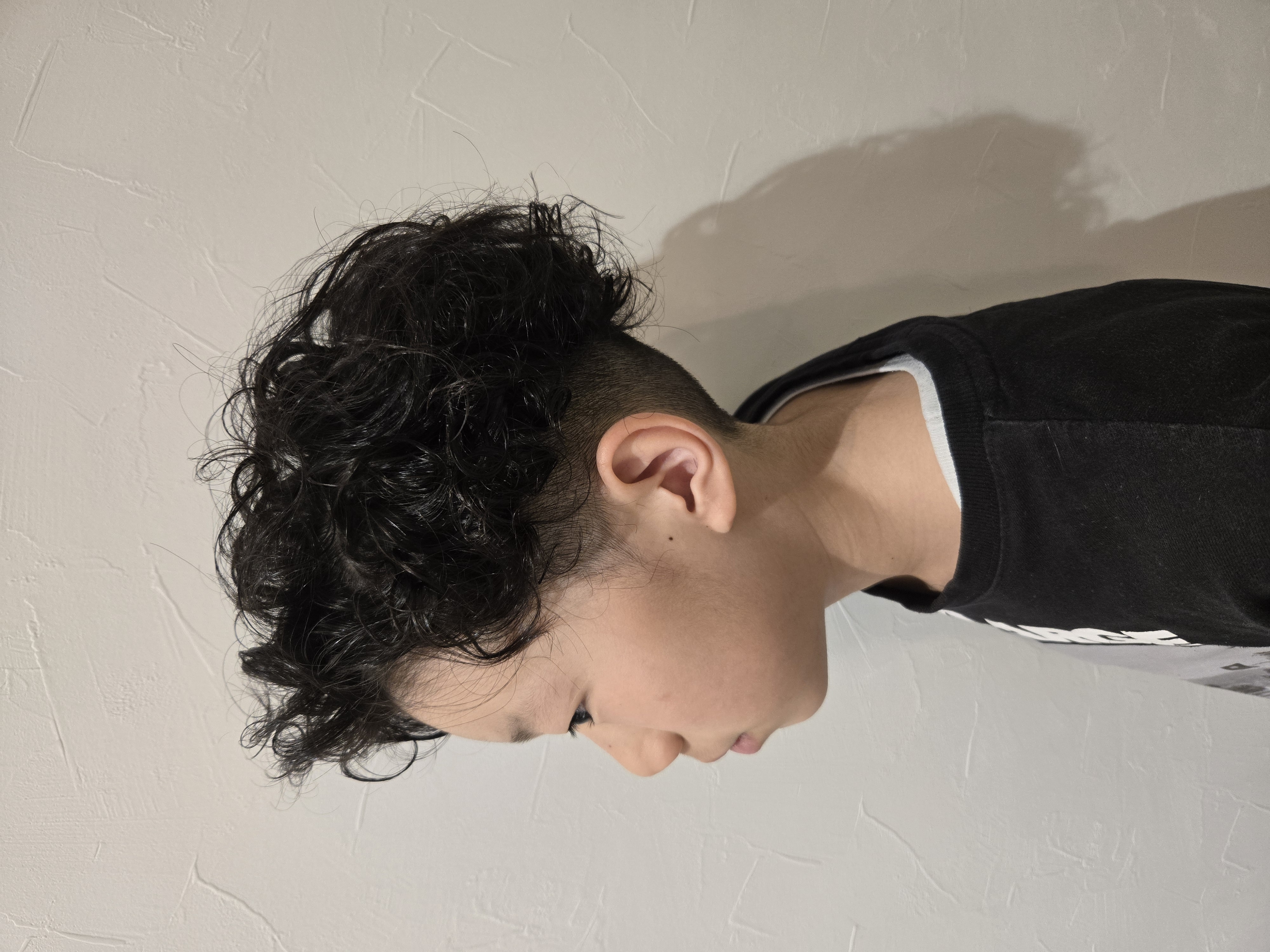 🌠くろうどくん 9才🌠肩下まで伸びていた髪をバッサリカット✂️3mmのツーブロックを入れてパーマスタイルに‼️すごいイメチェンでした‼️カッコいいです🎵お写真のご協力ありがとうございました‼️またのご来店をお待ちしております‼️