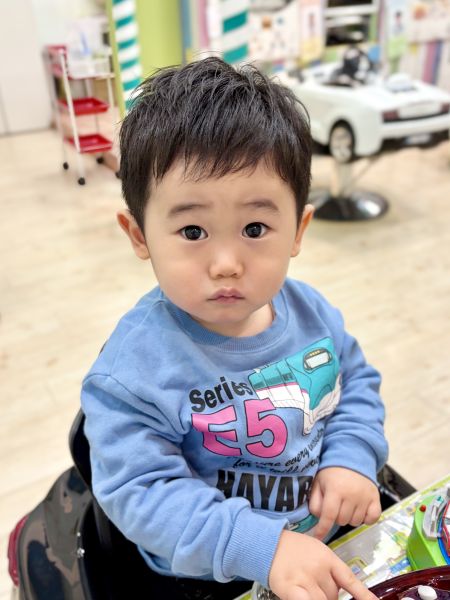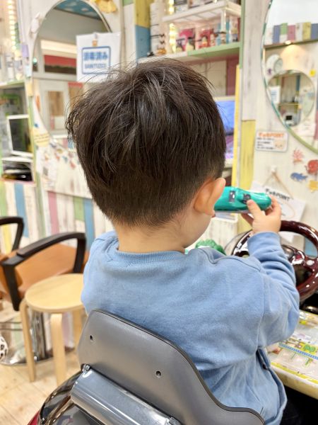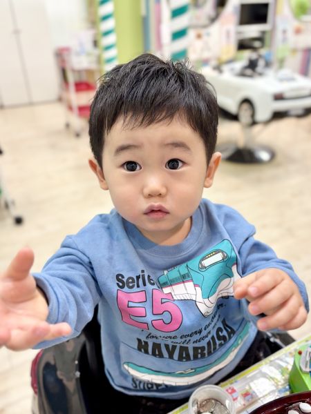 ひろふくくん2さいさん🐥さいしょはちょっとドキドキしたけど、電車で遊びながらカット頑張りました👏すっきり短めに切ってとてもカッコよくかわいくなりました😊刈り上げ気味にすっきりカット!トップも立たないくらいで短くてしてあります✂️ブログのご協力ありがとうございました😊