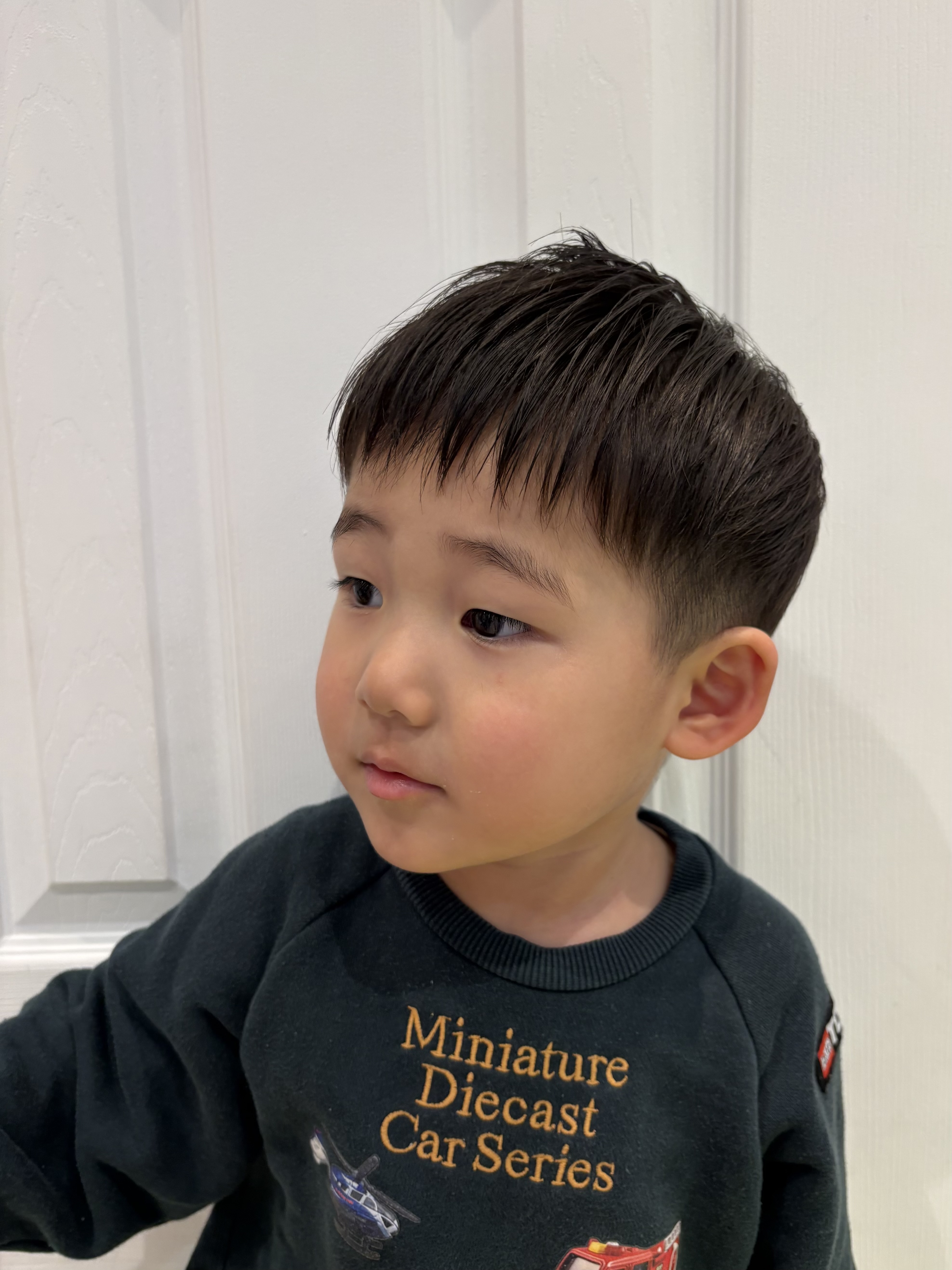 男の子 2才綺麗な髪質を活かしたツーブロックのショートスタイルです^ ^毛先を重点的に軽くして重さを取りすぎずに綺麗な髪質を残してかっこよく上品なツーブロックスタイルになりました😊今回はカットの回数を重ねて慣れてきたのか、バリカンもへっちゃらでシャンプーやスタイリングと最初から最後までとっても上手にカットさせてくれました✨ご協力ありがとうございました!