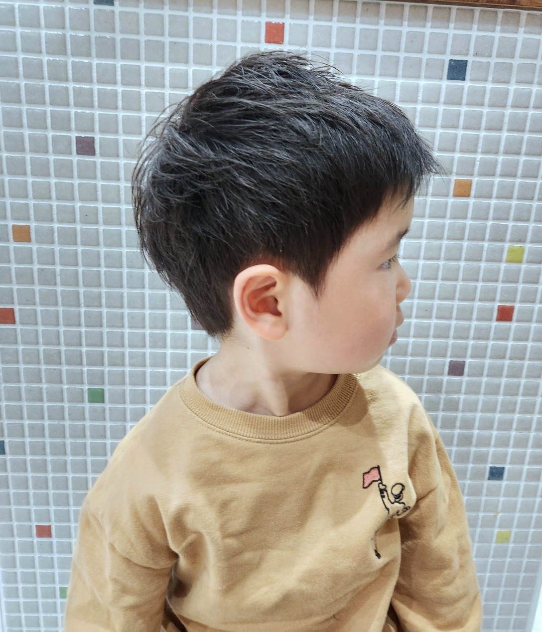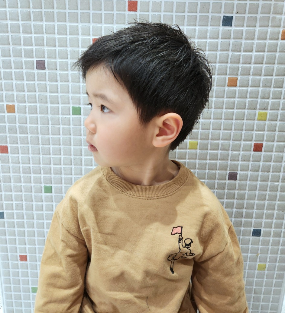 かなた君 4歳 ふんわり軽めなナチュラルショートですバリカンを使わずハサミですっきりとカットしました かなた君、緊張しながらもカッコよくモデルさんしてくれてありがとうまた一緒にあそぼうね お父様、お写真のご協力ありがとうございましたまたのご利用をお待ちしております